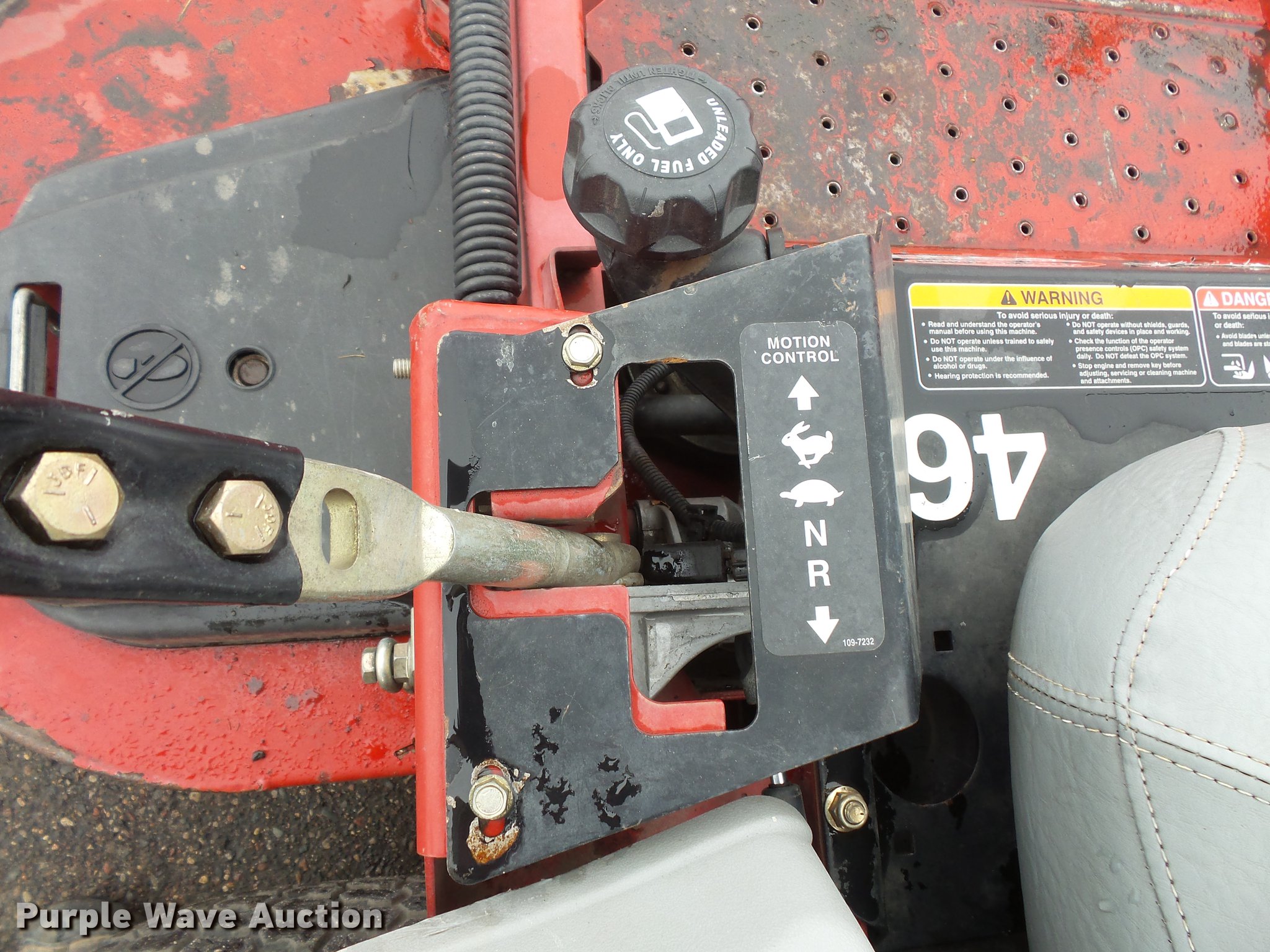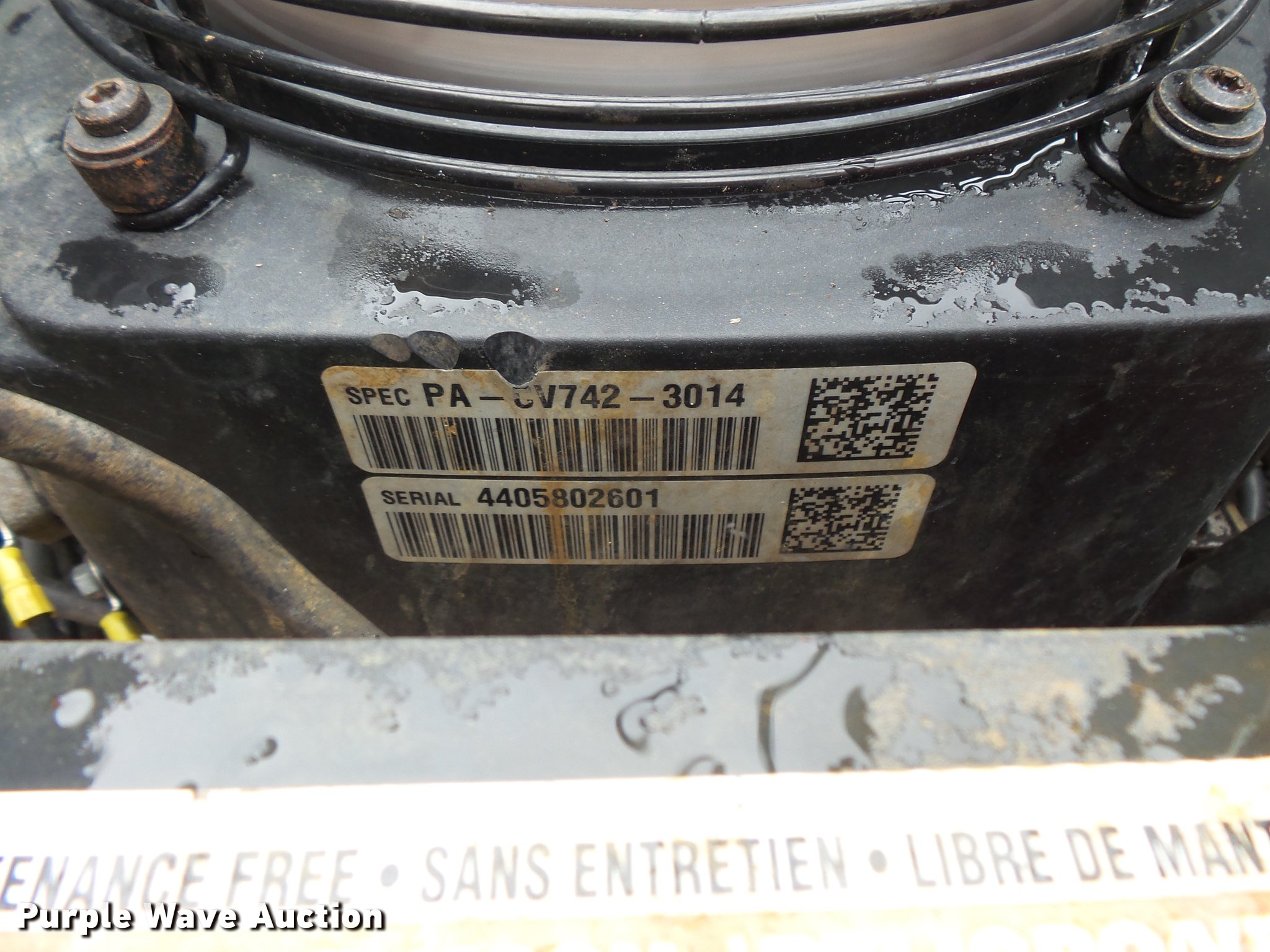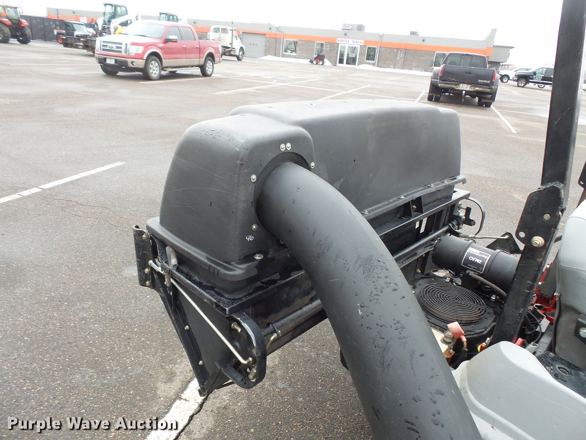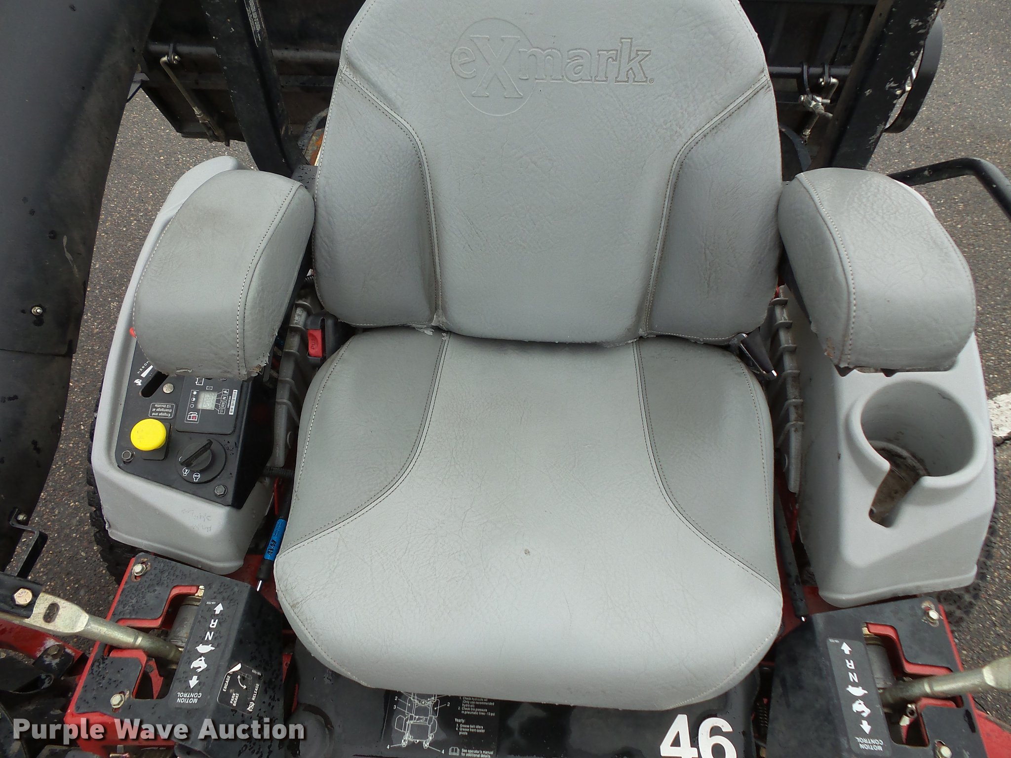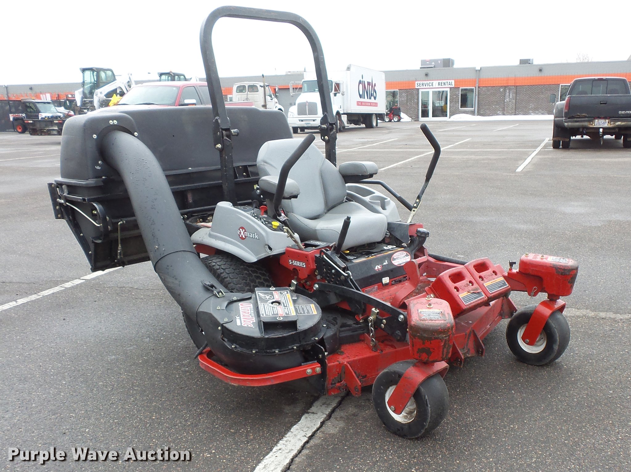 Purple Wave is selling a used Commercial Turf Mower in Minnesota. This item is a Exmark Laser Z ZTR lawn mower with the following: 2,208 hours on meter, 60"W cutting capacity, Kohler Command Pro CV742 two cylinder gas engine, Serial 4405802601, Hydrostatic transmission, Folding ROPS, Exmark Ultra Vac X-Series bagger, (4) front mounted counter weights, 13 x 6.5-6 front tires, 24 x 12.5-12 rear tires, Serial 980892