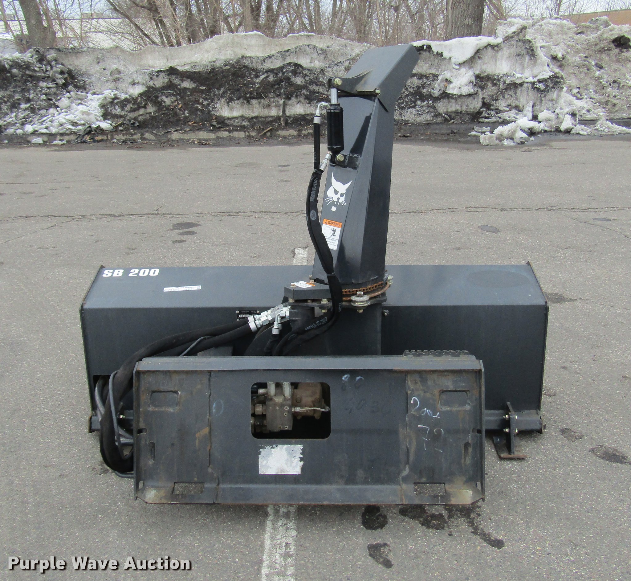 Purple Wave is selling a used Skid Steer Attach. in Minnesota. This item is a Bobcat SB200X72 skid steer snow blower with the following: 72"W, Hydraulic adjustable discharge chute, Serial 712909936