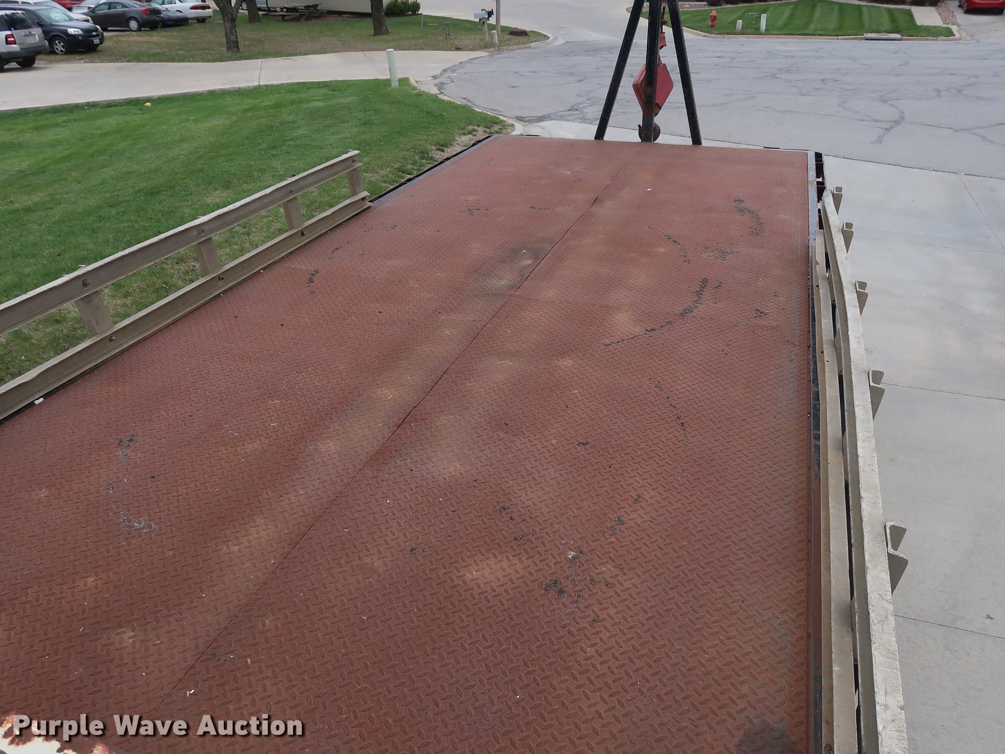 Purple Wave is selling a used Crane Truck in Missouri. This item is a 1994 Ford L8000 crane truck with the following: 132,819 miles on odometer, Cummins 8.3L L6 turbo diesel engine, Eaton Fuller 9 speed manual transmission, Tandem axle, Heat, Air suspension seat, PTO, 18'L x 8'W flatbed, National Series 800C crane, 80' max. lift height, 42,000 lbs max. capacity, 24' jib, Currently not installed, (4) outriggers, Serial 25352, Pintle hitch, Air brakes, GVWR 58,000 lbs