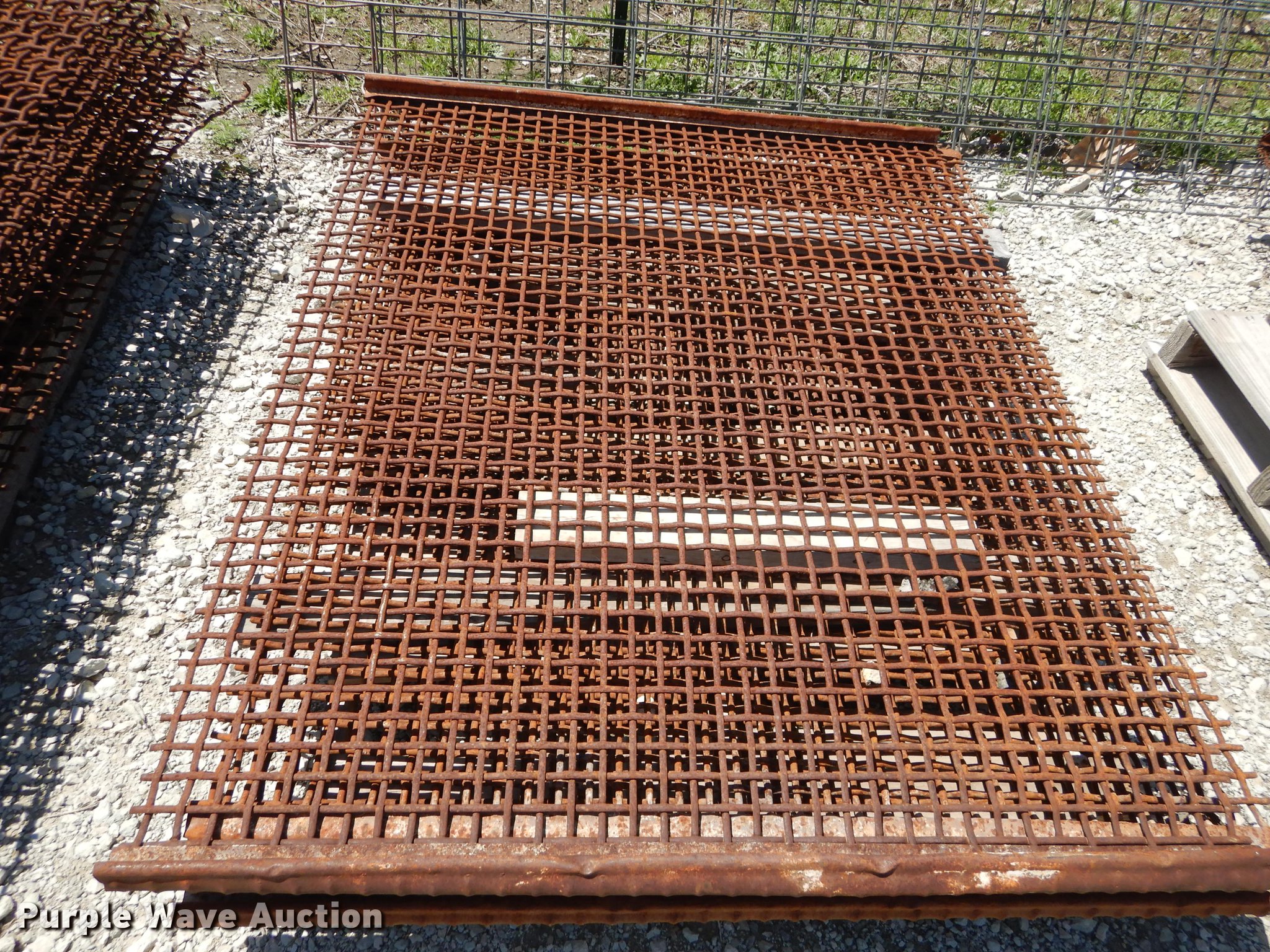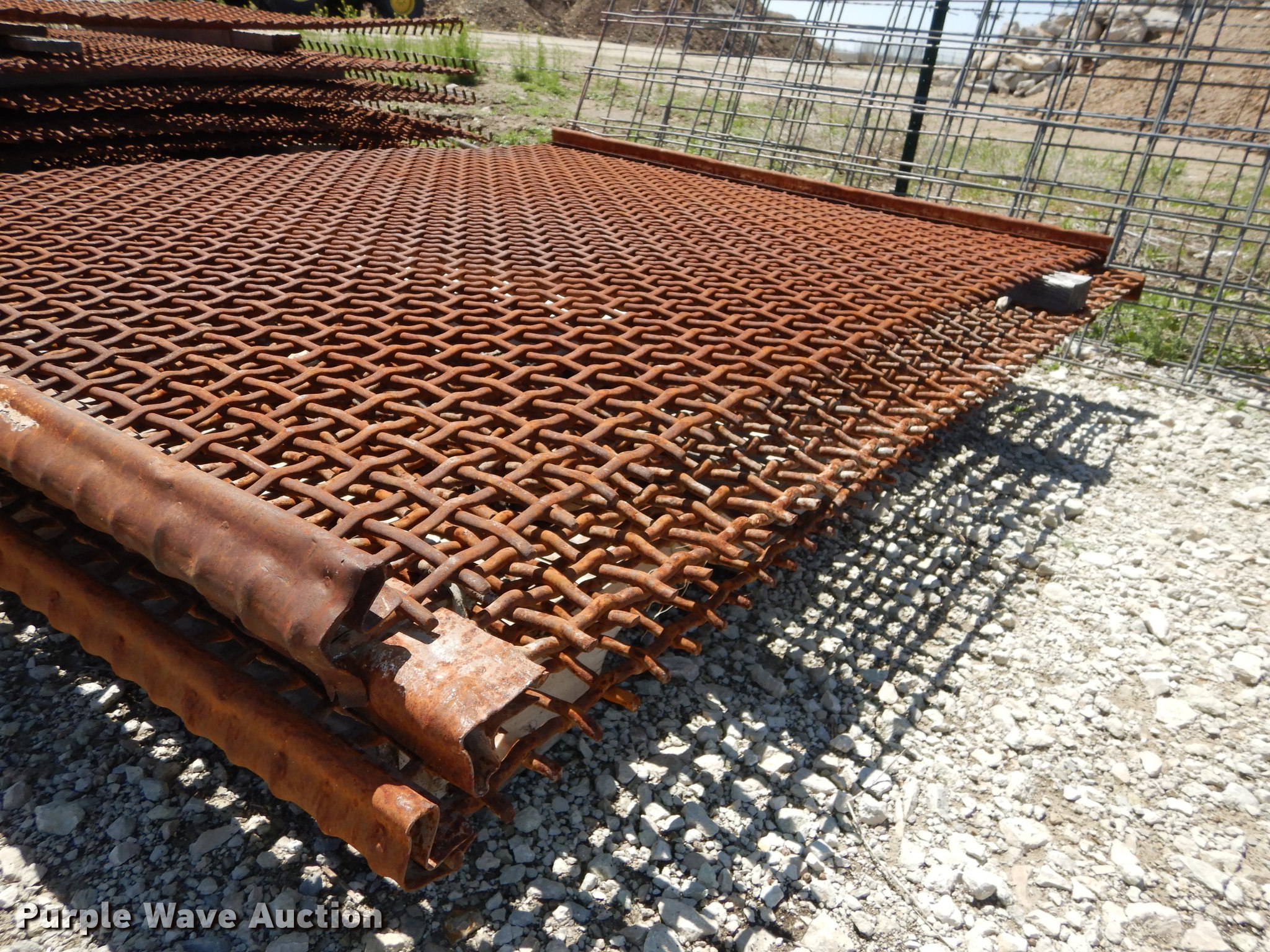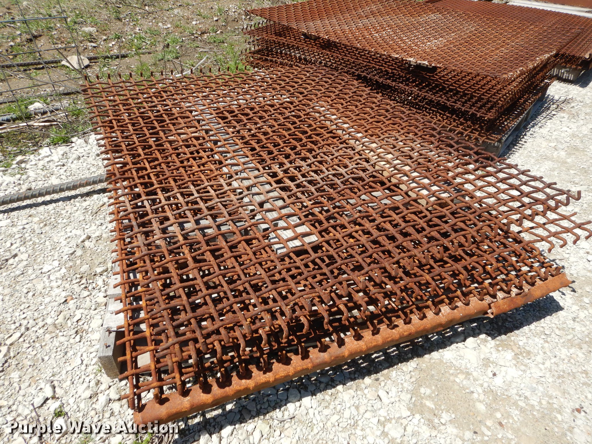 Purple Wave is selling a used Quarry or Aggregate Attach. in Kansas. This item is a (33) rock screens with the following: (4) 3", (8) 1.5", (5) 1 3/4", (9) 1", (4) 1/2"