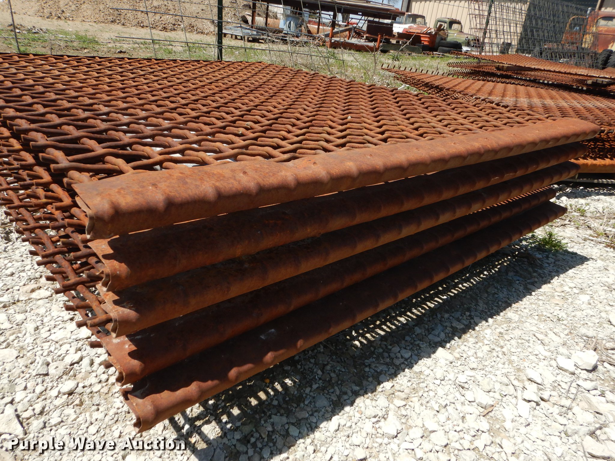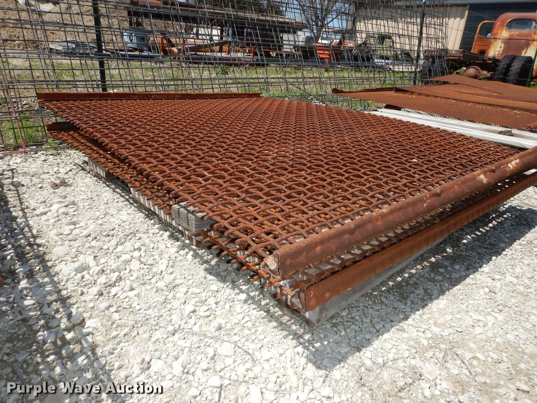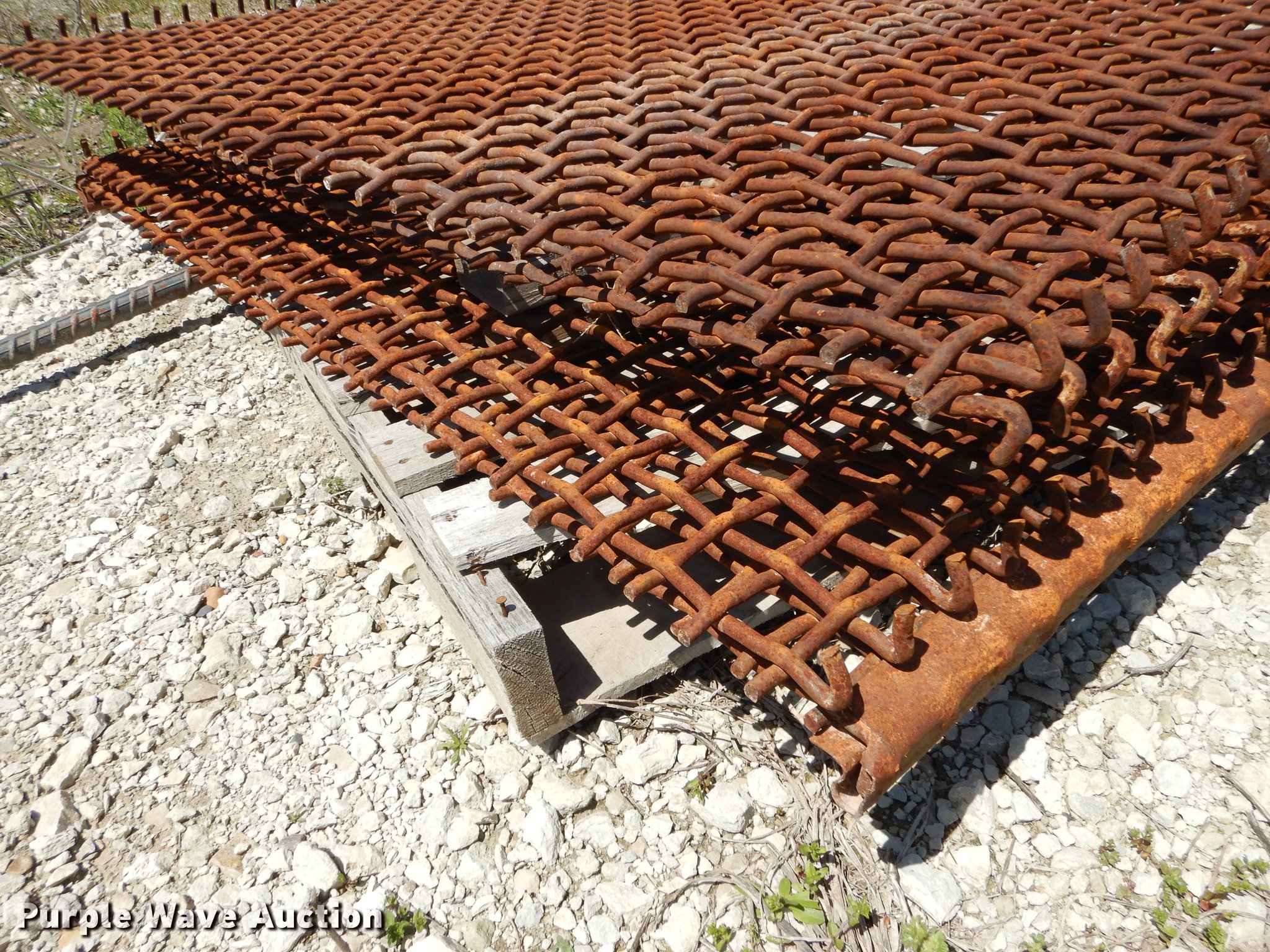 Purple Wave is selling a used Quarry or Aggregate Attach. in Kansas. This item is a (33) rock screens with the following: (4) 3", (8) 1.5", (5) 1 3/4", (9) 1", (4) 1/2"