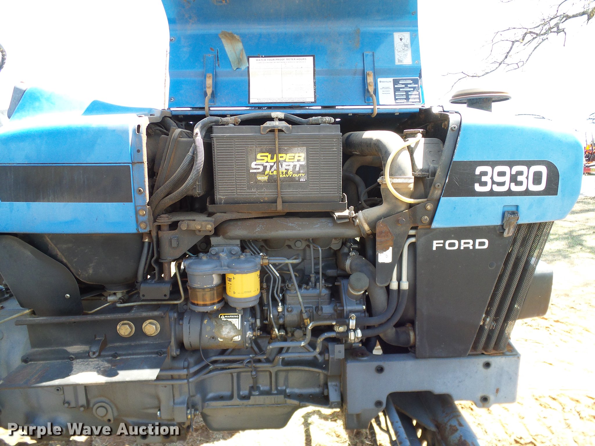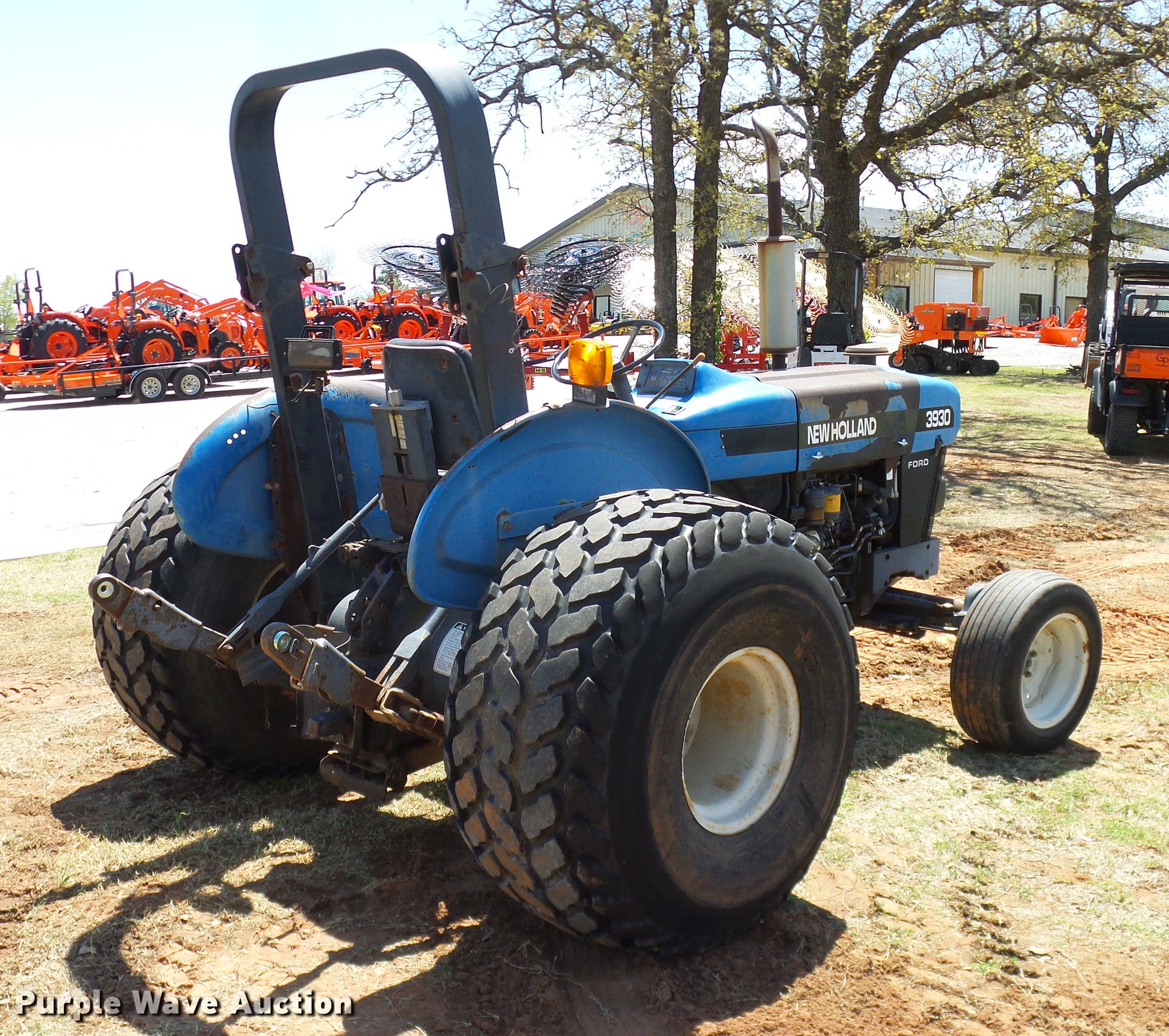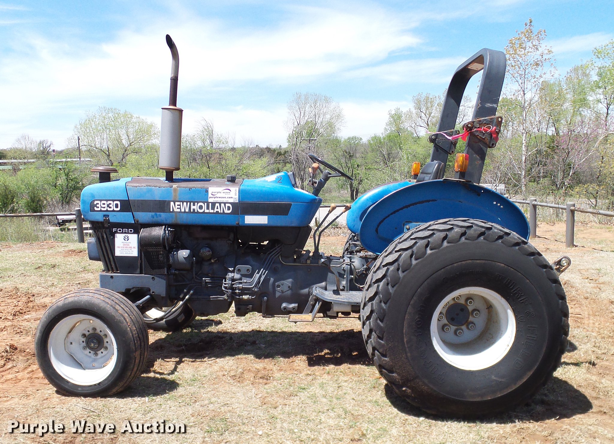 Purple Wave is selling a used Tractor in Oklahoma. This item is a 1997 New Holland 3930 tractor with the following: 2,395 hours on meter, Three cylinder diesel engine, 45 HP, Manual transmission, 8F-8R gears, Left-hand reverser, Differnetial lock, ROPS, Suspension seat, Three point, 540 PTO, (2) rear hydraulic remotes, 27x9.50-15 front tires, 21.5L-16.1 rear tires, Serial 070778B