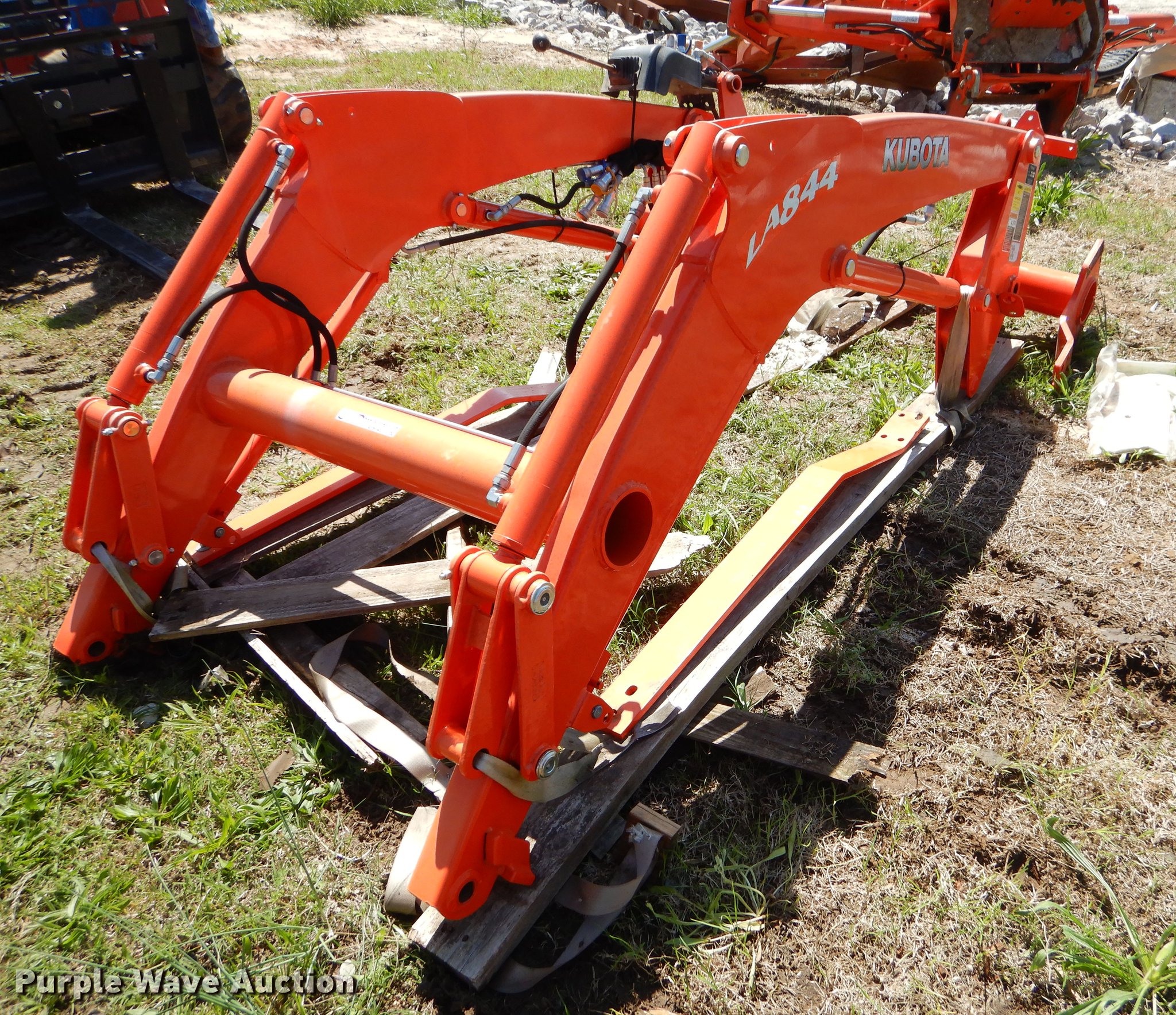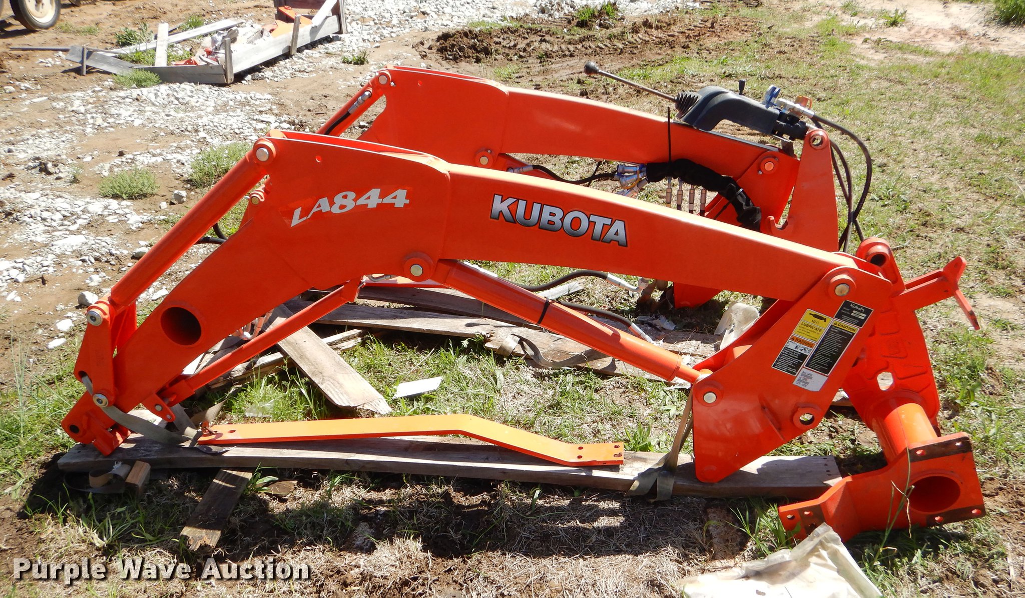 Purple Wave is selling a used Ag Tractor Loader or Attach. in Oklahoma. This item is a Kubota LA844 loader with the following: Hydraulic driven, Fits Kubota MX5100 tractor, Unused, Serial C0006