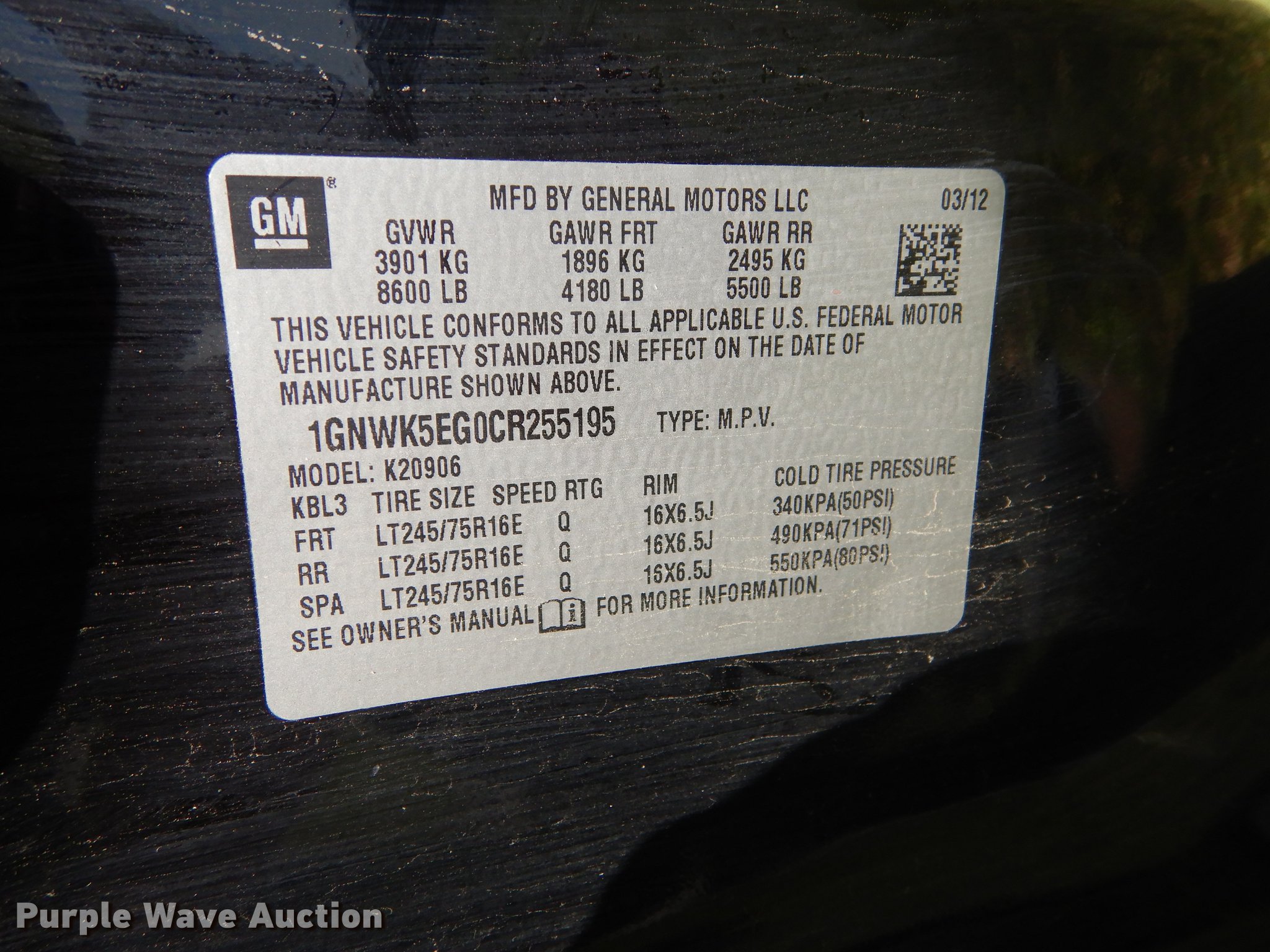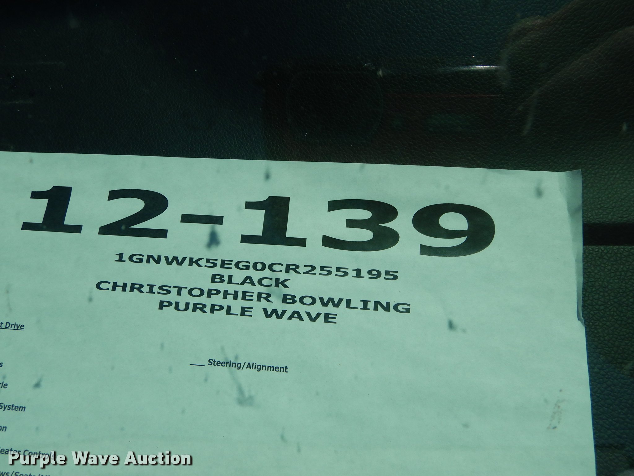 Purple Wave is selling a used Passenger Vehicle in Kansas. This item is a 2012 Chevrolet Suburban 2500 SUV with the following: 89,602 miles on odometer, 6.0L V8 OHV 16V FFV gas engine, Automatic transmission, Four wheel drive, AC and heat, Tilt, Cruise, AM/FM/CD, Power windows, locks, mirrors, and seat, Cloth interior, Running boards, Grill guard, Receiver hitch, Trailer wiring, 265/75R16 tires, Dead battery, Unit# 12-139