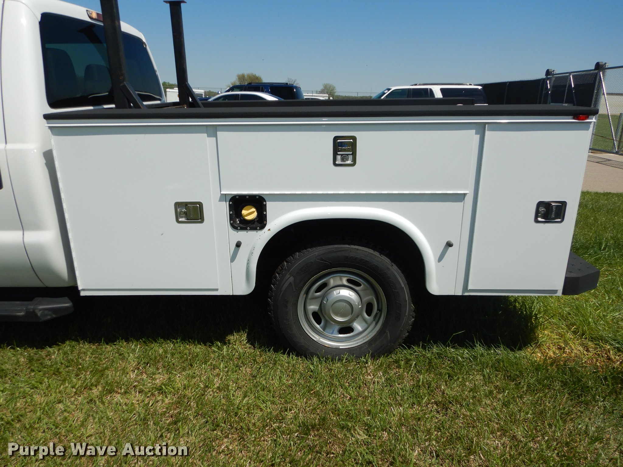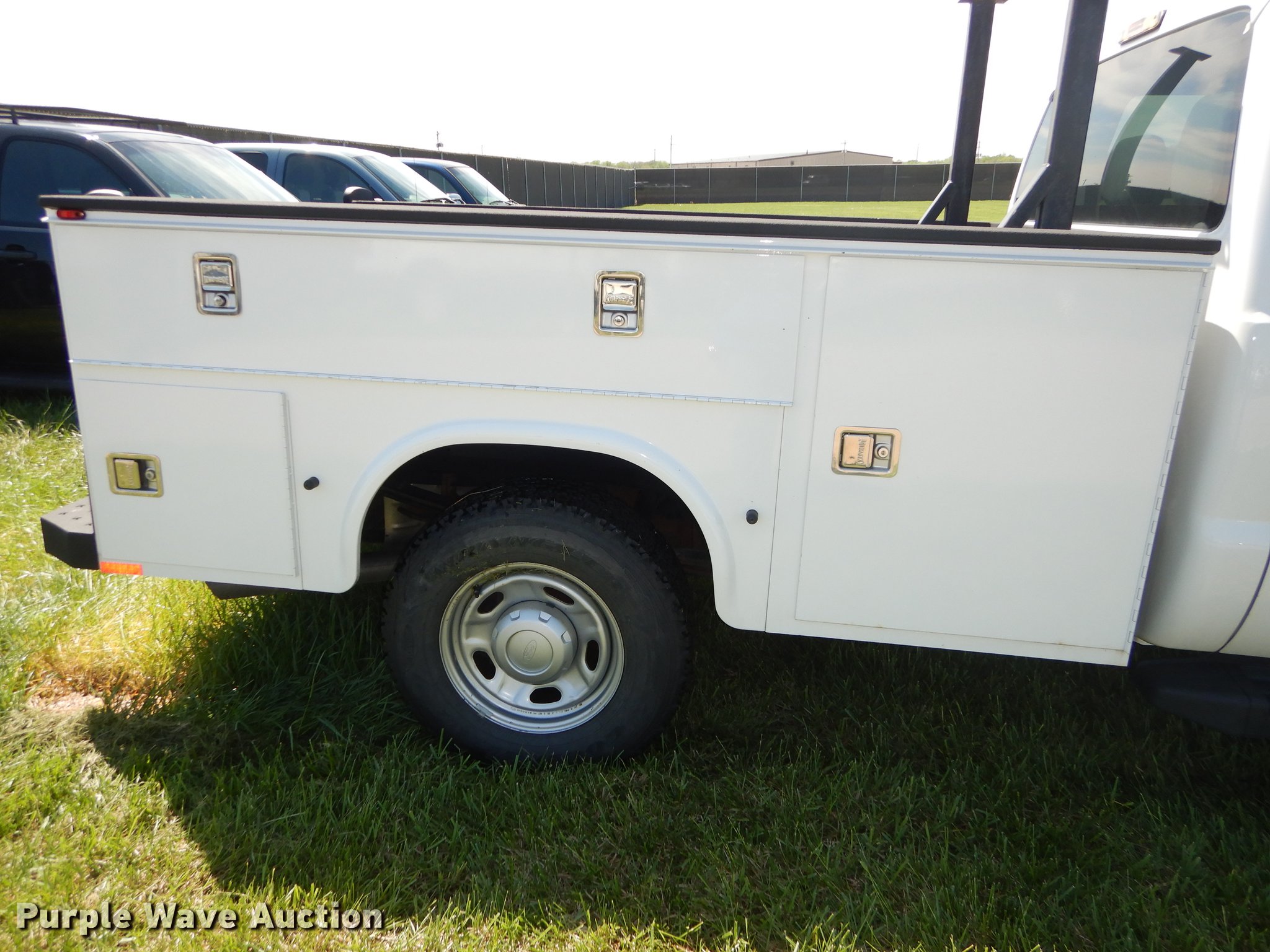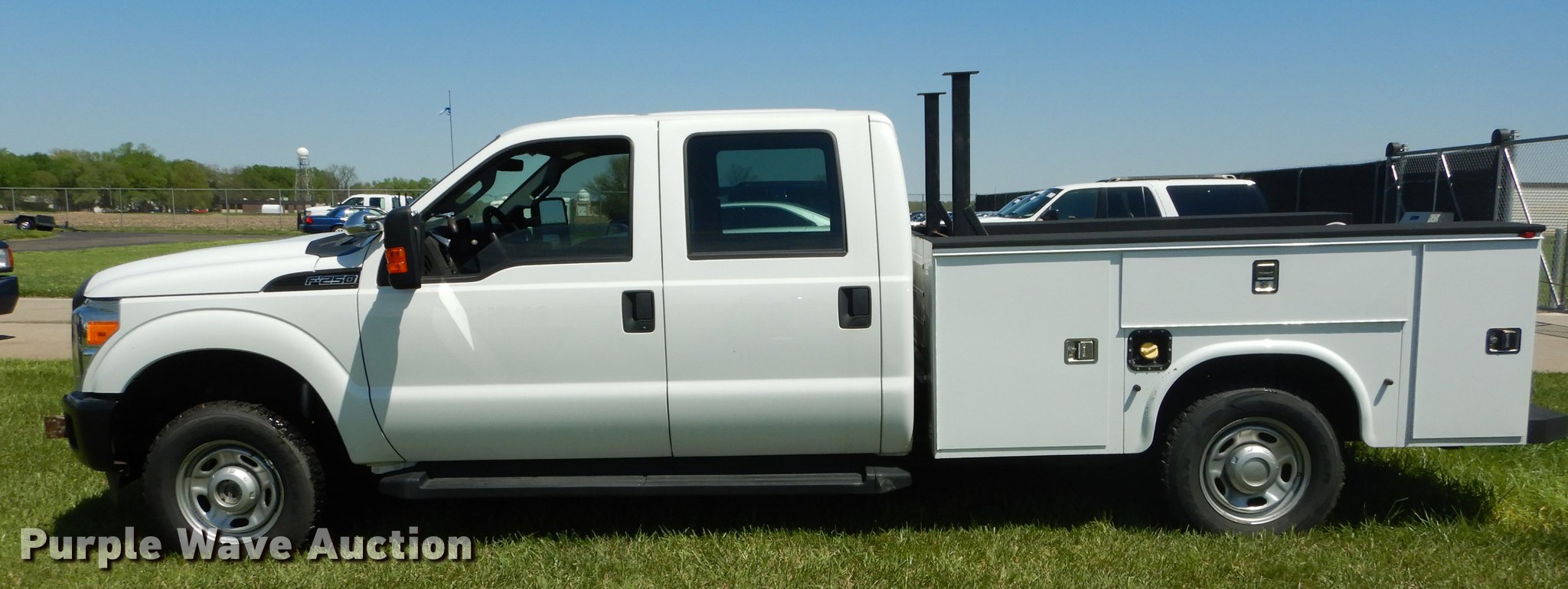 Purple Wave is selling a used 3/4 or 1 Ton Pickup or Van in Kansas. This item is a 2012 Ford F250 Super Duty Crew Cab utility bed pickup truck with the following: 240,098 miles on odometer, 6.2L V8 OHV 16V gas engine, Automatic transmission, Four wheel drive, AC and heat, Tilt, Cruise, AM/FM/CD, Power windows, locks, and mirrors, Heated mirrors, Cloth interior, Spotlight, Front tow hooks, Running boards, Knapheide 796LPJ utility bed, (6) compartments, Receiver hitch, Trailer wiring, 245/75R17 tires, Dead battery, ABS light on, Unit# 12-293