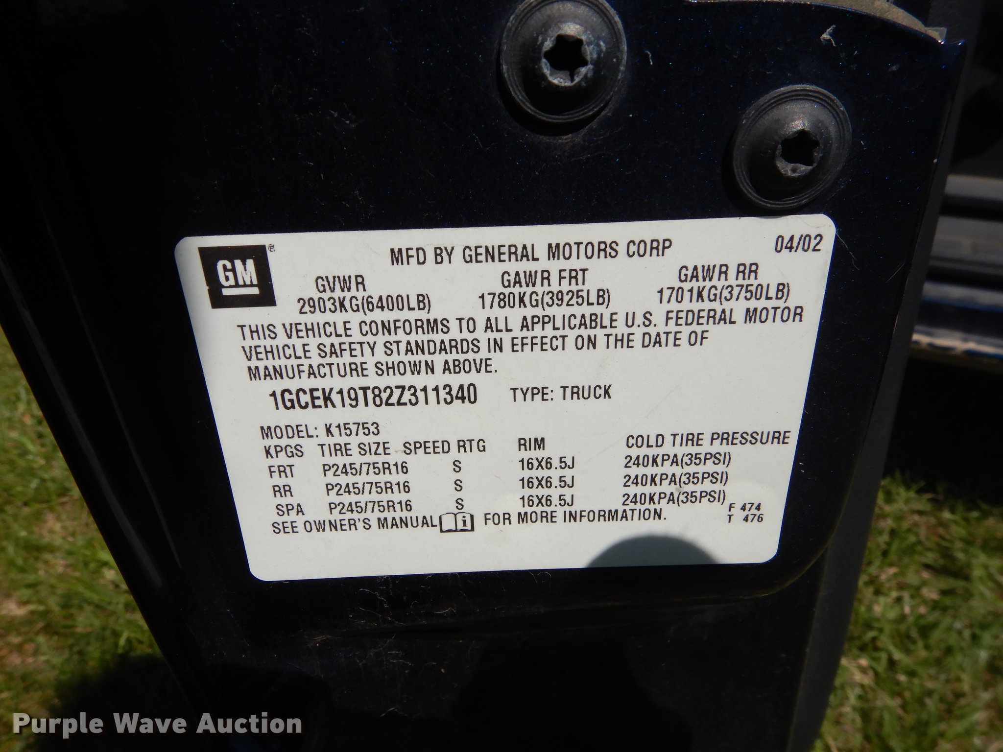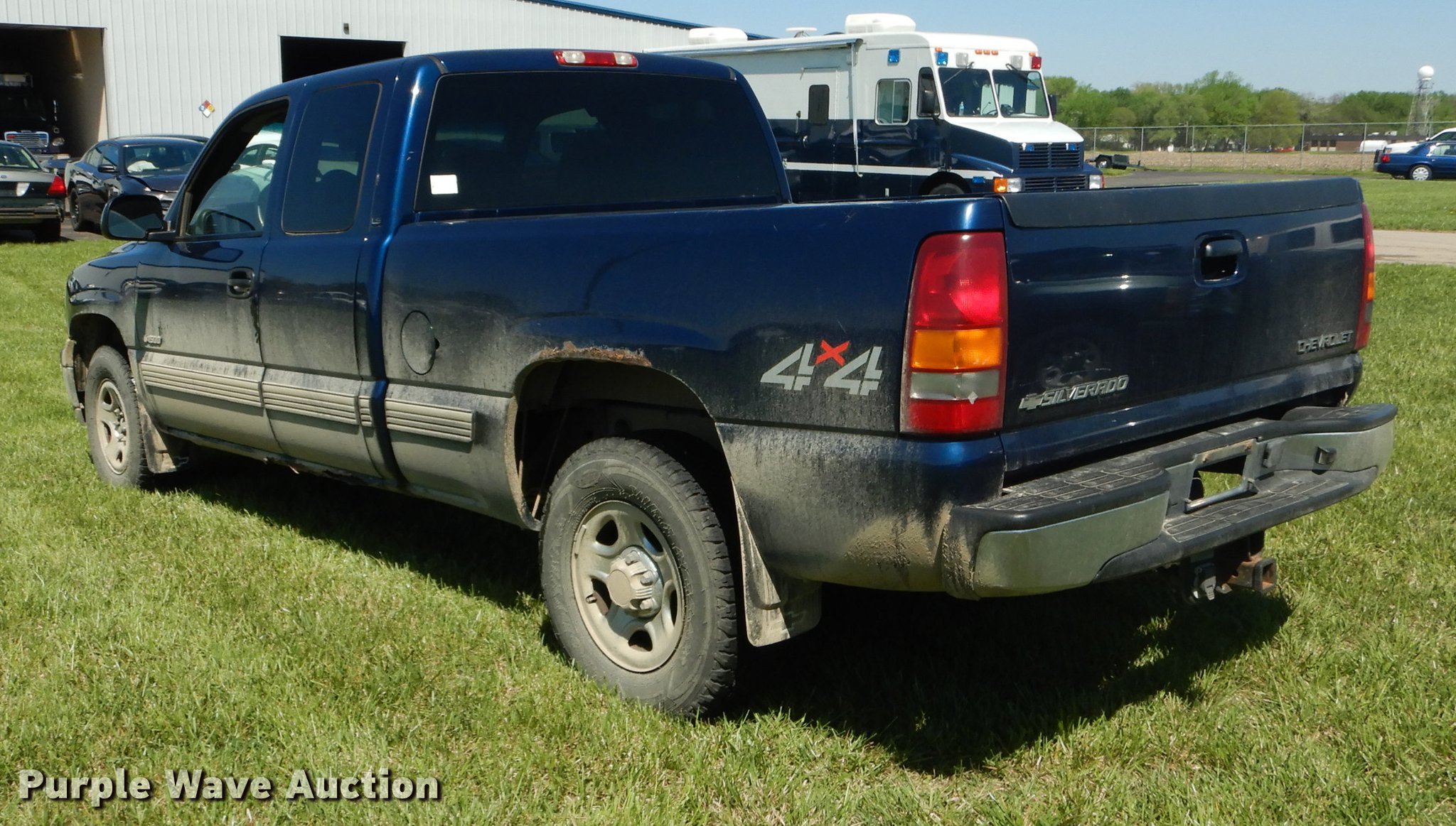 Purple Wave is selling a used 1/2 Ton Pickup or Van in Kansas. This item is a 2002 Chevrolet Silverado 1500 LS Ext. Cab pickup truck with the following: 119,728 miles on odometer, 5.3L V8 OHV 16V gas engine, Automatic transmission, Four wheel drive, AC and heat, Tilt, Cruise, AM/FM/CD, Power windows, locks, and mirrors, Cloth interior, Front tow hooks, Receiver hitch, Trailer wiring, 245/75R16 tires, Service engine light on, Unit# 02-661