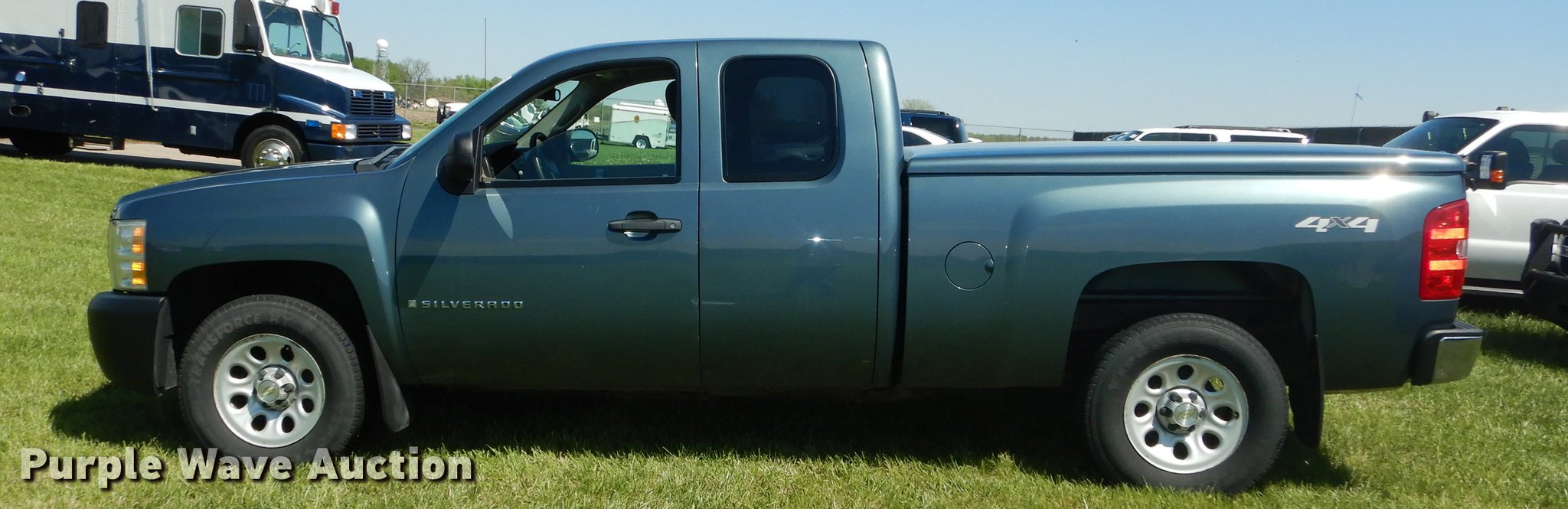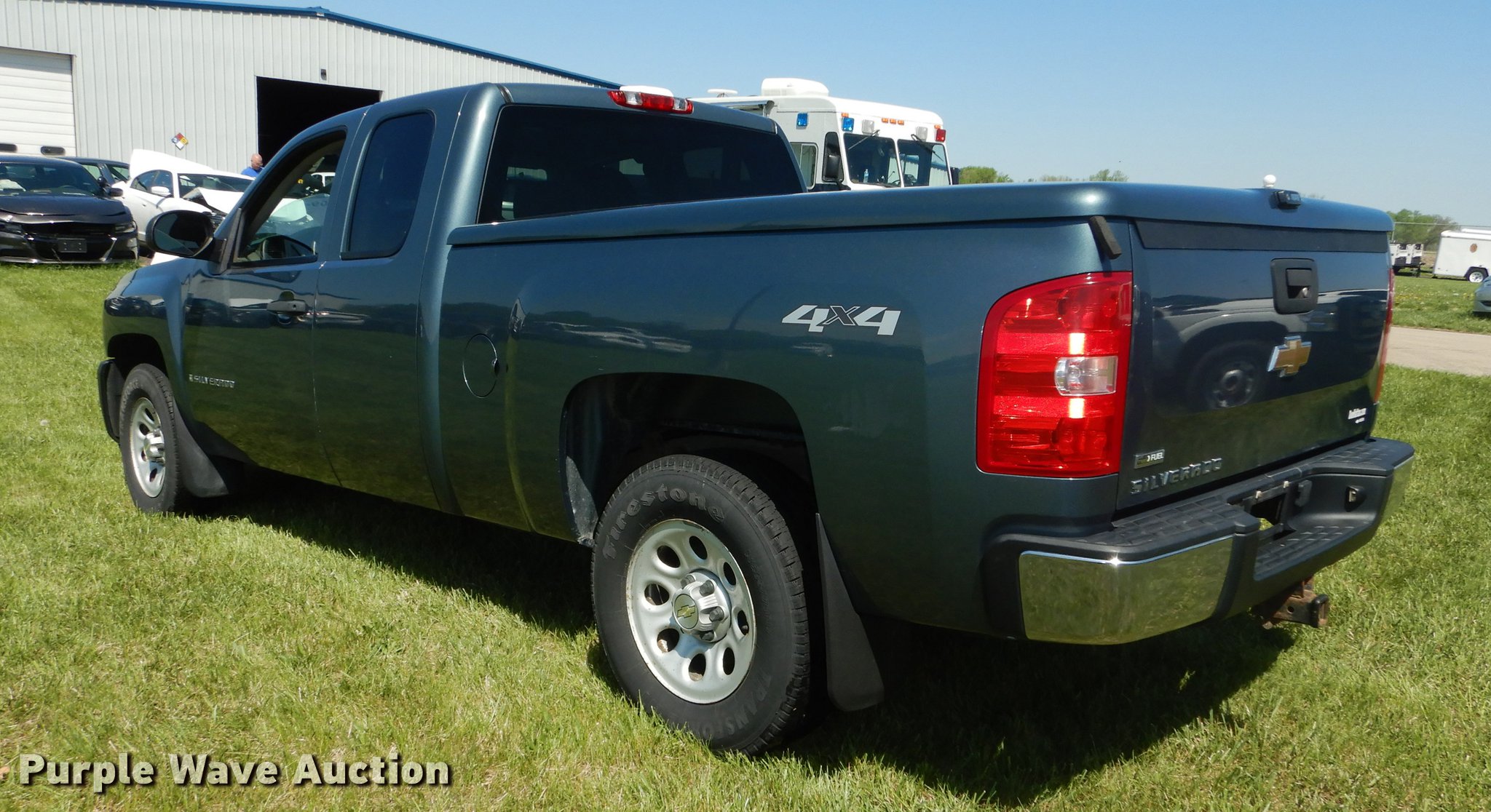 Purple Wave is selling a used 1/2 Ton Pickup or Van in Kansas. This item is a 2009 Chevrolet Silverado 1500 Ext. Cab pickup truck with the following: 146,439 miles on odometer, 5.3L V8 OHV 16V FFV gas engine, Automatic transmission, Four wheel drive, AC and heat, Tilt, Cruise, AM/FM, Power windows, locks, and mirrors, Cloth interior, Front tow hooks, A.R.E. bed cover, Receiver hitch, Trailer wiring, Firestone 265/70R17 tires, Center console missing, Air bag light on, Needs oil change, Unit# 09-563