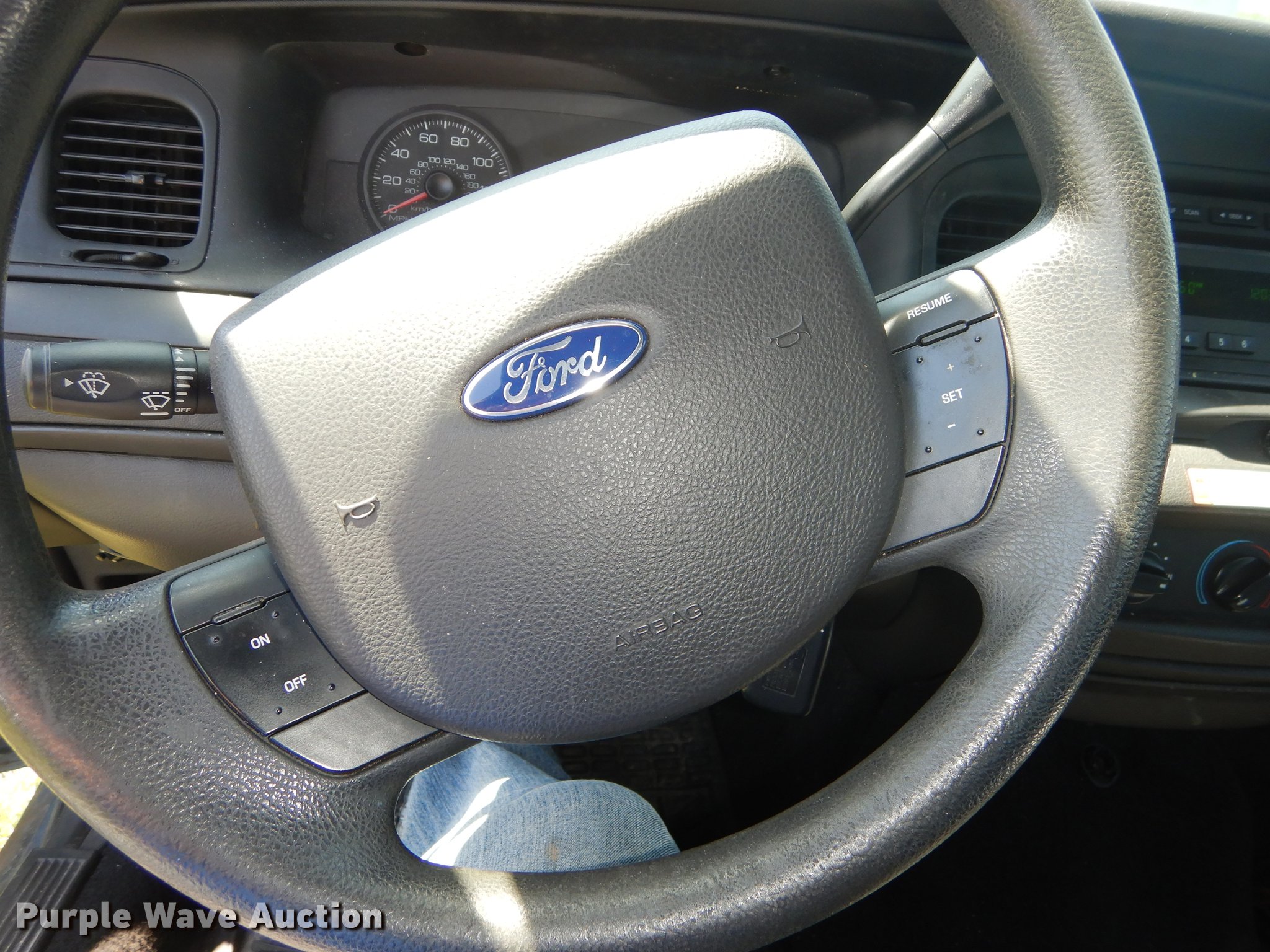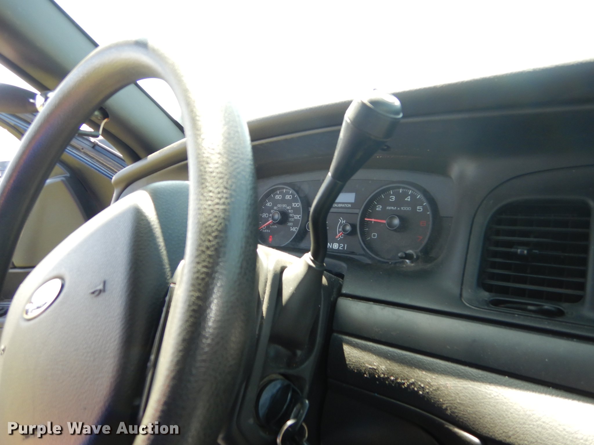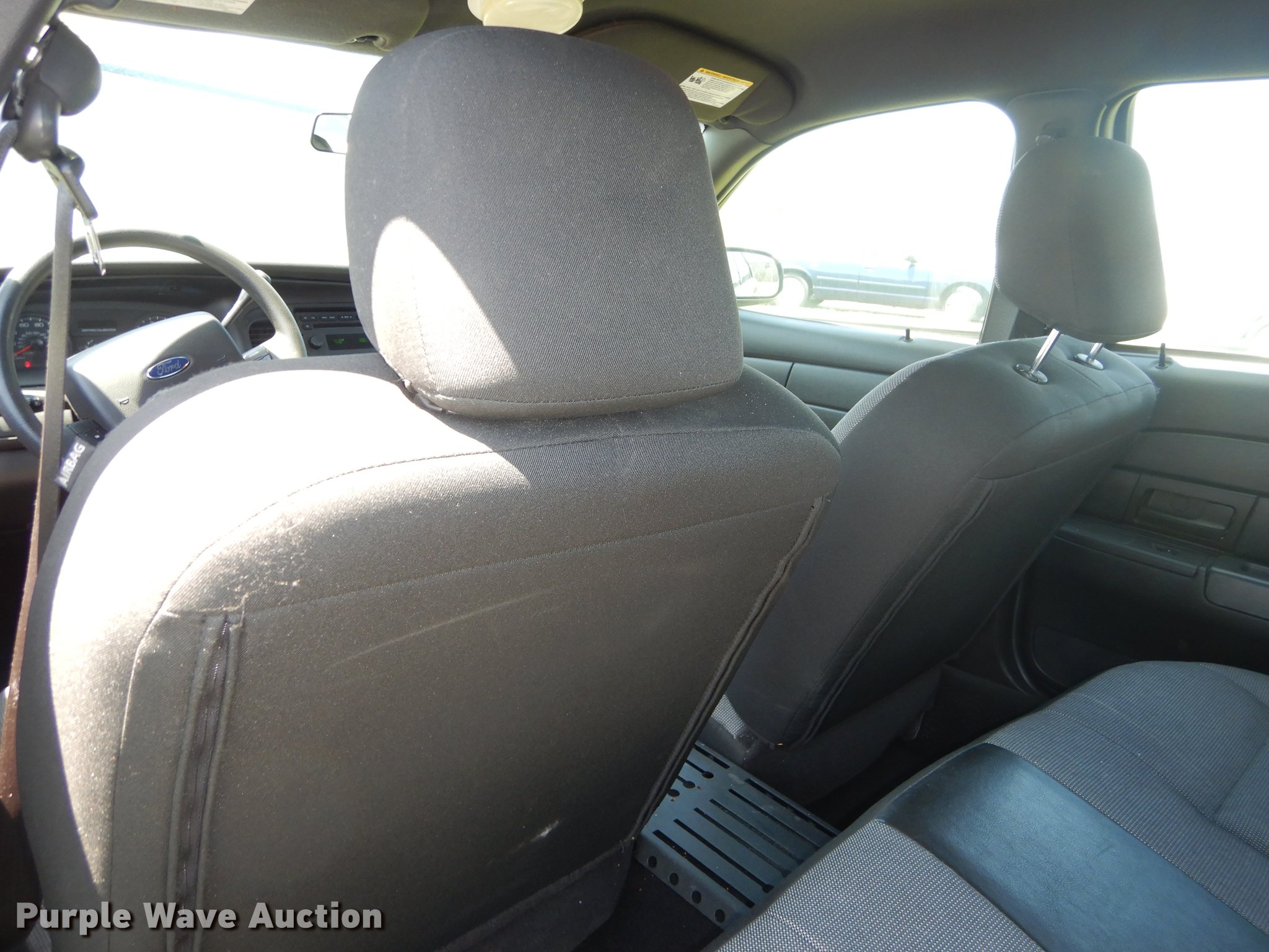 Purple Wave is selling a used Passenger Vehicle in Kansas. This item is a 2010 Ford Crown Victoria Police Interceptor with the following: Unknown miles on odometer, 4.6L V8 SOHC 16V FFV gas engine, Automatic transmission, AC and heat, Tilt, Cruise, AM/FM/CD, Power windows, locks, mirrors, and seat, Heated mirrors, Cloth interior, Spotlight, Trunk pak, Goodyear 235/55R17 tires, Dead battery, No center console, Unit# 10-348