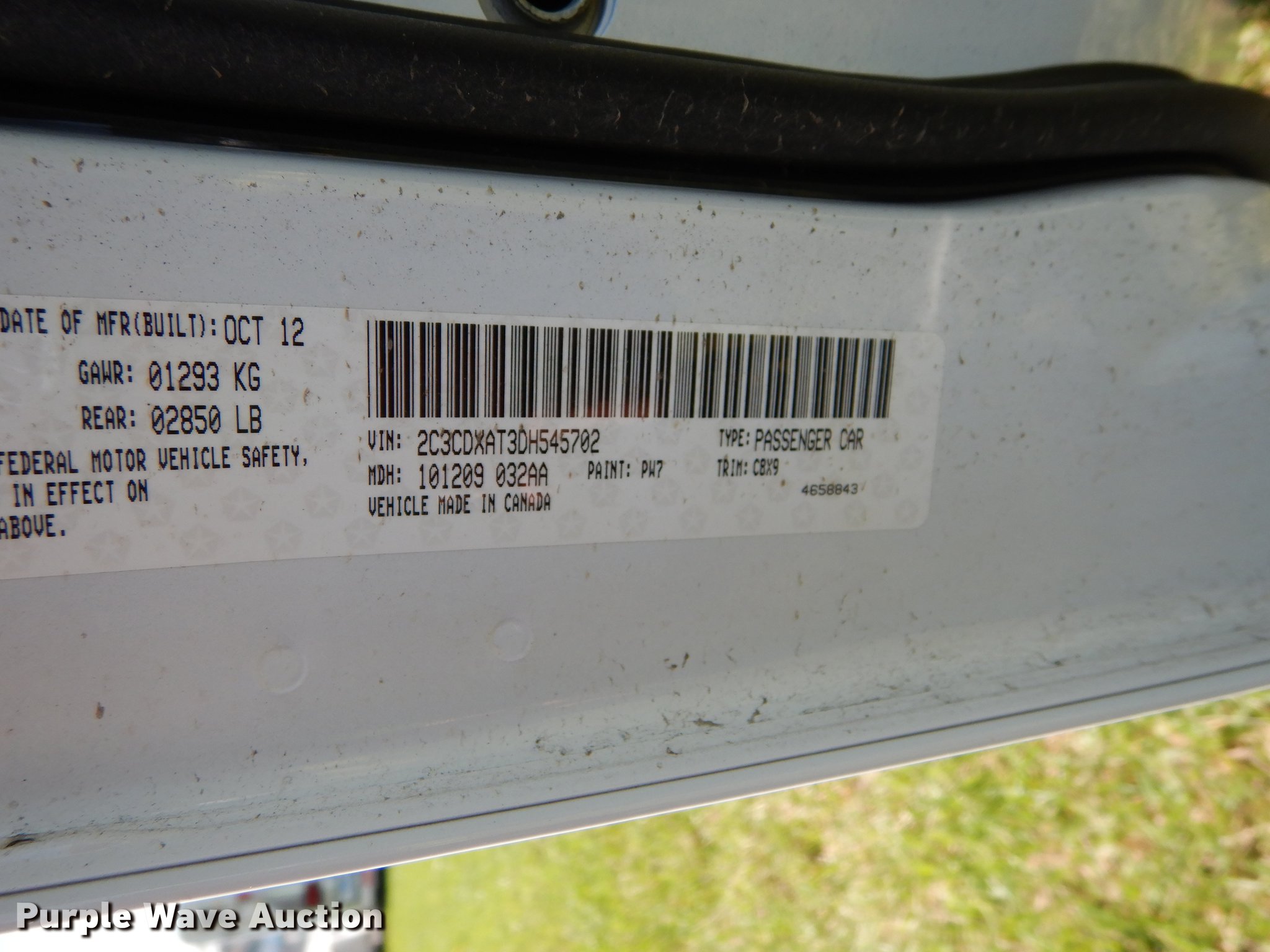 Purple Wave is selling a used Passenger Vehicle in Kansas. This item is a 2013 Dodge Charger Police with the following: 50,719 miles on odometer, 5.7L V8 OHV 16V gas engine, Automatic transmission, AC and heat, Tilt, Cruise, AM/FM/CD, Power windows, locks, mirrors, and seat, Cloth interior, Goodyear 225/60R18 tires, Non-operational AC, No center console, Unit# 13-570