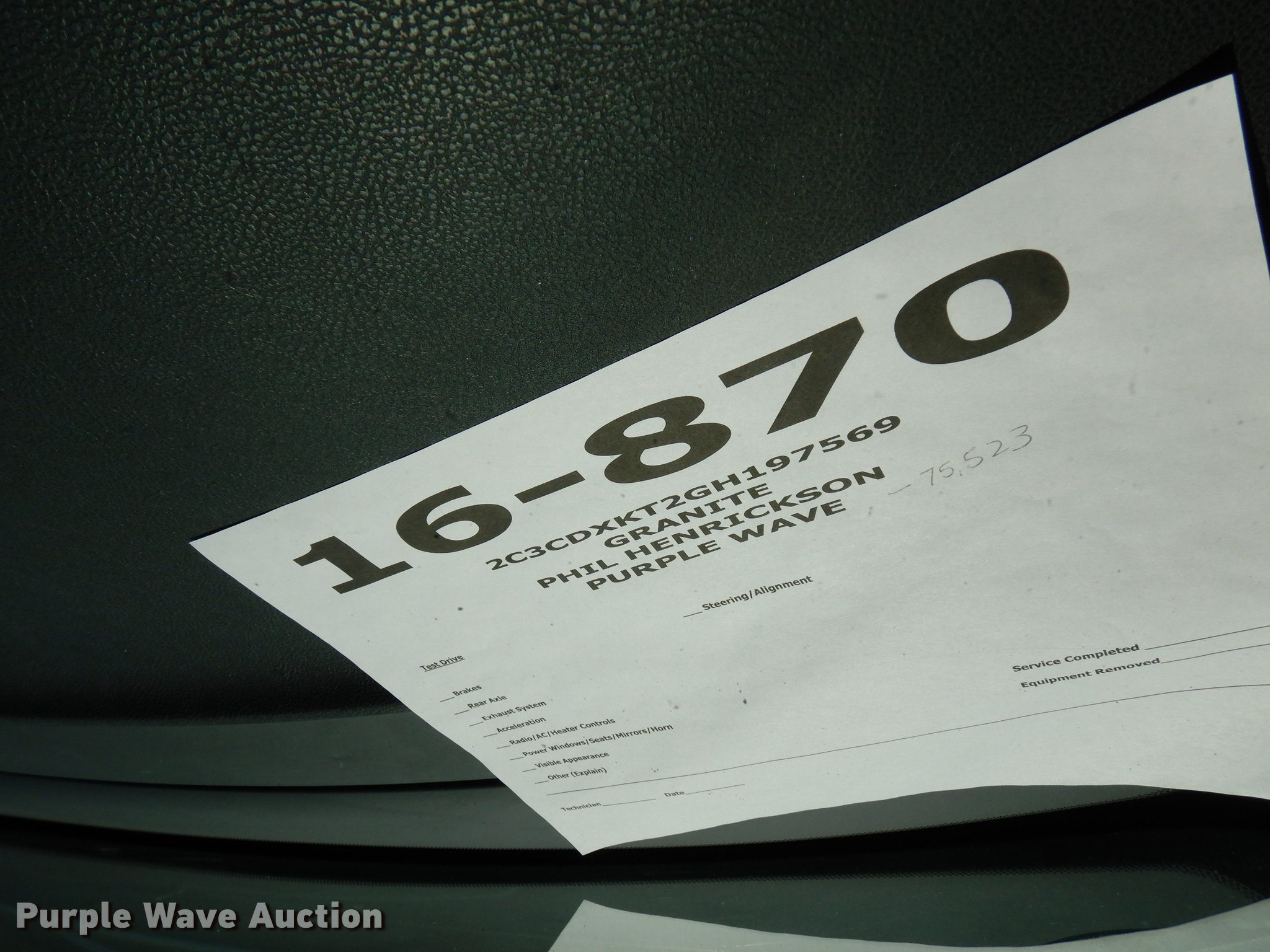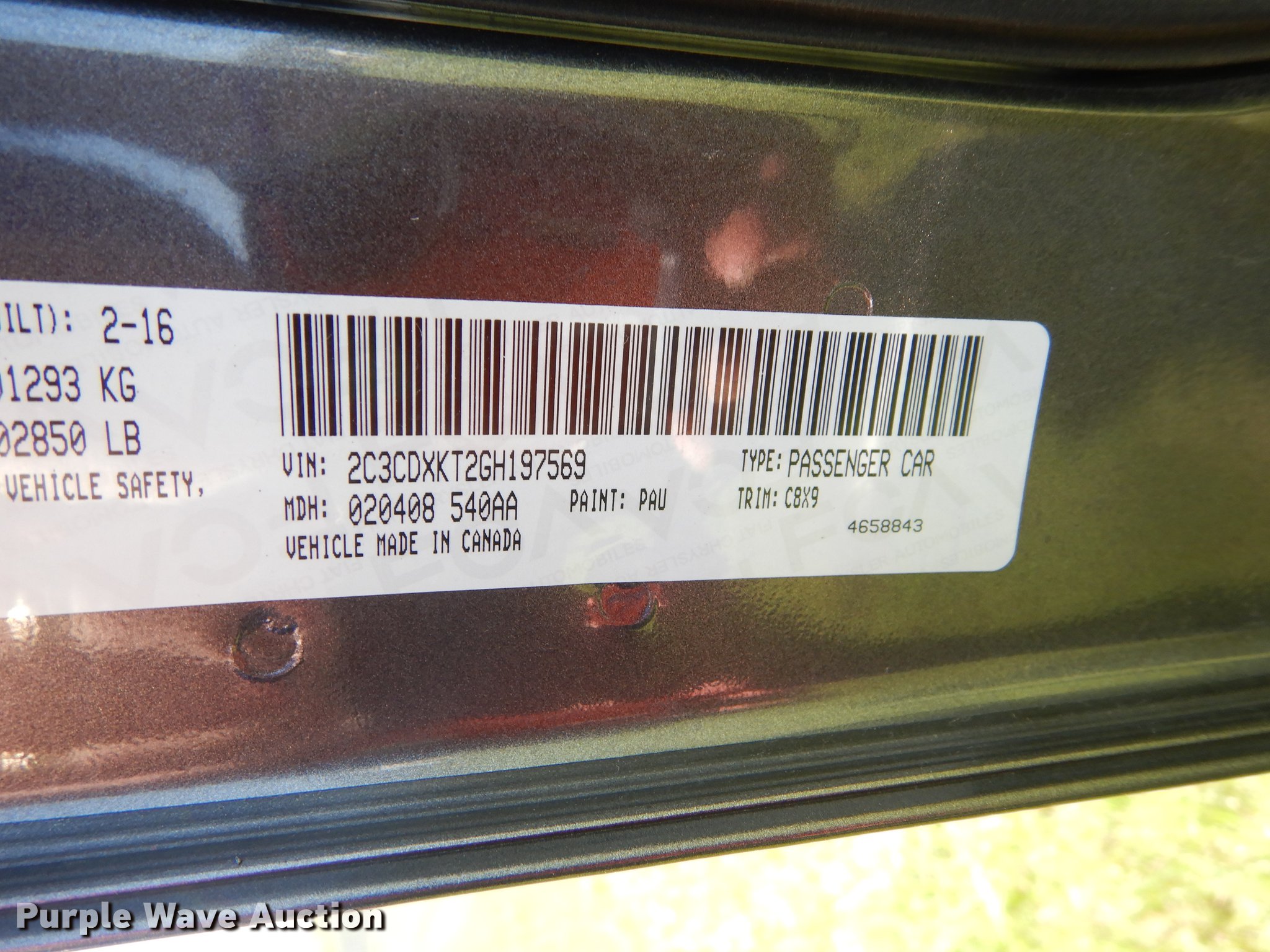 Purple Wave is selling a used Passenger Vehicle in Kansas. This item is a 2016 Dodge Charger Police with the following: 75,523 miles on odometer, 5.7L V8 OHV 16V gas engine, Automatic transmission, All wheel drive, AC and heat, Tilt, Cruise, AM/FM, Power windows, locks, mirrors, and seat, Heated mirrors, Cloth interior, Spotlight, Goodyear 225/60R18 tires, Dead battery, No center console, Unit# 16-870