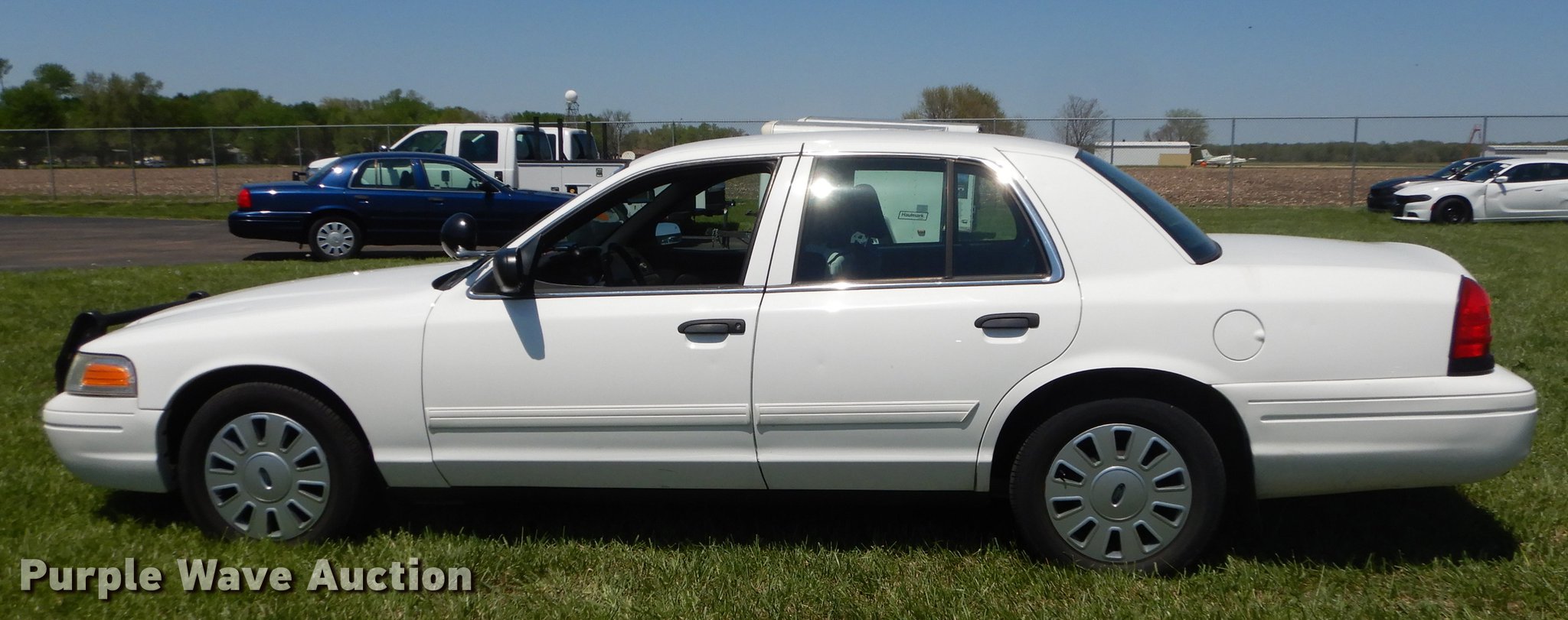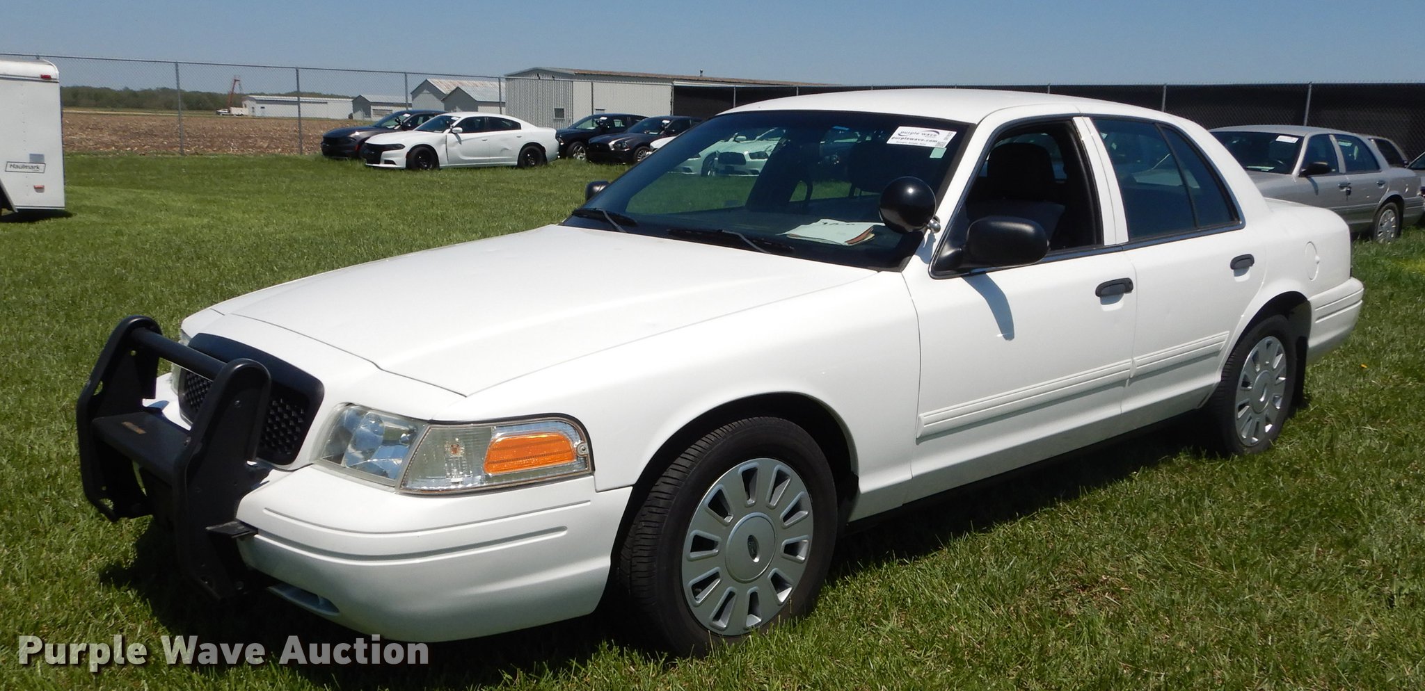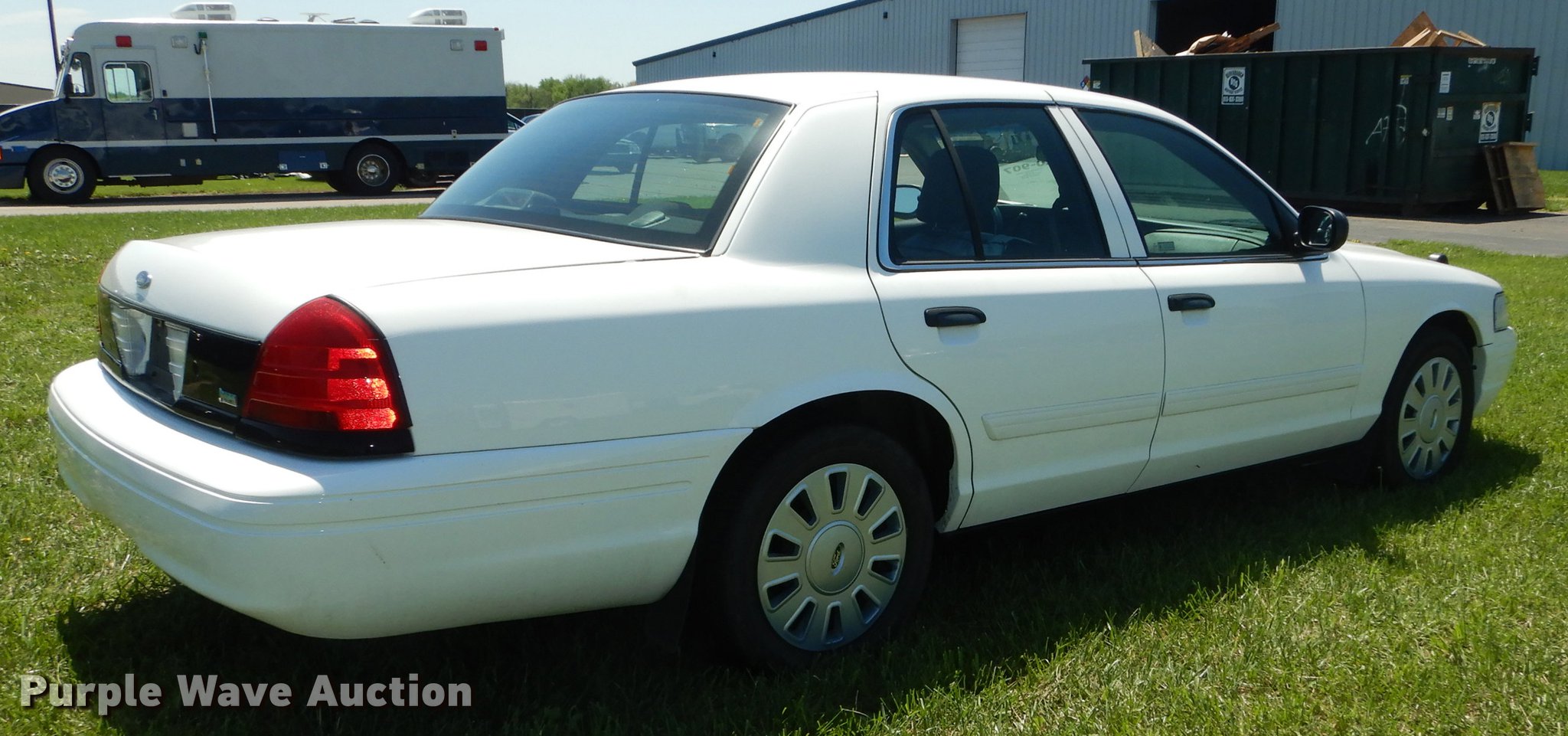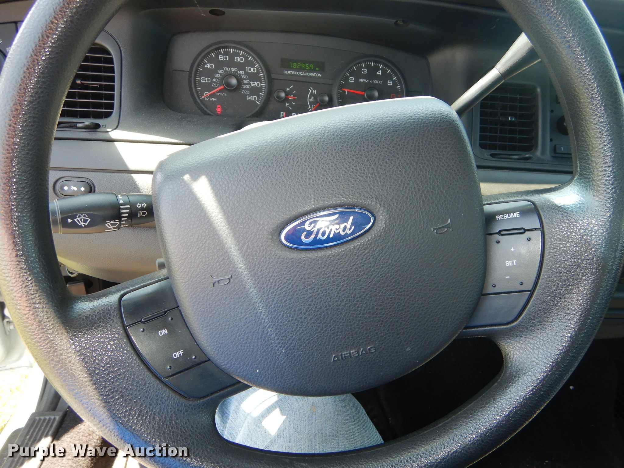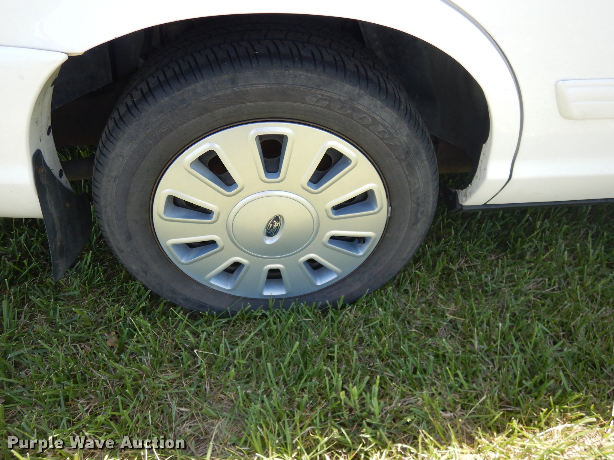 Purple Wave is selling a used Passenger Vehicle in Kansas. This item is a 2010 Ford Crown Victoria Police Interceptor with the following: 78,295 miles on odometer, 4.6L V8 SOHC 16V FFV gas engine, Automatic transmission, AC and heat, Tilt, Cruise, AM/FM/CD, Power windows, locks, mirrors, and seat, Heated mirrors, Cloth interior, Spotlight, Push bar, Goodyear 235/55R17 tires, No center console, Hail damage, Passenger side headlight damaged, Unit# 10-907