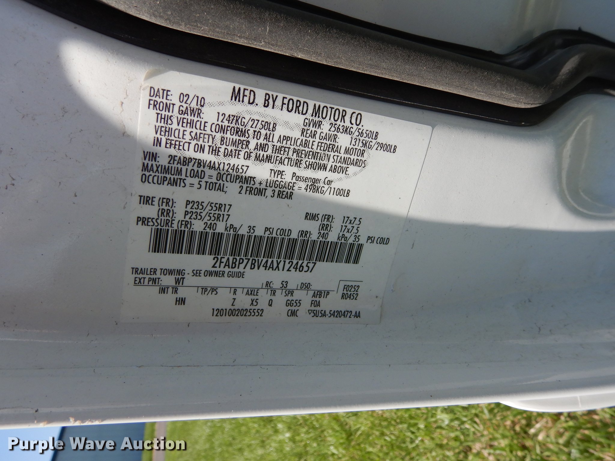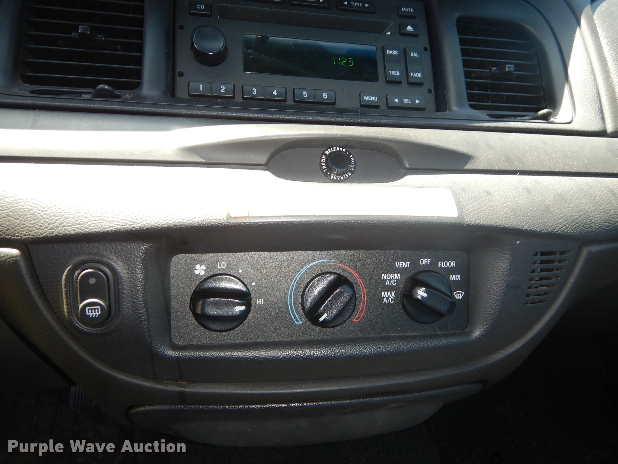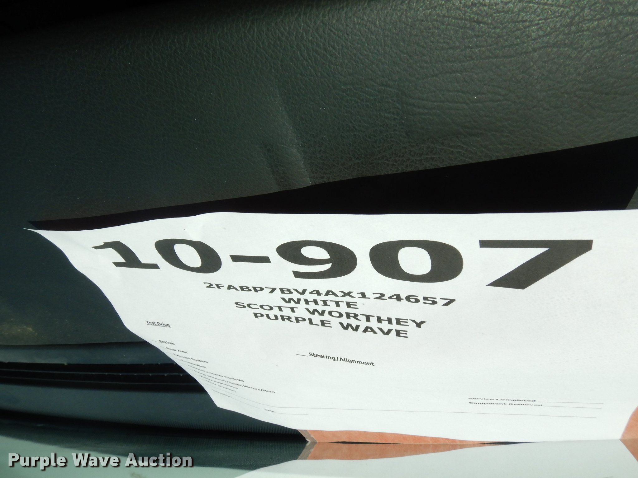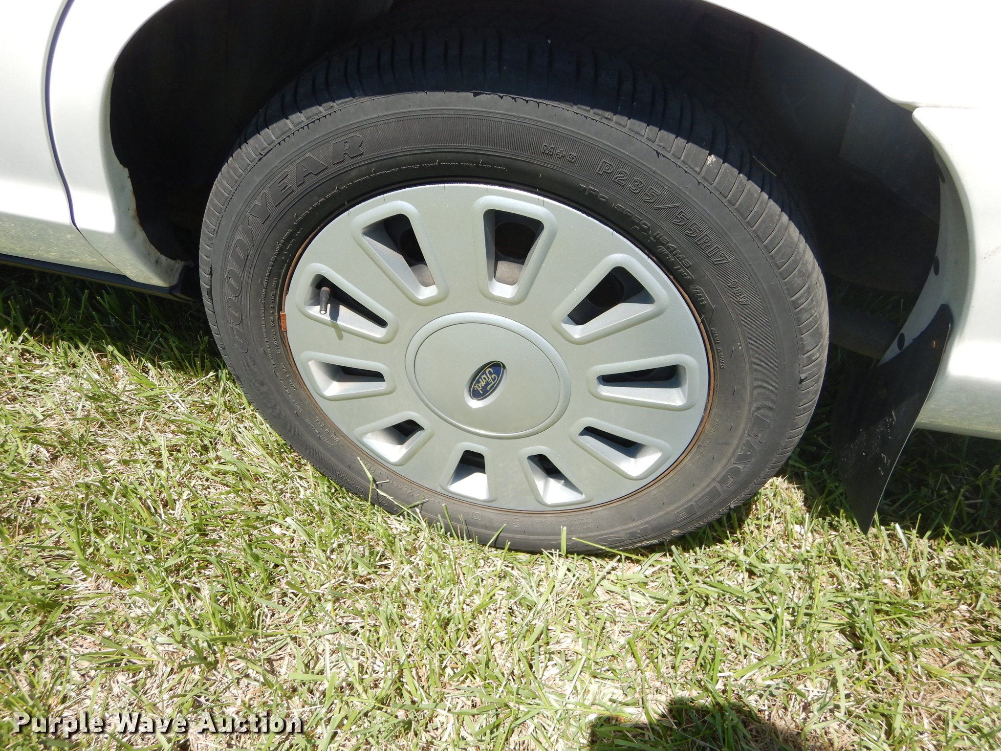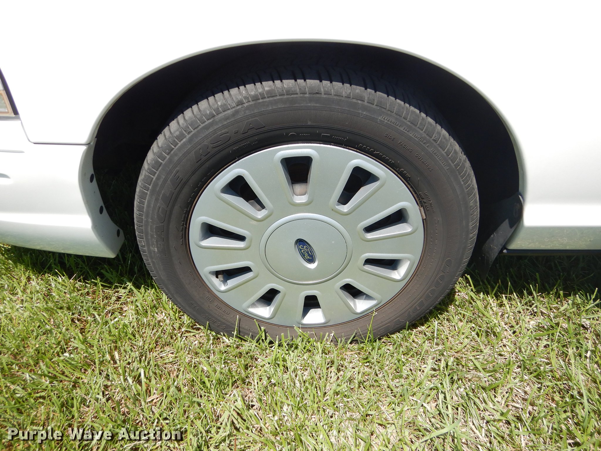 Purple Wave is selling a used Passenger Vehicle in Kansas. This item is a 2010 Ford Crown Victoria Police Interceptor with the following: 78,295 miles on odometer, 4.6L V8 SOHC 16V FFV gas engine, Automatic transmission, AC and heat, Tilt, Cruise, AM/FM/CD, Power windows, locks, mirrors, and seat, Heated mirrors, Cloth interior, Spotlight, Push bar, Goodyear 235/55R17 tires, No center console, Hail damage, Passenger side headlight damaged, Unit# 10-907
