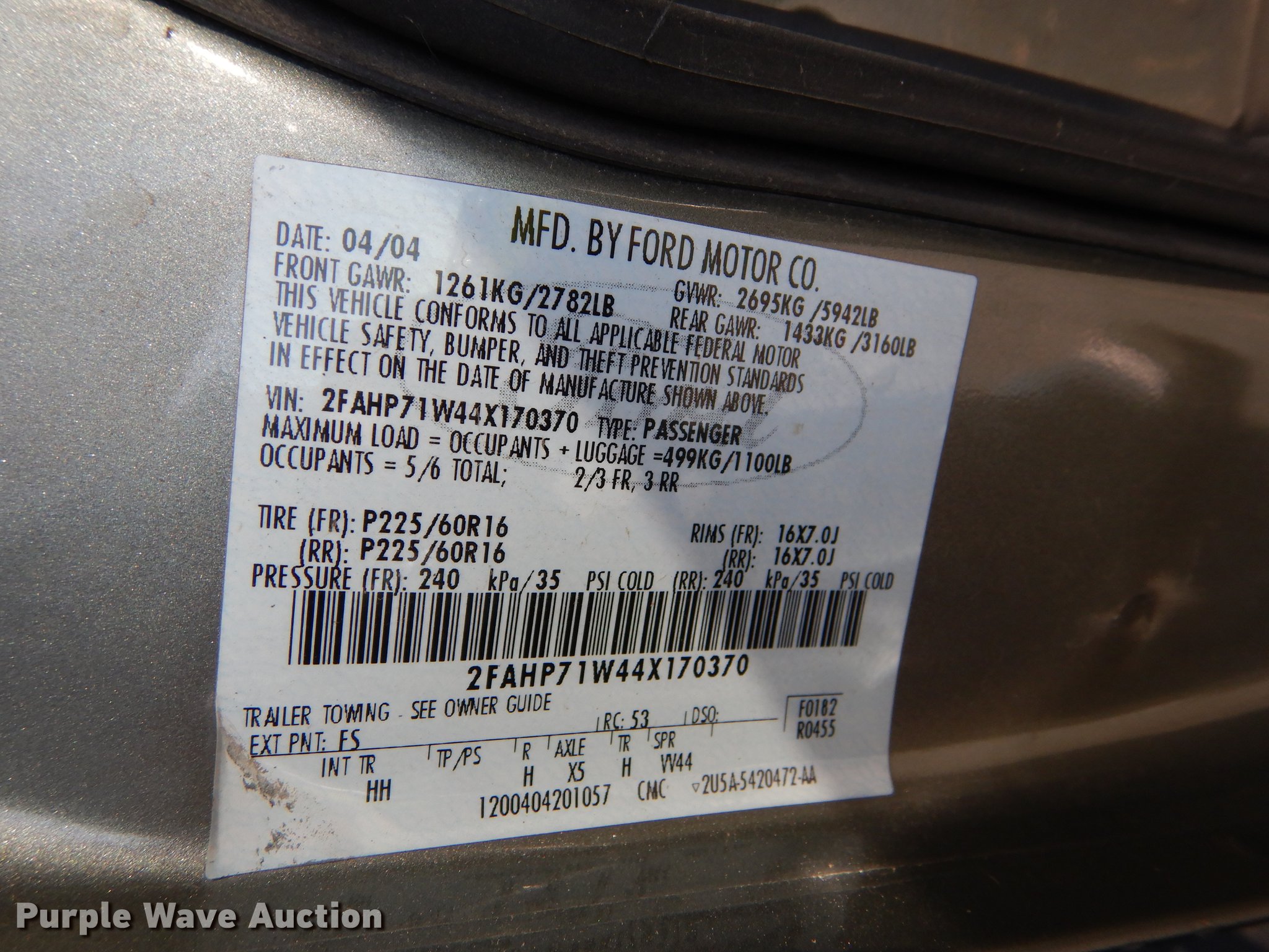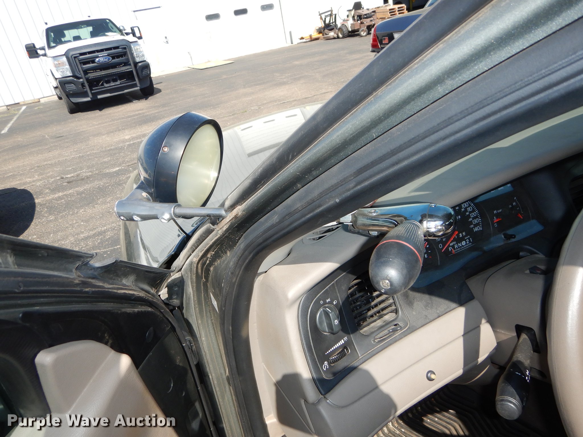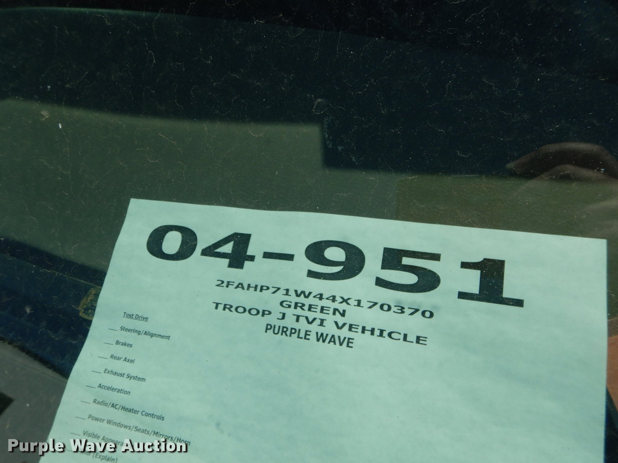Purple Wave is selling a used Passenger Vehicle in Kansas. This item is a 2004 Ford Crown Victoria Police Interceptor with the following: 106,058 miles on odometer, 4.6L V8 SOHC 16V gas engine, Automatic transmission, AC and heat, Tilt, Cruise, AM/FM/cassette, Power windows, locks, mirrors, and seat, Heated mirrors, Cloth interior, Spotlight, Goodyear 225/60R16 tires, Flat tires, No center console, Wreck damage, Non-operational unit, Unit# 04-951