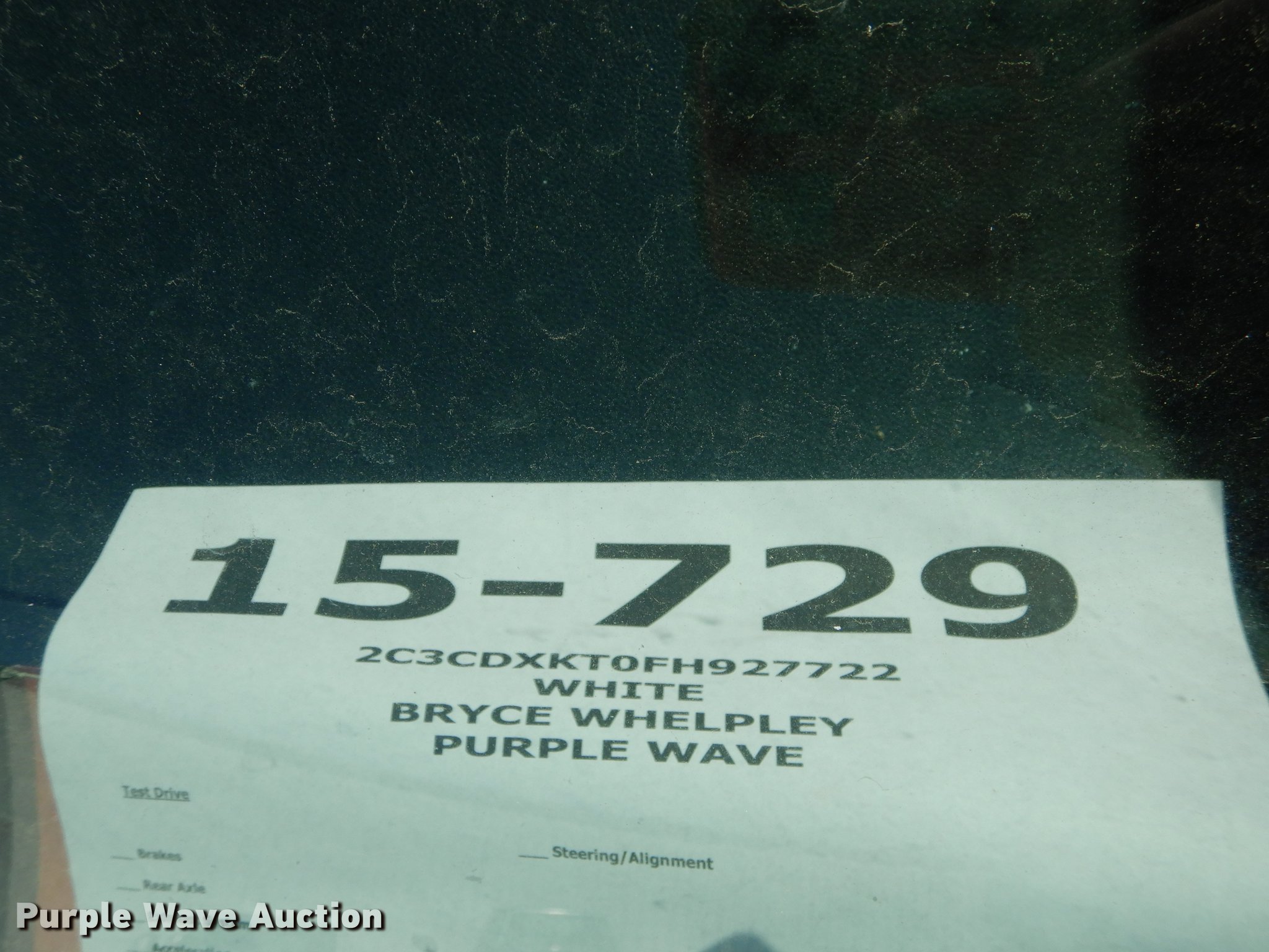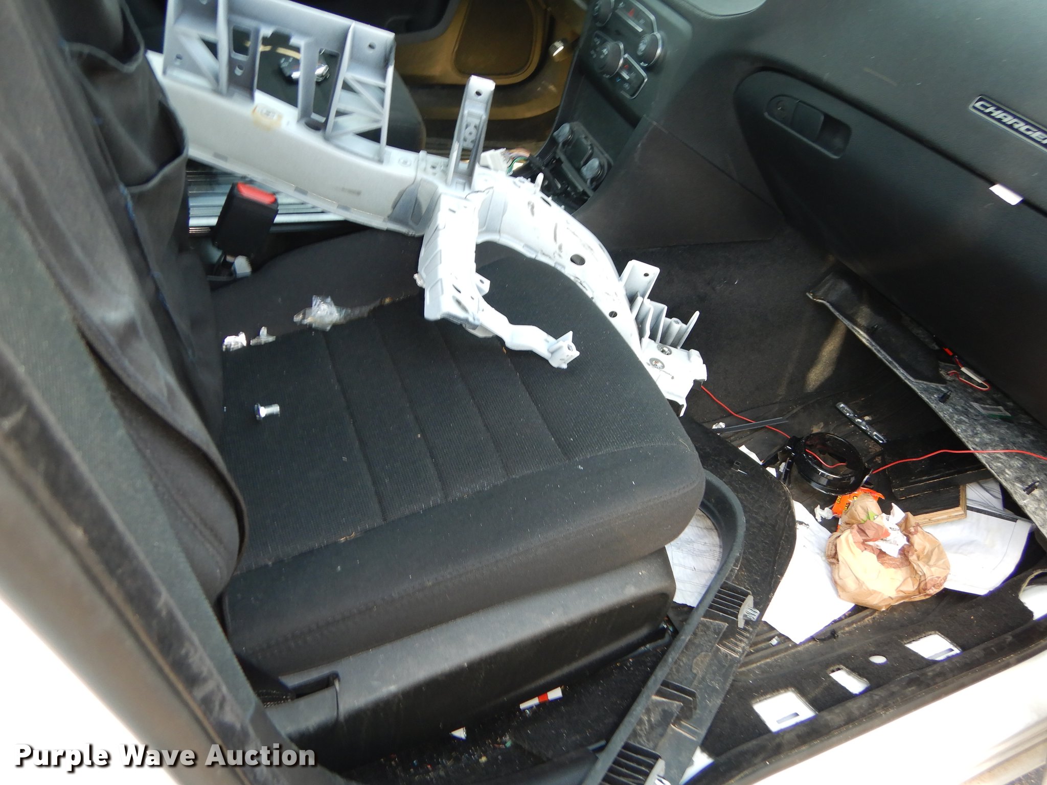 Purple Wave is selling a used Passenger Vehicle in Kansas. This item is a 2015 Dodge Charger Police with the following: 19,946 miles on odometer, 5.7L V8 OHV 16V gas engine, Automatic transmission, All wheel drive, AC and heat, Tilt, Cruise, AM/FM, Power windows, locks, mirrors, and seat, Heated mirrors, Cloth interior, Spotlight, Goodyear 225/60R18 tires, No center console, Wreck damage, Non-operational unit, Unit# 15-729
