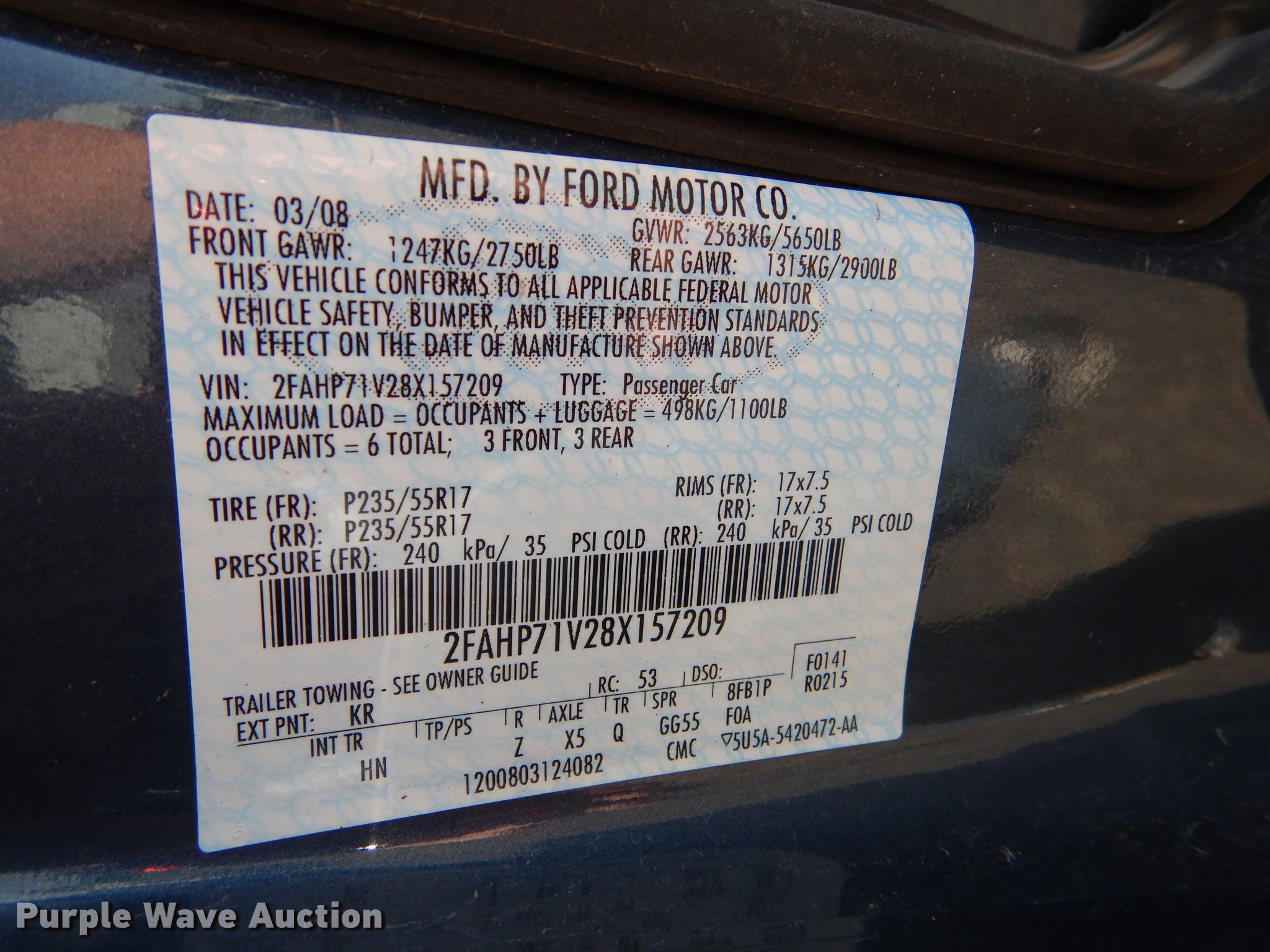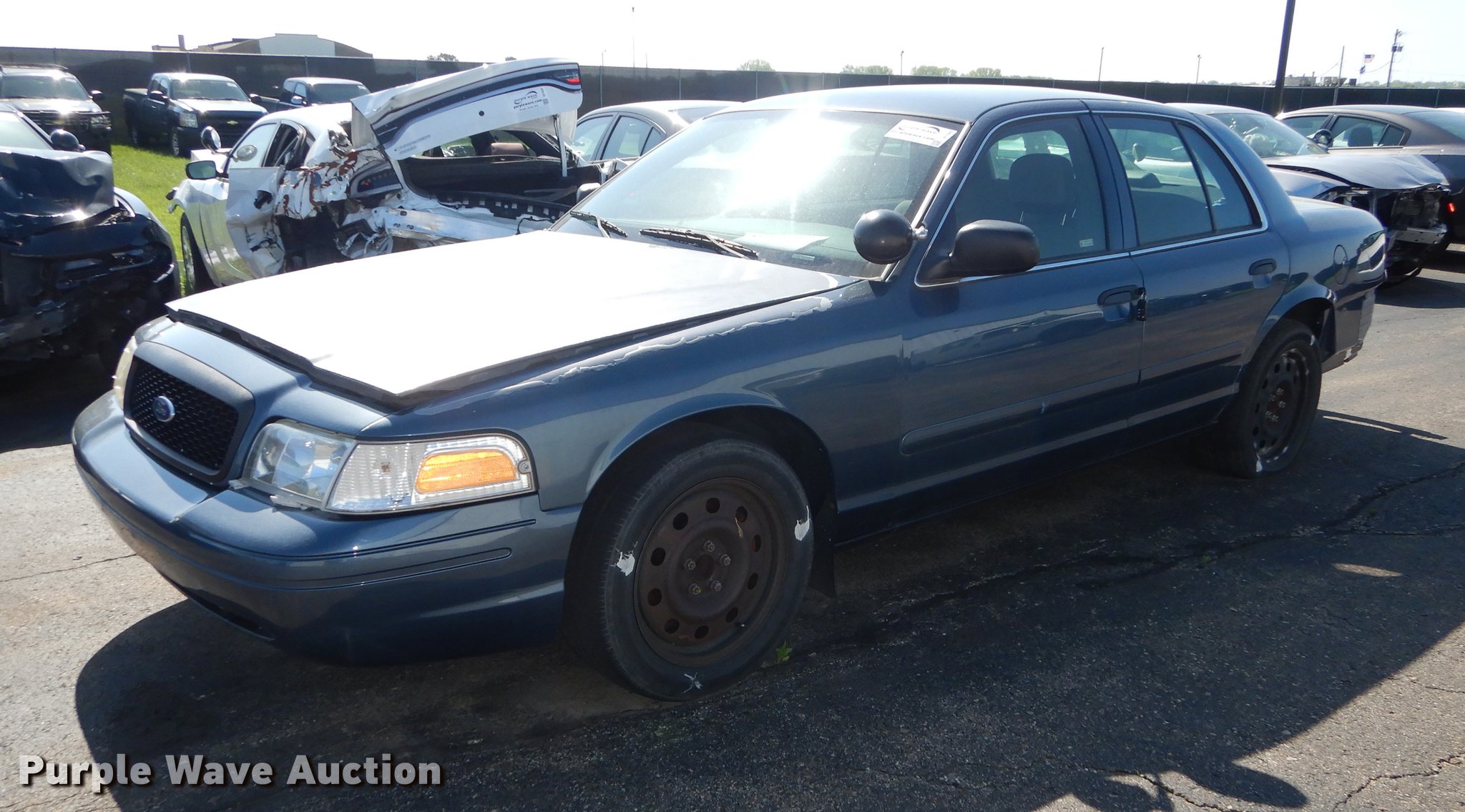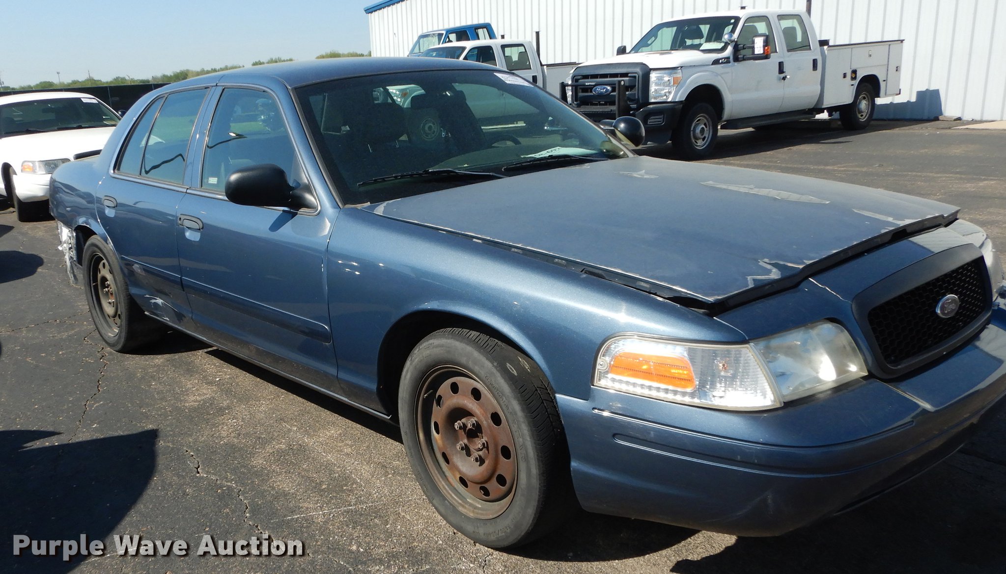 Purple Wave is selling a used Passenger Vehicle in Kansas. This item is a 2008 Ford Crown Victoria Police Interceptor with the following: 63,613 miles on odometer, 4.6L V8 SOHC 16V FFV gas engine, Automatic transmission, AC and heat, Tilt, Cruise, AM/FM/CD, Power windows, locks, mirrors, and seat, Cloth interior, Spotlight, Goodyear 235/55R17 tires, Flat/worn tires, No center console, Wreck damage, Non-operational unit, Unit# 08-692