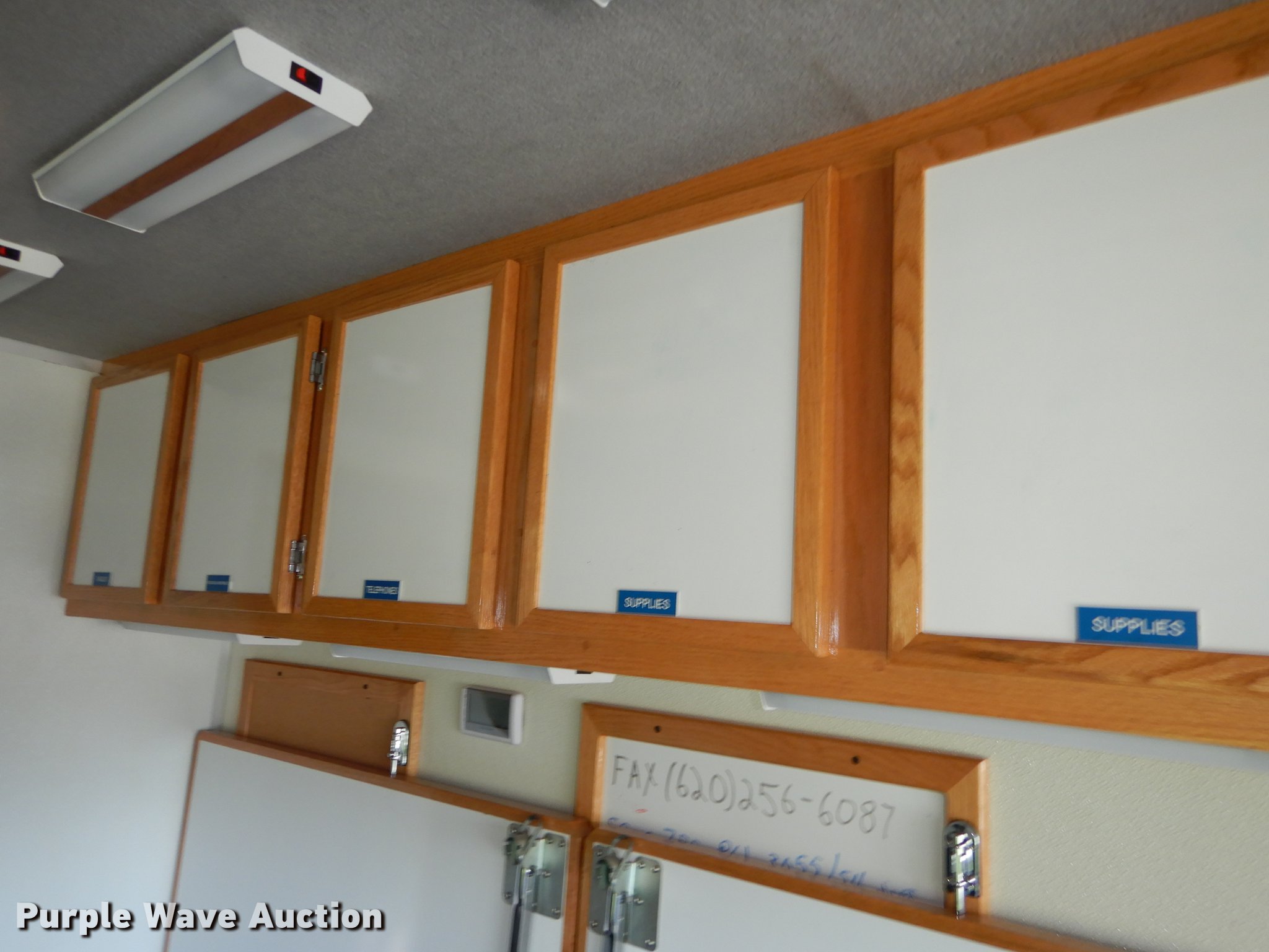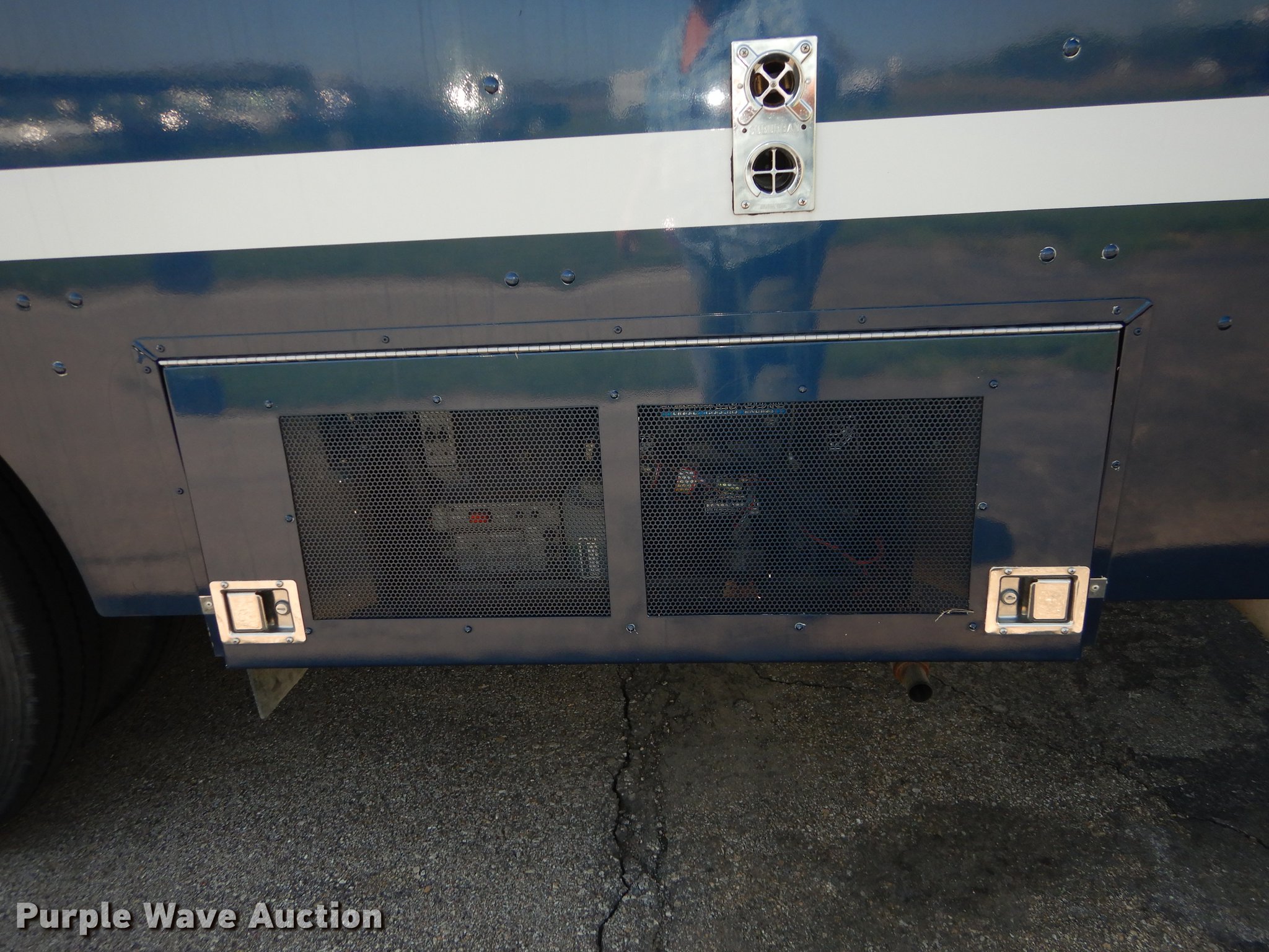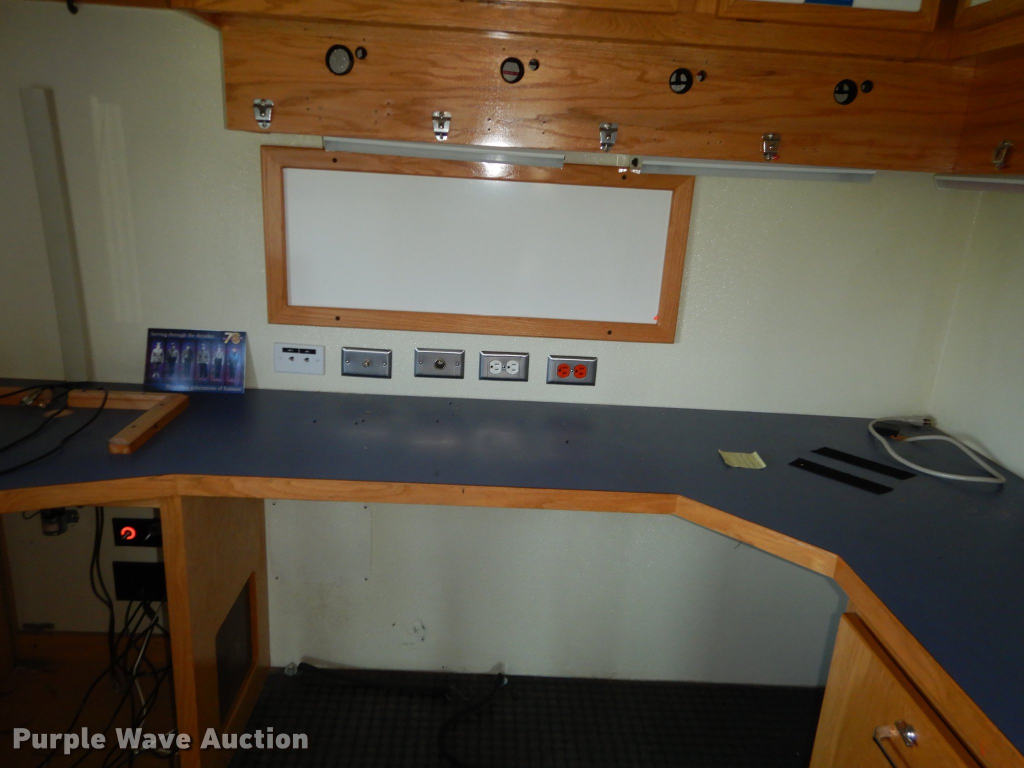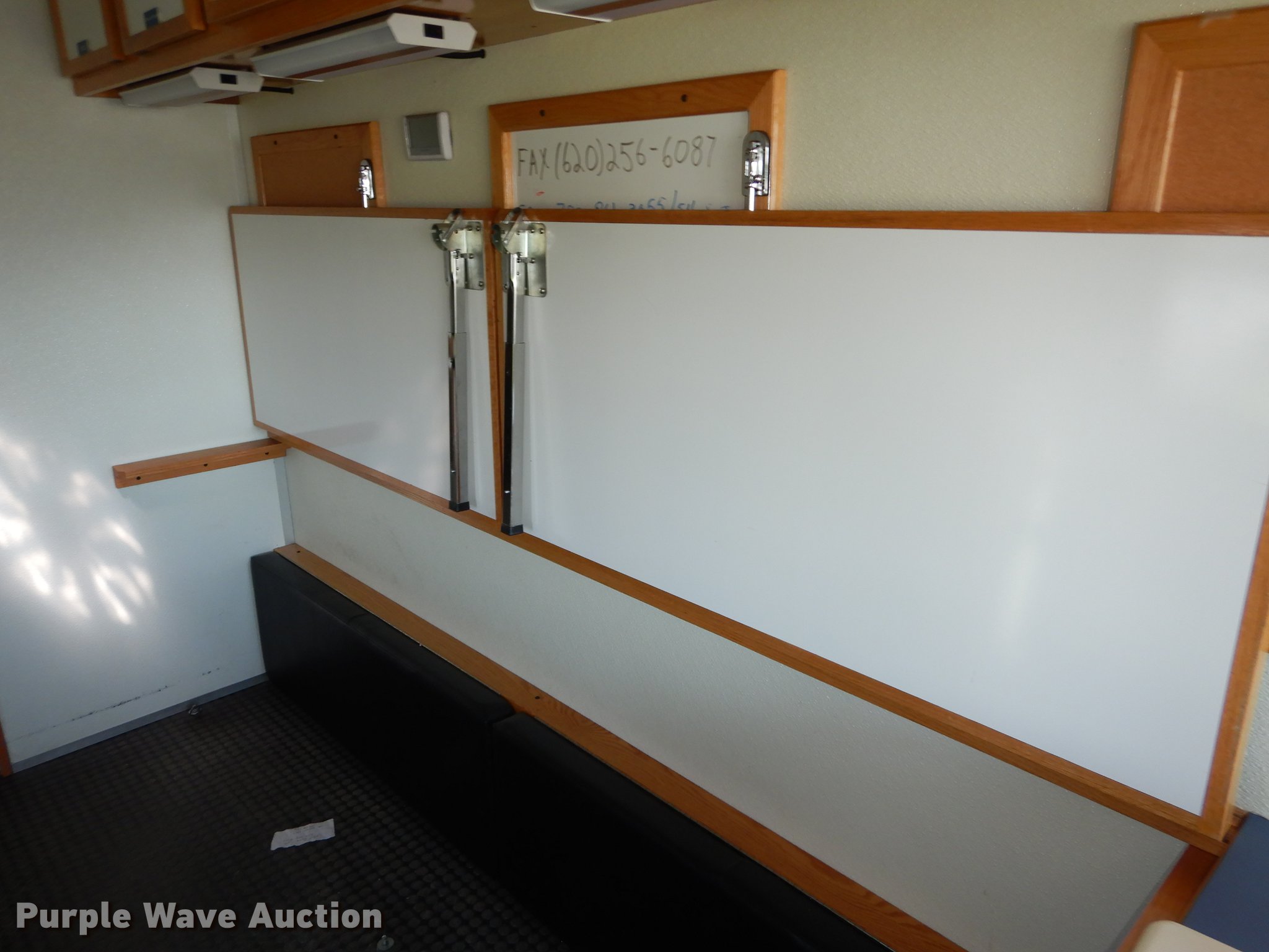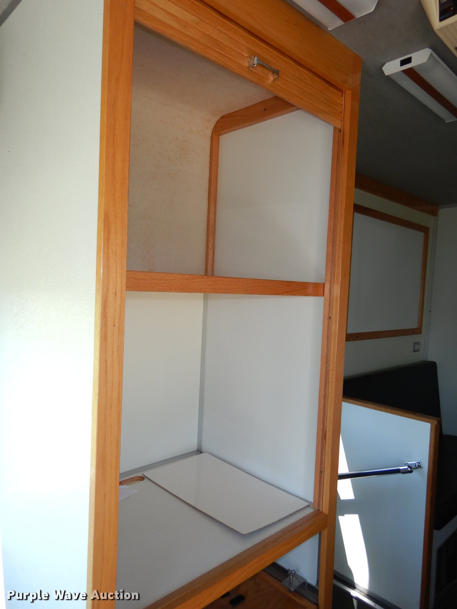 1990 Chevrolet Command Center truck. 20,284 miles on odometer, 7.0L V8 gas engine, Automatic transmission, AC and heat, AM/FM/cassette, Power and heated mirrors, Vinyl interior, Clarion backup camera, Canopy, (2) side entry doors, Work lights, Lynch emergency light display, Holley Lean/Rich indicator, (2) Panasonic 14" television/DVD, Norcold refrigerator, Sink, Toilet, (2) Coleman roof AC units, Rear AC and heat, Honda EV6010 RV liquid cooled generator, Propane hookups, Telescopic antenna, Storage compartments, Spring suspension, Hydraulic brakes, 17' wheelbase, Bridgestone 10R22.5 tires, Dead battery, Unit# 90-77. Kansas title. 1GBJ6T1E9LV111687. Kansas Highway Patrol. Topeka, KS 66616