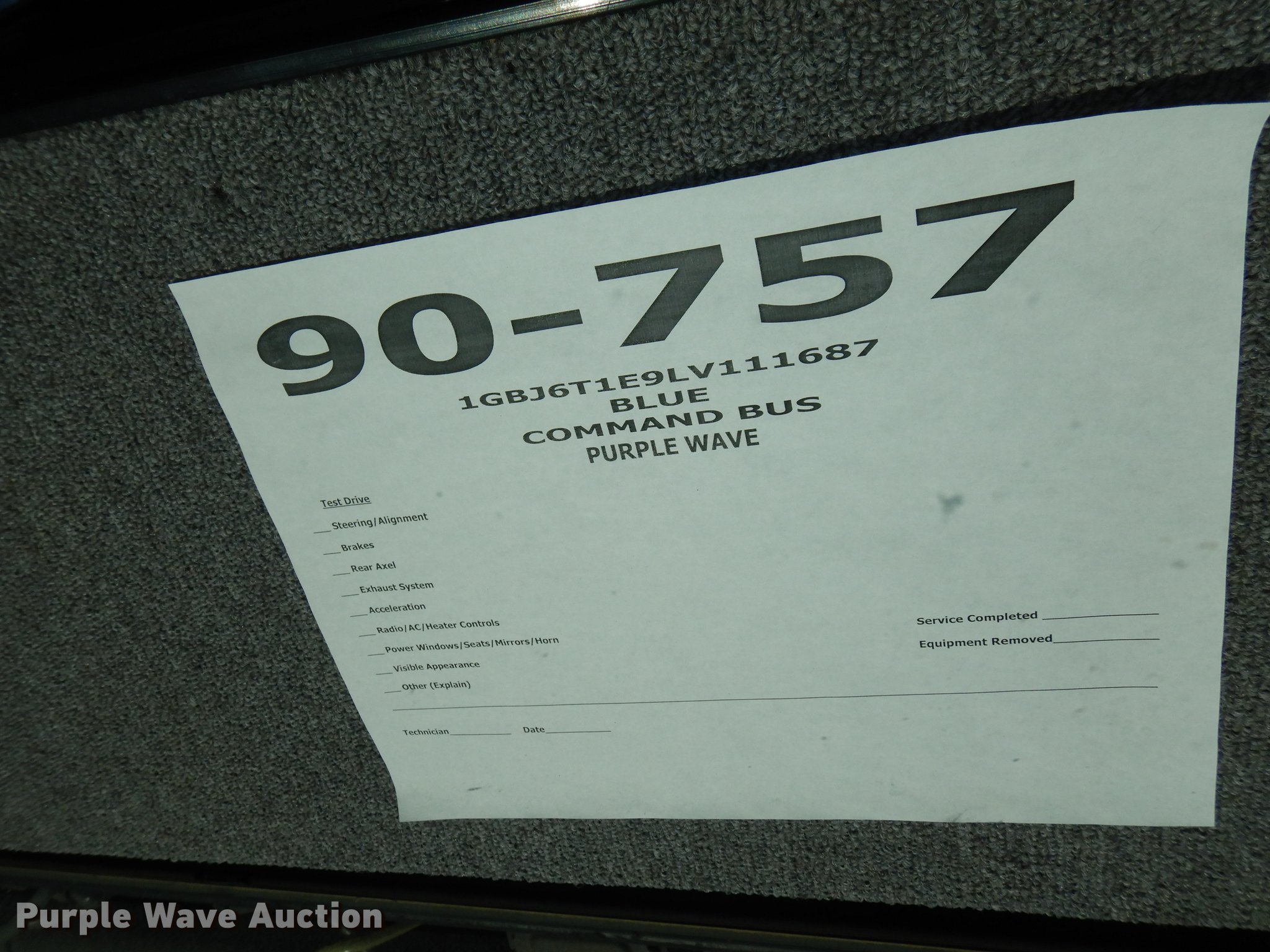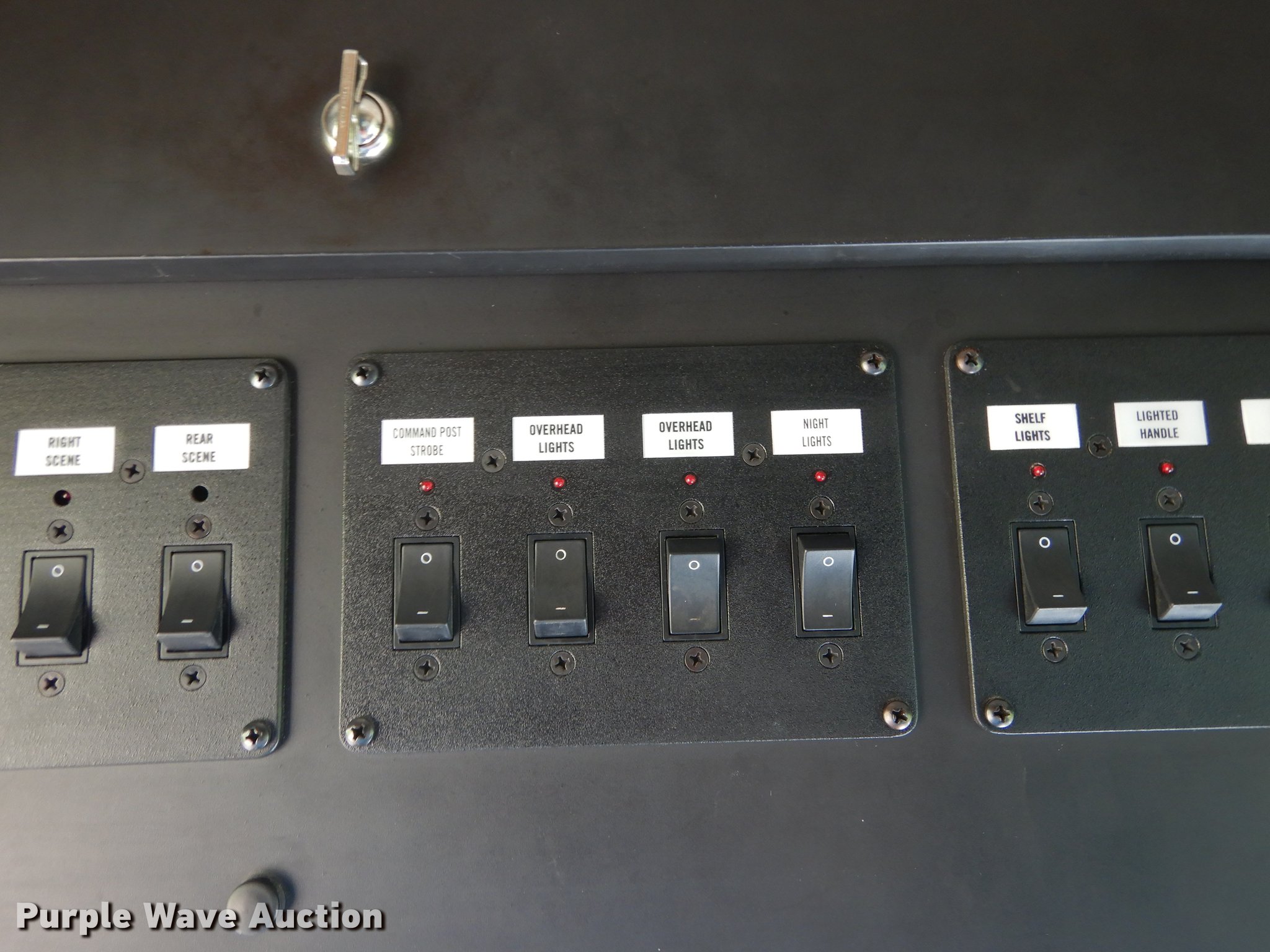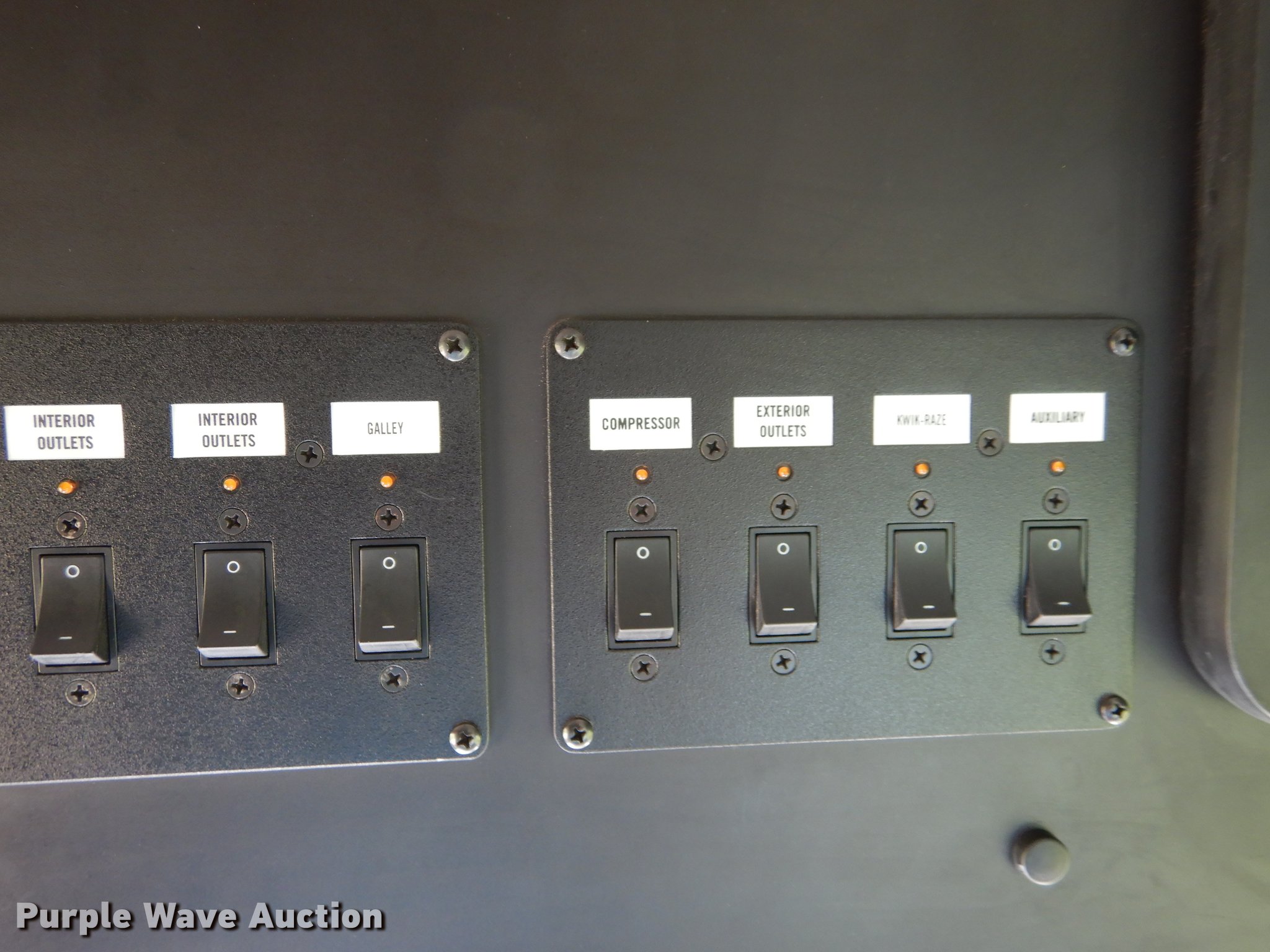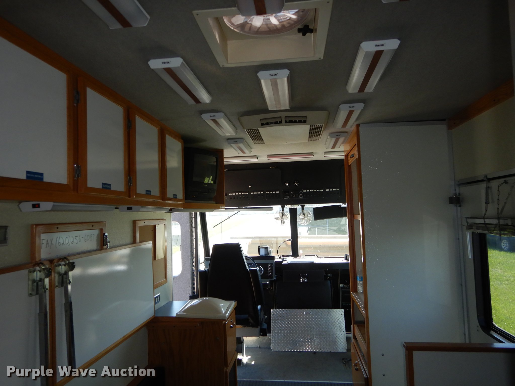 Purple Wave is selling a used Fire Truck or Emergency Vehicle in Kansas. This item is a 1990 Chevrolet Command Center truck with the following: 20,284 miles on odometer, 7.0L V8 gas engine, Automatic transmission, AC and heat, AM/FM/cassette, Power and heated mirrors, Vinyl interior, Clarion backup camera, Canopy, (2) side entry doors, Work lights, Lynch emergency light display, Holley Lean/Rich indicator, (2) Panasonic 14" television/DVD, Norcold refrigerator, Sink, Toilet, (2) Coleman roof AC units, Rear AC and heat, Honda EV6010 RV liquid cooled generator, Propane hookups, Telescopic antenna, Storage compartments, Spring suspension, Hydraulic brakes, 17' wheelbase, Bridgestone 10R22.5 tires, Dead battery, Unit# 90-77
