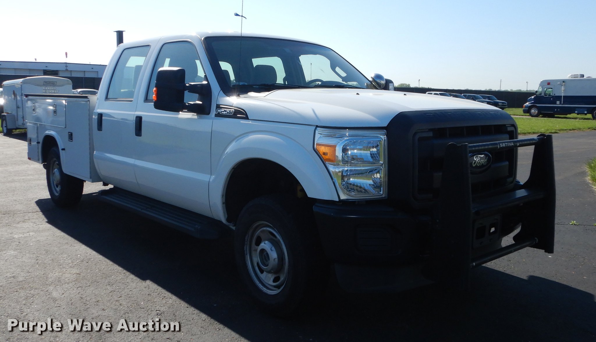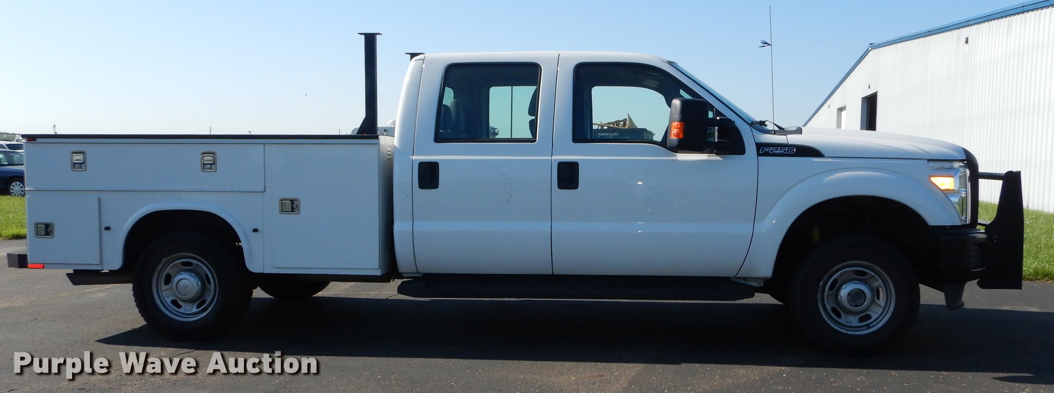 Purple Wave is selling a used 3/4 or 1 Ton Pickup or Van in Kansas. This item is a 2012 Ford F250 Super Duty Crew Cab utility bed pickup truck with the following: 202,025 miles on odometer, 6.2L V8 OHV 16V gas engine, Automatic transmission, Four wheel drive, AC and heat, Tilt, Cruise, AM/FM/CD, Power windows, locks, and mirrors, Heated mirrors, Cloth interior, Spotlight, Front tow hooks, Running boards, Grill guard, Knapheide 796LPJ utility bed, (6) compartments, Receiver hitch, Trailer wiring, 245/75R17 tires, Unit# 12-789