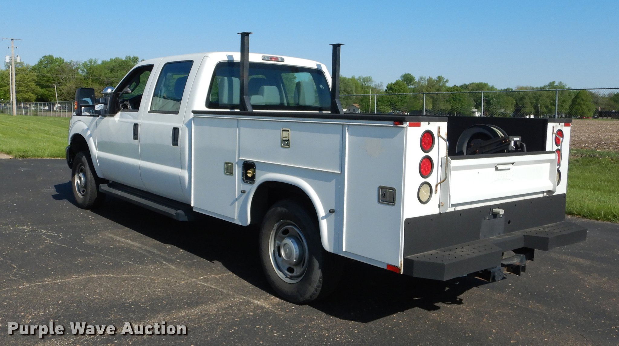 This 2012 Ford F250 Super Duty Crew Cab utility bed pickup truck will sell to the highest bidder regardless of price.