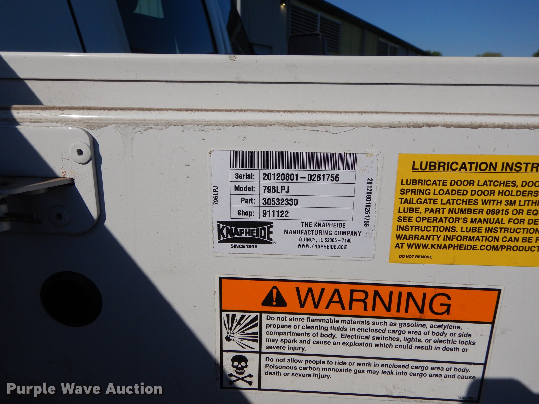 Purple Wave is selling a used 3/4 or 1 Ton Pickup or Van in Kansas. This item is a 2012 Ford F250 Super Duty Crew Cab utility bed pickup truck with the following: 271,692 miles on odometer, 6.2L V8 OHV 16V gas engine, Automatic transmission, Four wheel drive, AC and heat, Tilt, Cruise, AM/FM/CD, Power windows, locks, and mirrors, Heated mirrors, Cloth interior, Spotlight, Front tow hooks, Running boards, Grill guard, Knapheide 796LPJ utility bed, (6) compartments, Receiver hitch, Trailer wiring, 245/75R17 tires, Dead battery, Unit# 12-267