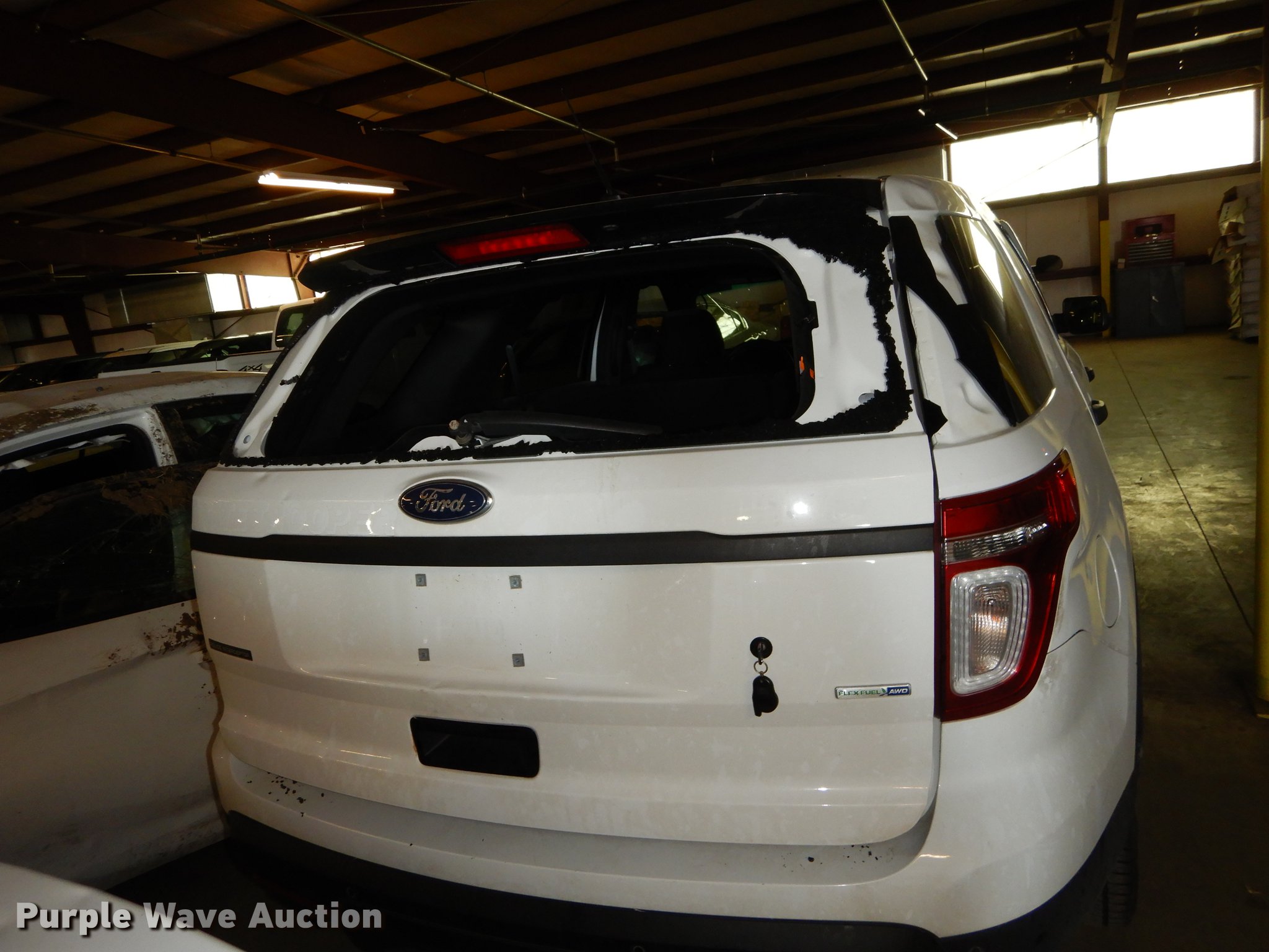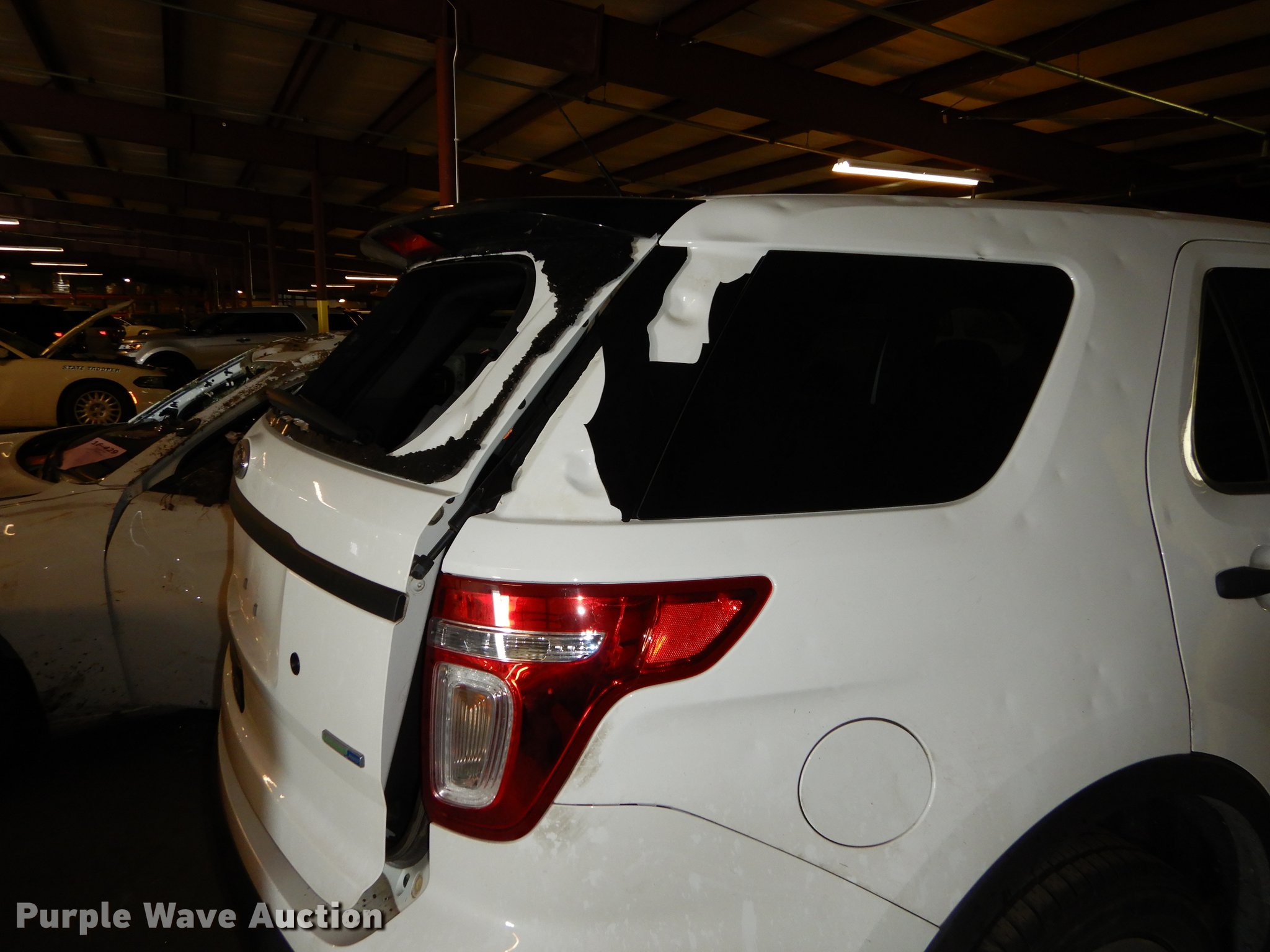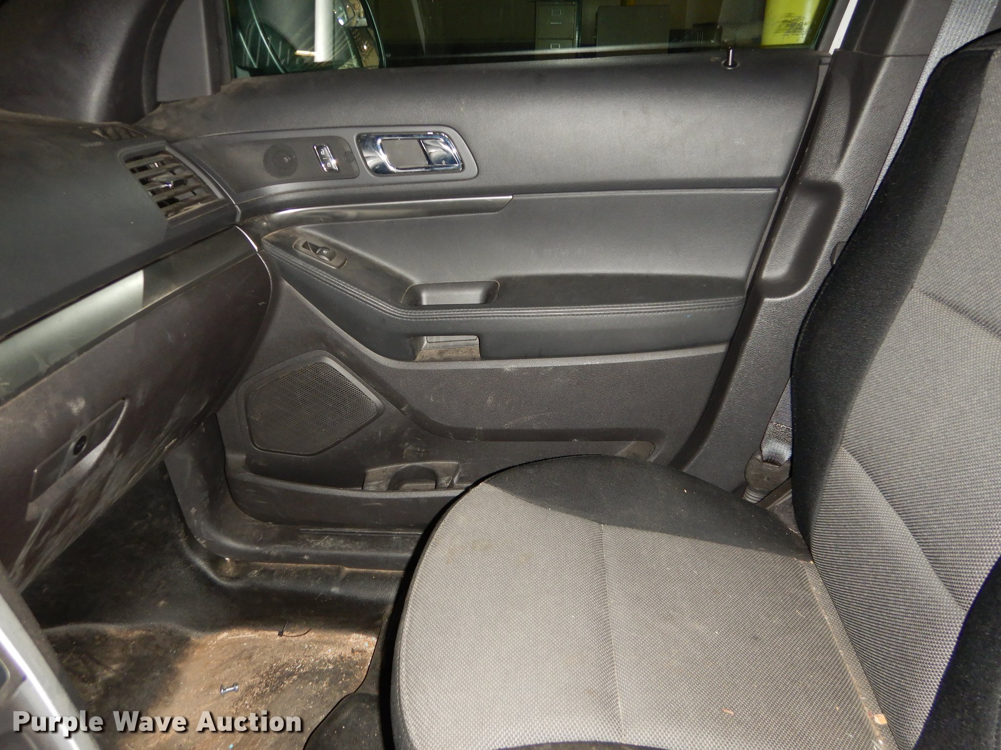 Purple Wave is selling a used Passenger Vehicle in Kansas. This item is a 2015 Ford Explorer Police Interceptor SUV with the following: 34,528 miles on odometer, 3.7L V6 DOHC 24V gas engine, Automatic transmission, All wheel drive, AC and heat, Cruise, AM/FM/CD, Power windows, locks, mirrors, and seat, Heated mirrors, Cloth interior, Spotlight, Firestone 245/55R18 tires, No center console, Cracked/missing glass, Hail damage, Wreck damage, Non-operational unit, Unit# 15-394