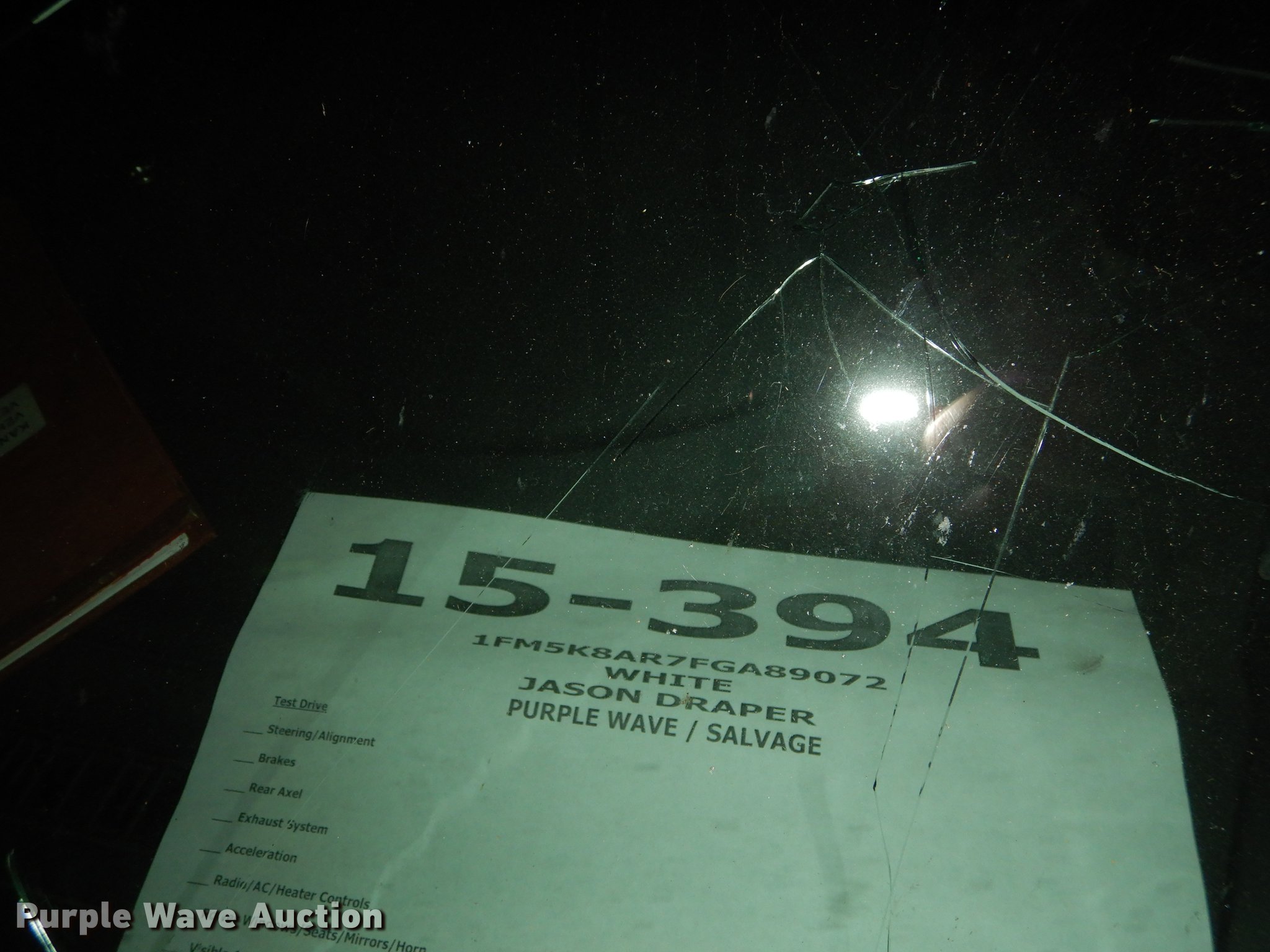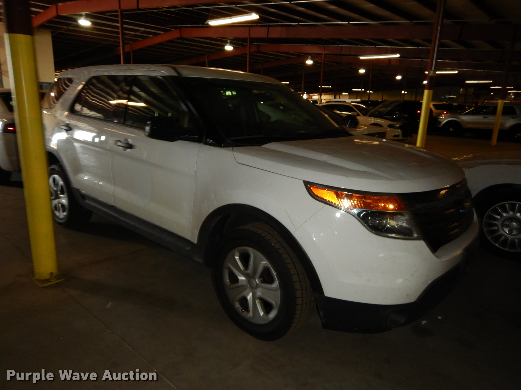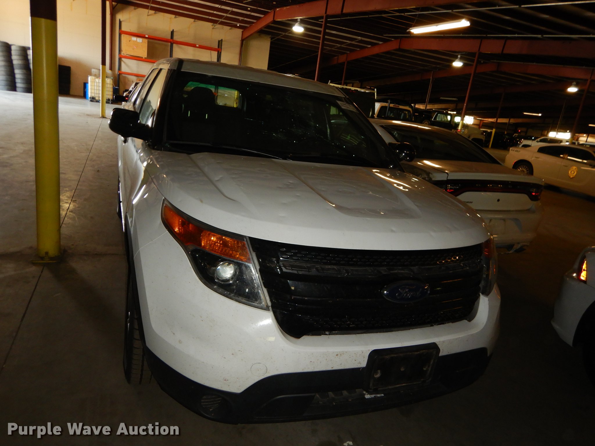 Purple Wave is selling a used Passenger Vehicle in Kansas. This item is a 2015 Ford Explorer Police Interceptor SUV with the following: 34,528 miles on odometer, 3.7L V6 DOHC 24V gas engine, Automatic transmission, All wheel drive, AC and heat, Cruise, AM/FM/CD, Power windows, locks, mirrors, and seat, Heated mirrors, Cloth interior, Spotlight, Firestone 245/55R18 tires, No center console, Cracked/missing glass, Hail damage, Wreck damage, Non-operational unit, Unit# 15-394