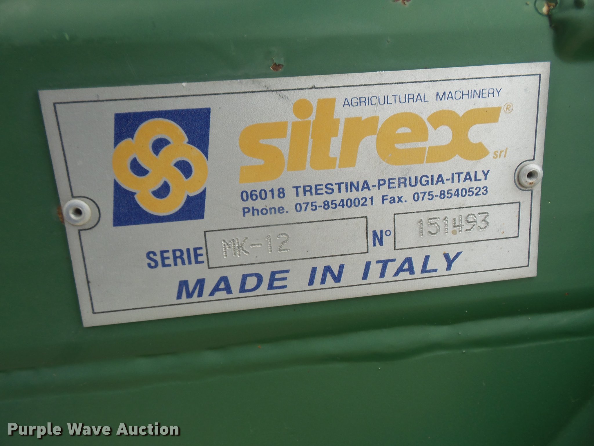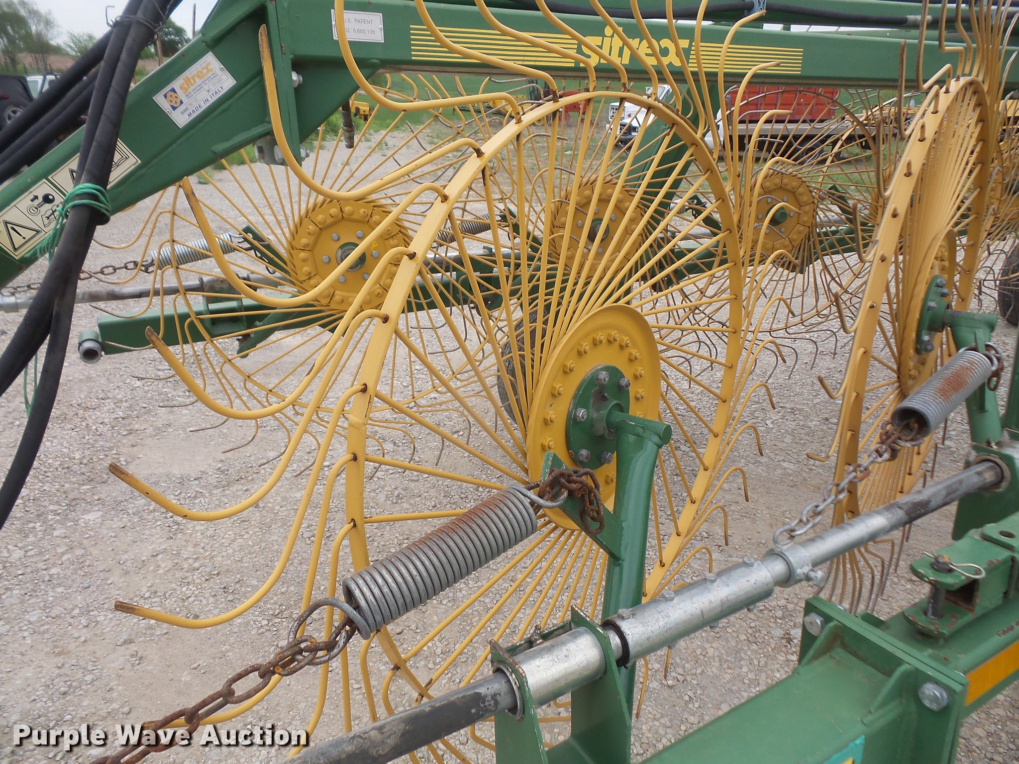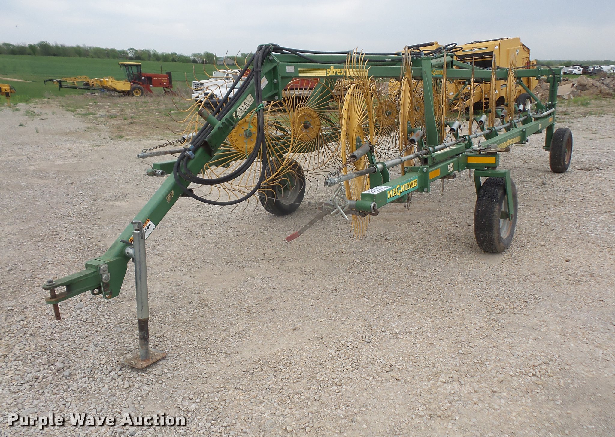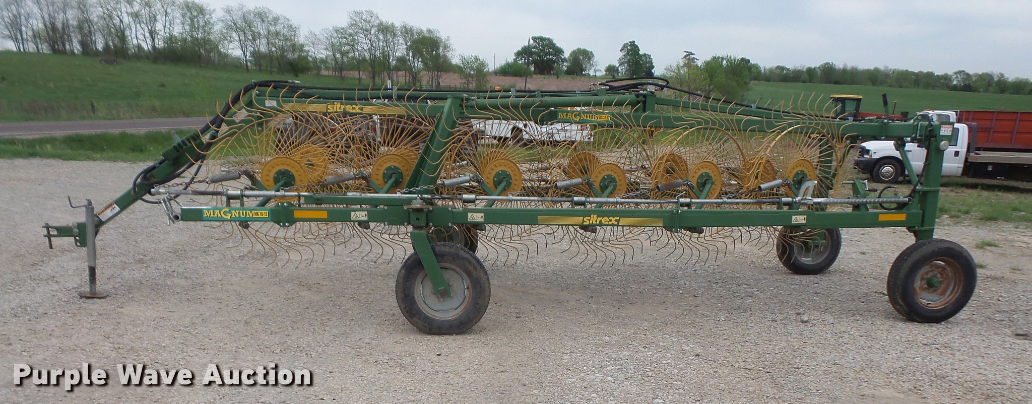 Purple Wave is selling a used Hay Rake in Kansas. This item is a 2006 Sitrex MK-12 hay rake with the following: (12) Vermeer wheels, Hydraulic lift and fold, Pin hitch, 205/75R45 tires, Serial 151493