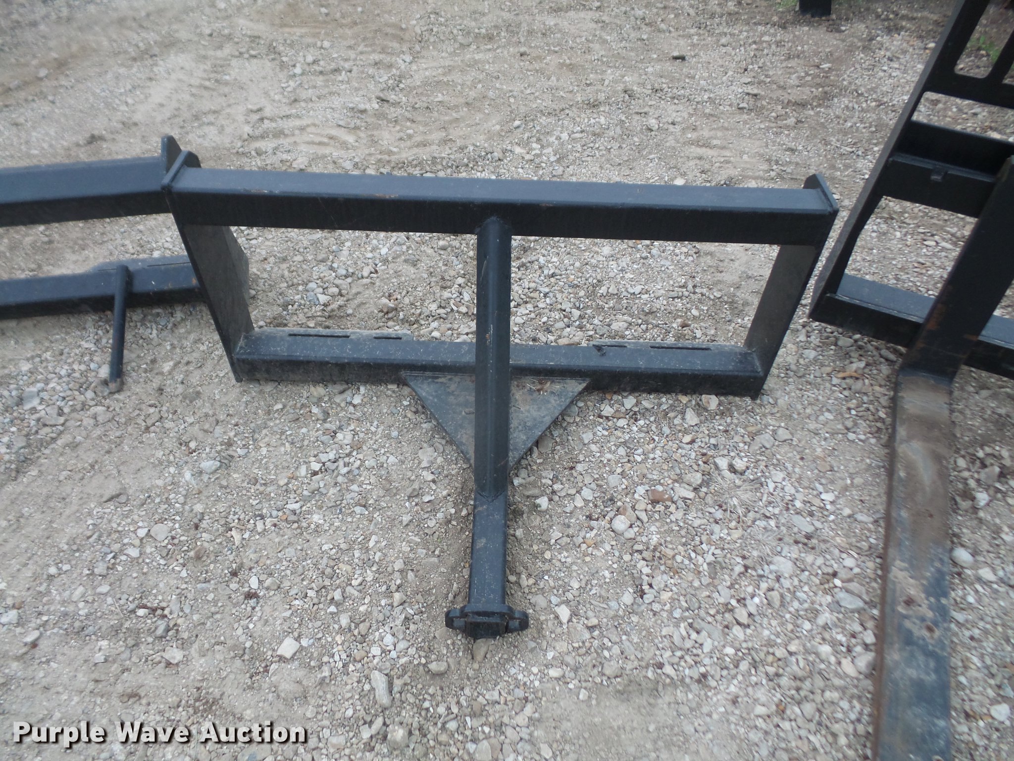 Purple Wave is selling a used Skid Steer Attach. in Kansas. This item is a (3) skid steer attachments with the following: Pallet forks, 48"L forks, Bale spear, 42"L spear, Receiver hitch attachment