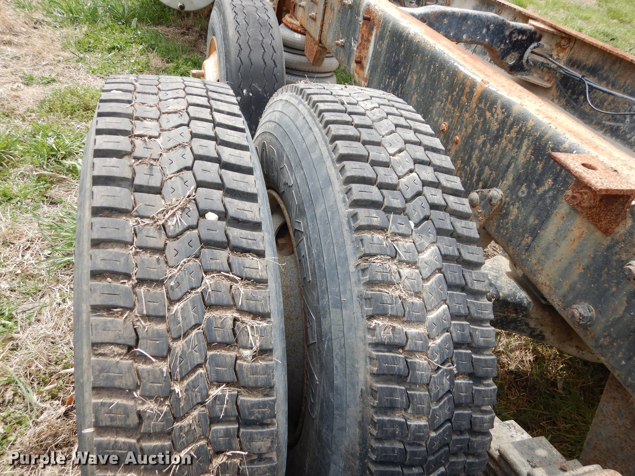 Purple Wave is selling a used Truck Chassis in Kansas. This item is a 1993 Mack RD690S truck cab and chassis with the following: 282,469 miles on odometer, actual mileage unknown, 8,026 hours on meter, Mack EM7300 six cylinder turbo diesel engine, Maxitorque five speed manual transmission, Two speed rear end, Tandem axle, Pusher lift axle, AC and heat, Cruise, AM/FM/CD, Power windows, Heated mirrors, Air suspension seat, Block heater, PTO, Air shift, Single fuel tank, Camelback suspension, Air brakes, 256" wheelbase, 425/65R22.5 front tires, 11R22.5 rear tires, GVWR 58,000 lbs, FAWR 20,000 lbs, IAWR 19,000 lbs, RAWR 19,000 lbs, No batteries, Weak engine, CB not included, No taillights, Unit# 20