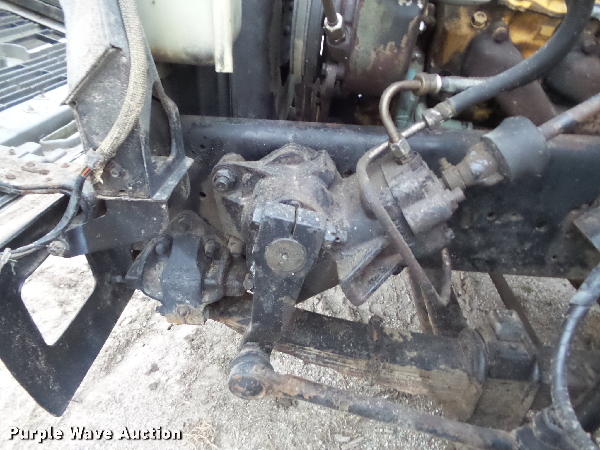 Purple Wave is selling a used Grain Truck in Missouri. This item is a 1984 Ford F8000 grain truck with the following: 134,698 miles on odometer, 290 hours on meter, Caterpillar 3208 10.4L V8 diesel engine, 185 HP, Serial 51Z27431, Automatic transmission, Single axle, Heat, PTO, Knapheide Pacesetter PX grain bed, 16'L x 95"W, 52"H removable sides, Approx. 500 bu. capacity, Wood floor, Dual ram hoist, Dual swing rear doors with grain gates, Hydraulic dump, Serial 503053, Single fuel tank, Spring suspension, Hydraulic brakes, 196" wheelbase, 275/80R22.5 front tires, 295/75R22.5 rear tires, GVWR 28,500 lbs, No batteries, Drivers door window missing, Unknown operating condition