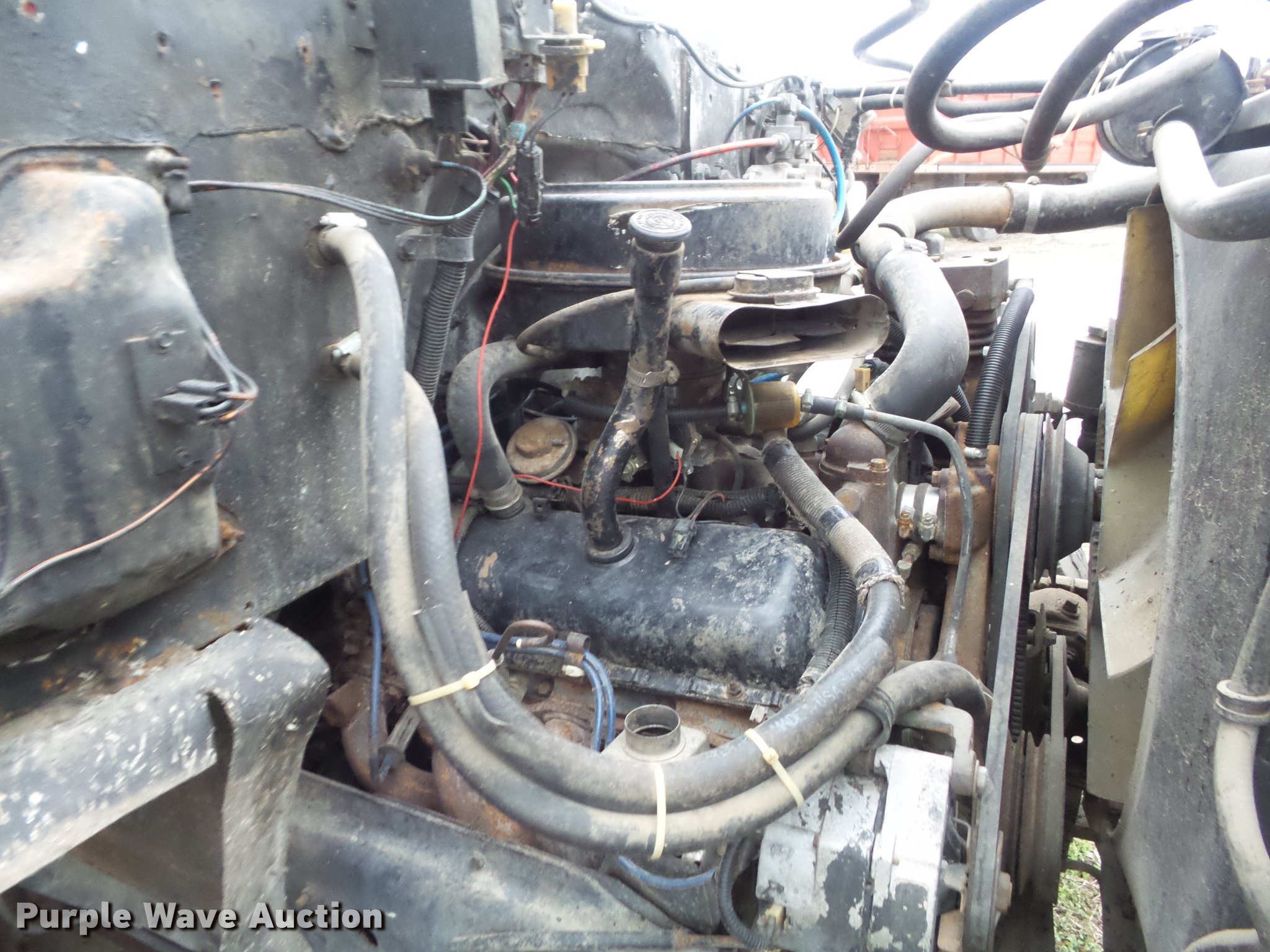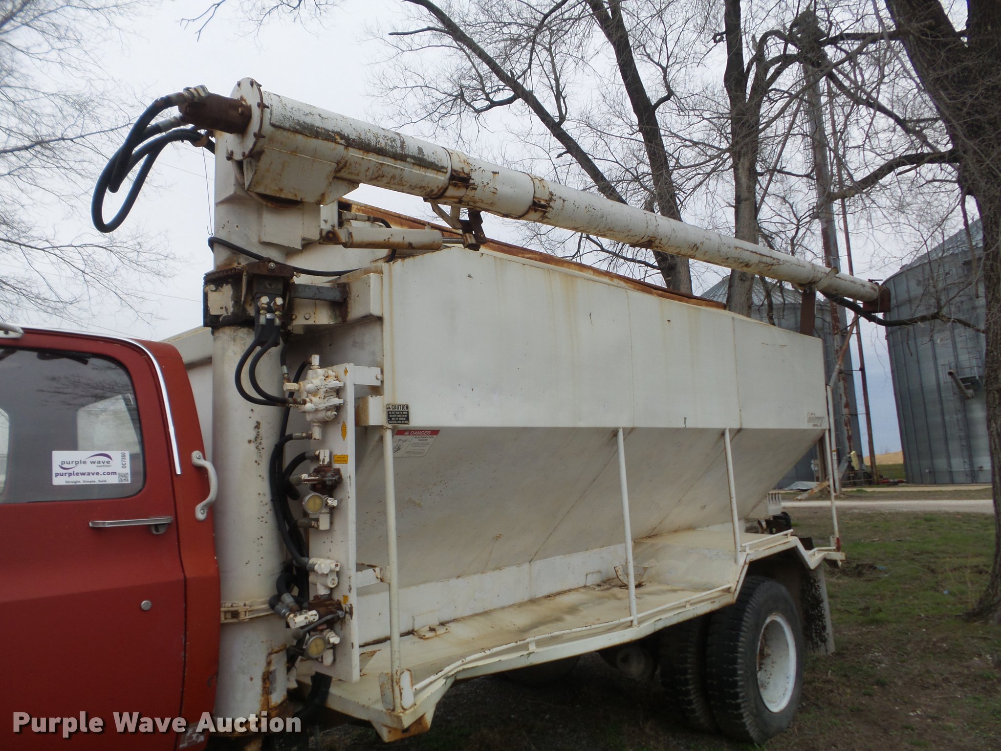 Purple Wave is selling a used Fertilizer or Feed Delivery Truck in Missouri. This item is a 1988 Chevrolet Kodiak 70 feed truck with the following: 120,459 miles on odometer, 7.0L V8 gas engine, Five speed manual transmission, Two speed rear end, Single axle, AM/FM, PTO, Sudenga ST14F7004-90 feed bed, 14'L, Three compartments, Rear/ground controls, 18'L side discharge auger, Hydraulic lift and swing, Serial 8355, Single fuel tank, Spring suspension, Air brakes, 10.00R20 front tires, 10.00-20 rear tires, No batteries, Unknown operating condition