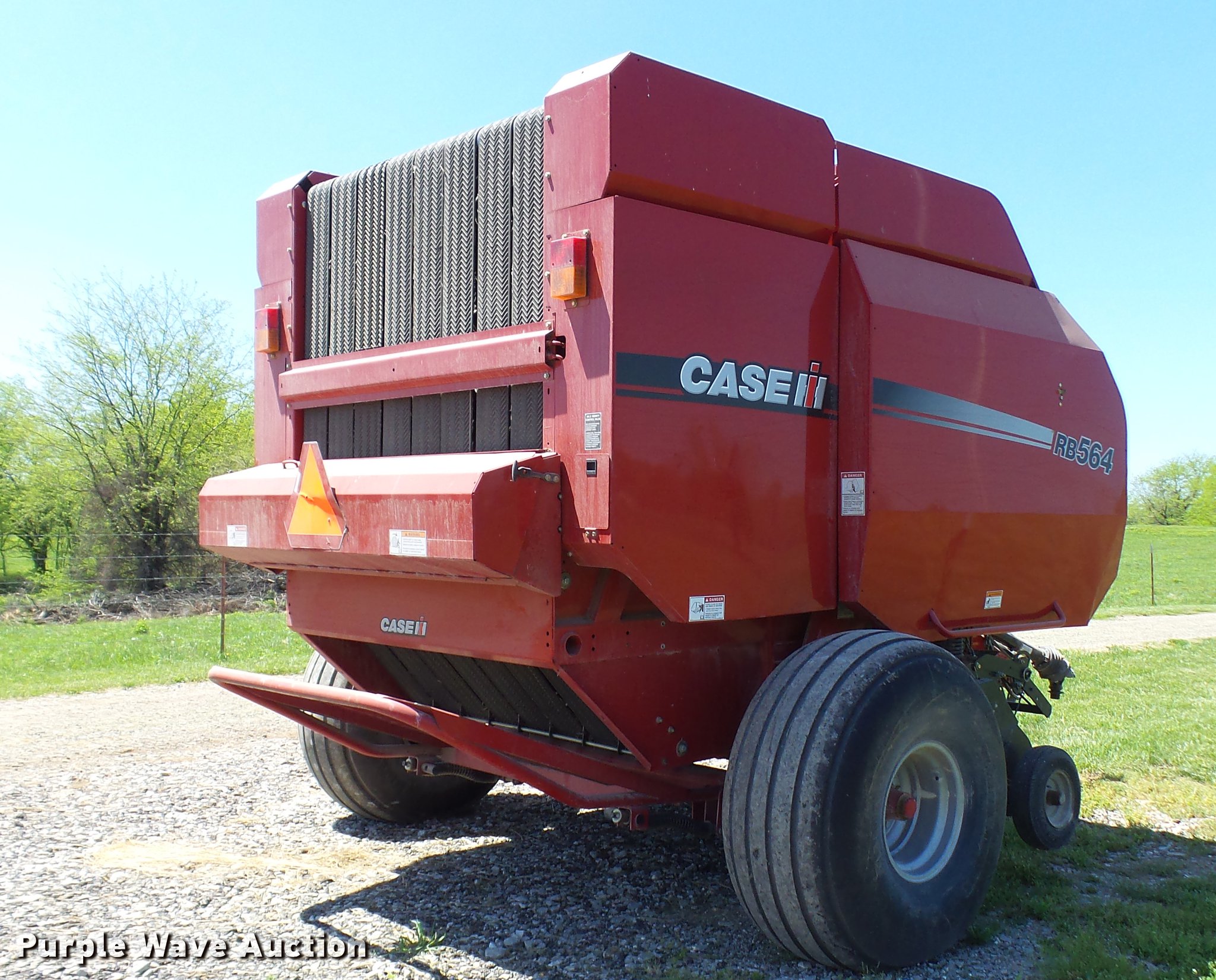 Purple Wave is selling a used Round Baler in Missouri. This item is a 2012 Case IH RB564 round baler with the following: 9,264 bale count, 5' x 6' bale capacity, 92"W pickup, Hydraulic pickup lift, Gauge wheels, Case IH monitor, Auto lube system, Auto-tie, Twine tie, Net-wrap, Bale kicker, Transport lights, Large 1000 PTO, Pin hitch, 21.5L-16.1SL tires, Serial YBN170383