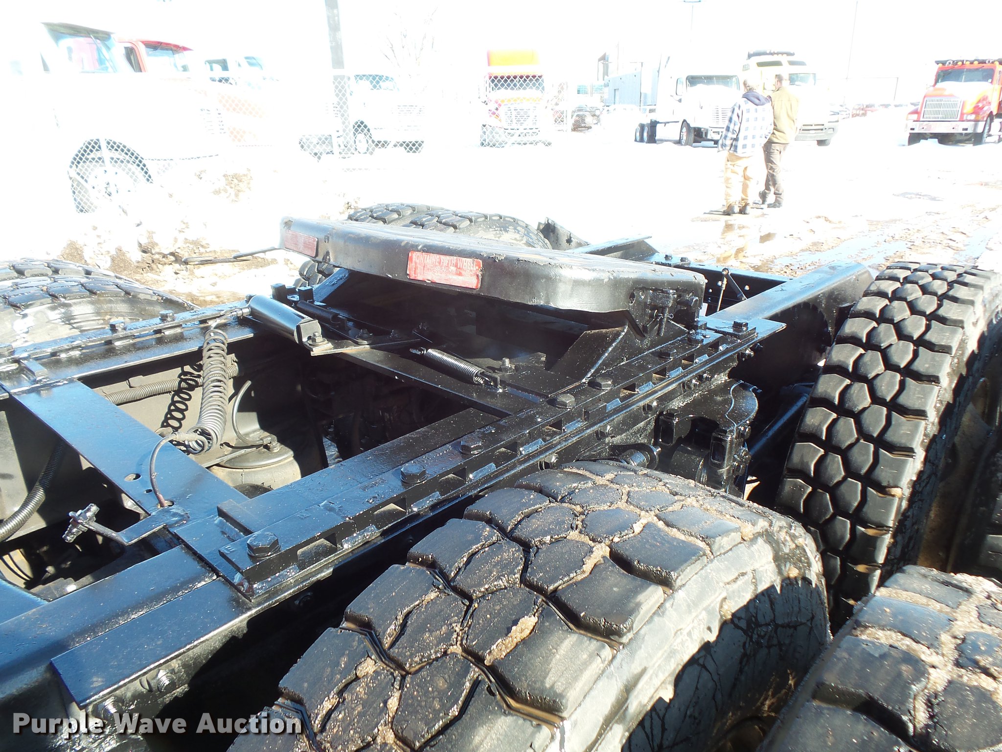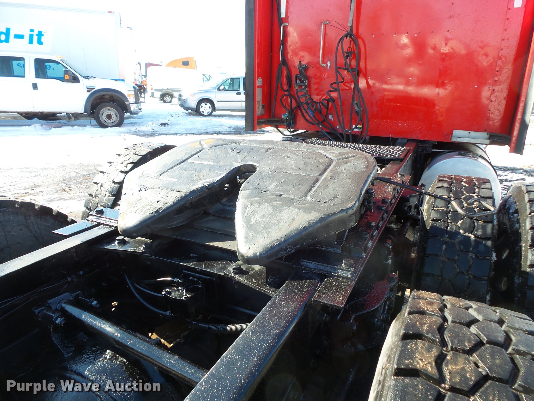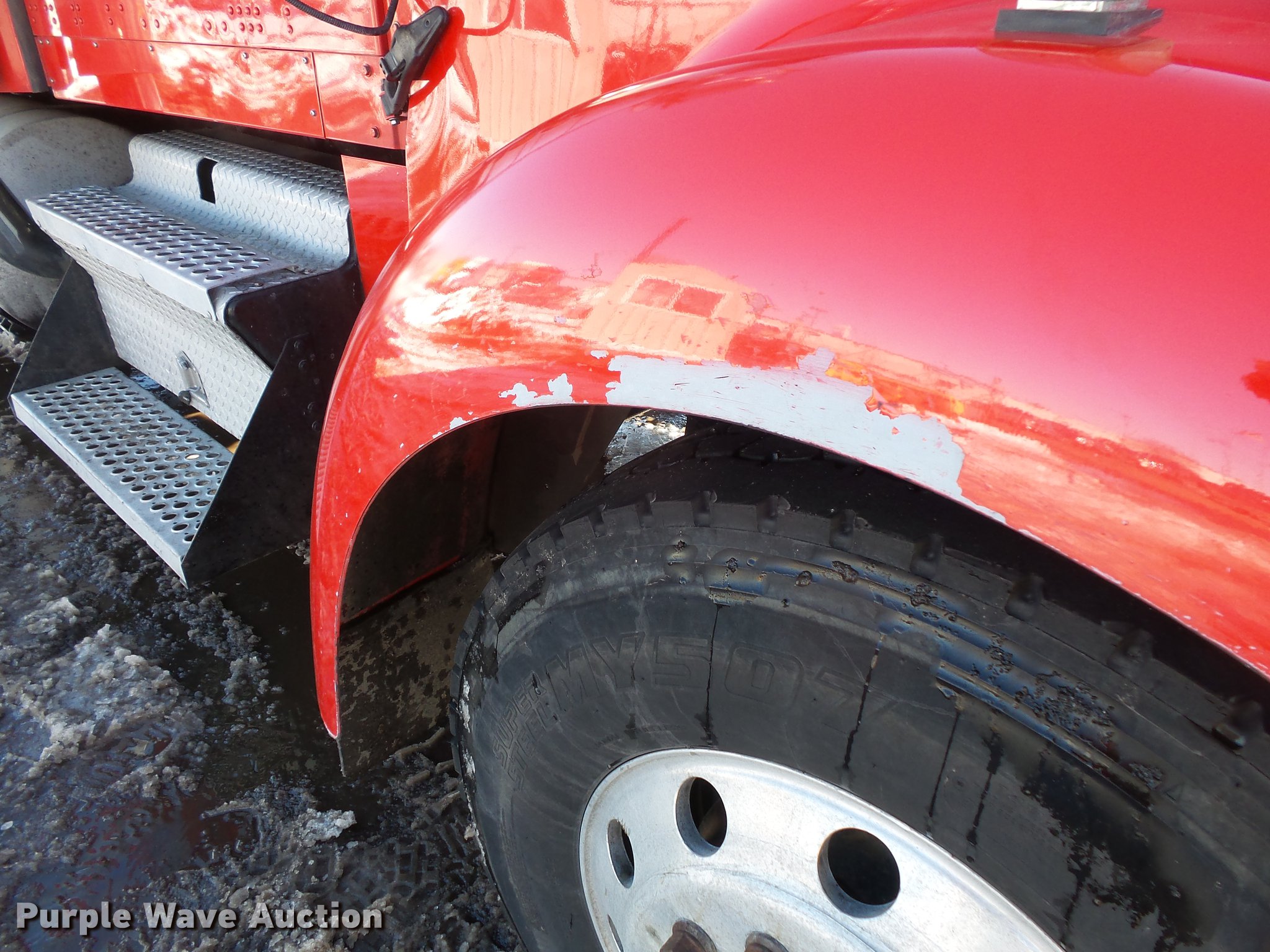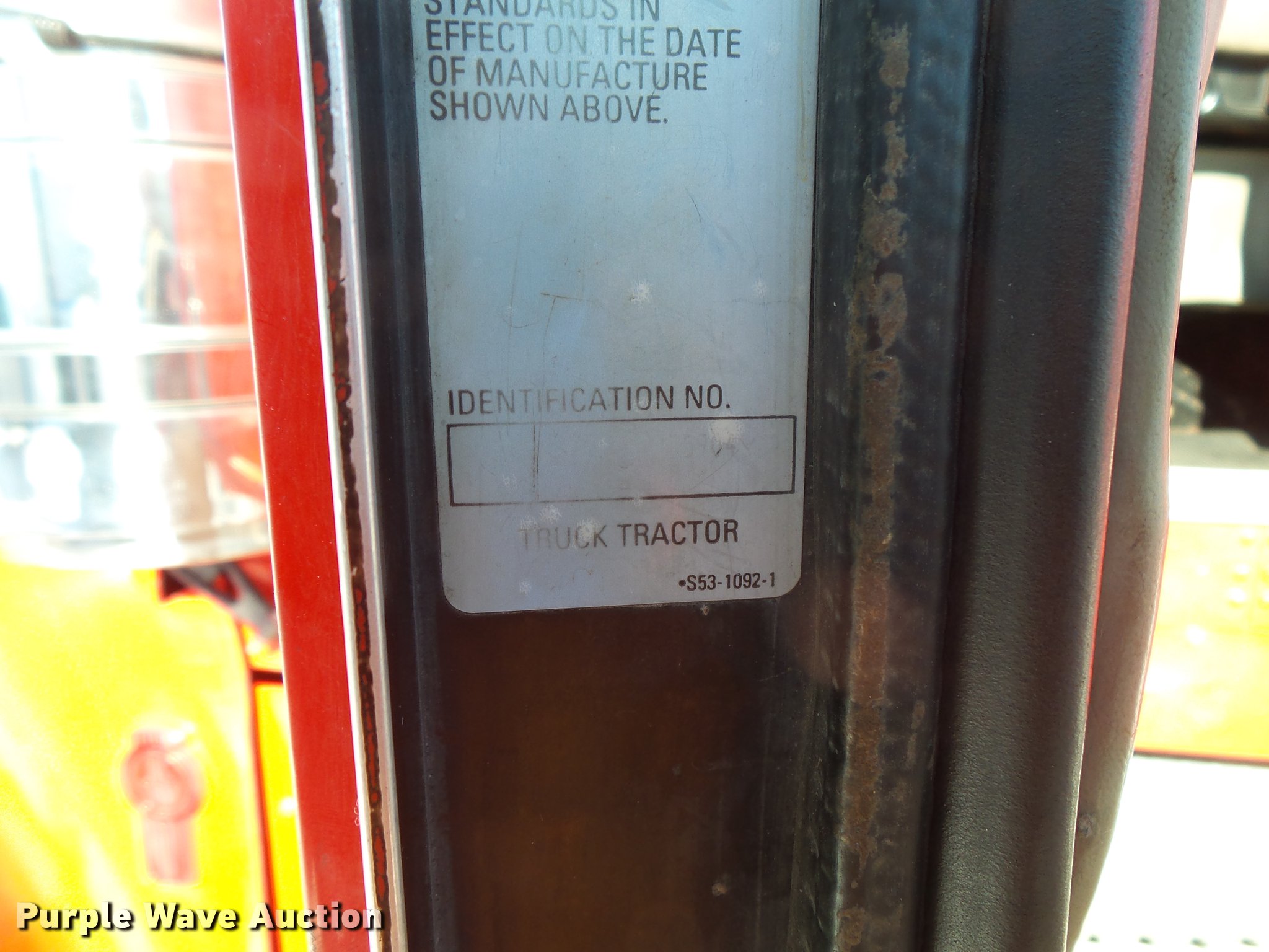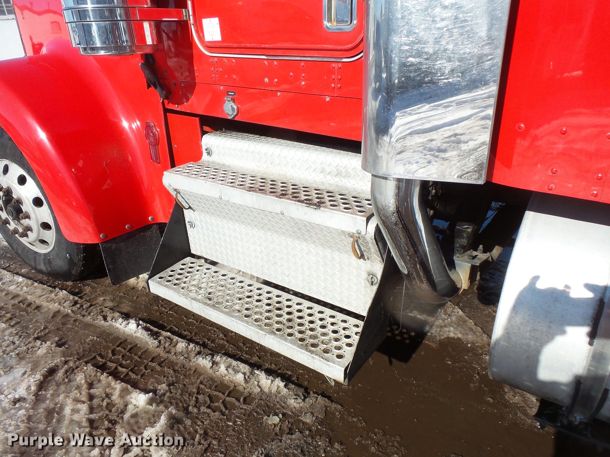 Purple Wave is selling a used Truck Tractor in Minnesota. This item is a 2005 Kenworth W900 semi truck with the following: 938,954 miles on odometer, Cummins ISX-400ST 14.9L L6 turbo diesel engine, 13 speed manual transmission, Tandem axle, Inter-axle differential lock, AC and heat, Tilt, Cruise, AM/FM/CD, Power windows and locks, Power mirrors, Air suspension seat, Air ride cab, AeroCab sleeper, Double bunk beds, Storage cabinets, Block heater, Dump valves, Exterior visor, Dual rear exhaust stacks, Steel deck plate, Air operated sliding fifth wheel plate, Dual fuel tanks, Mud flaps, Air suspension, Air brakes, Engine brake, 11R22.5 tires, GVWR 50,000 lbs