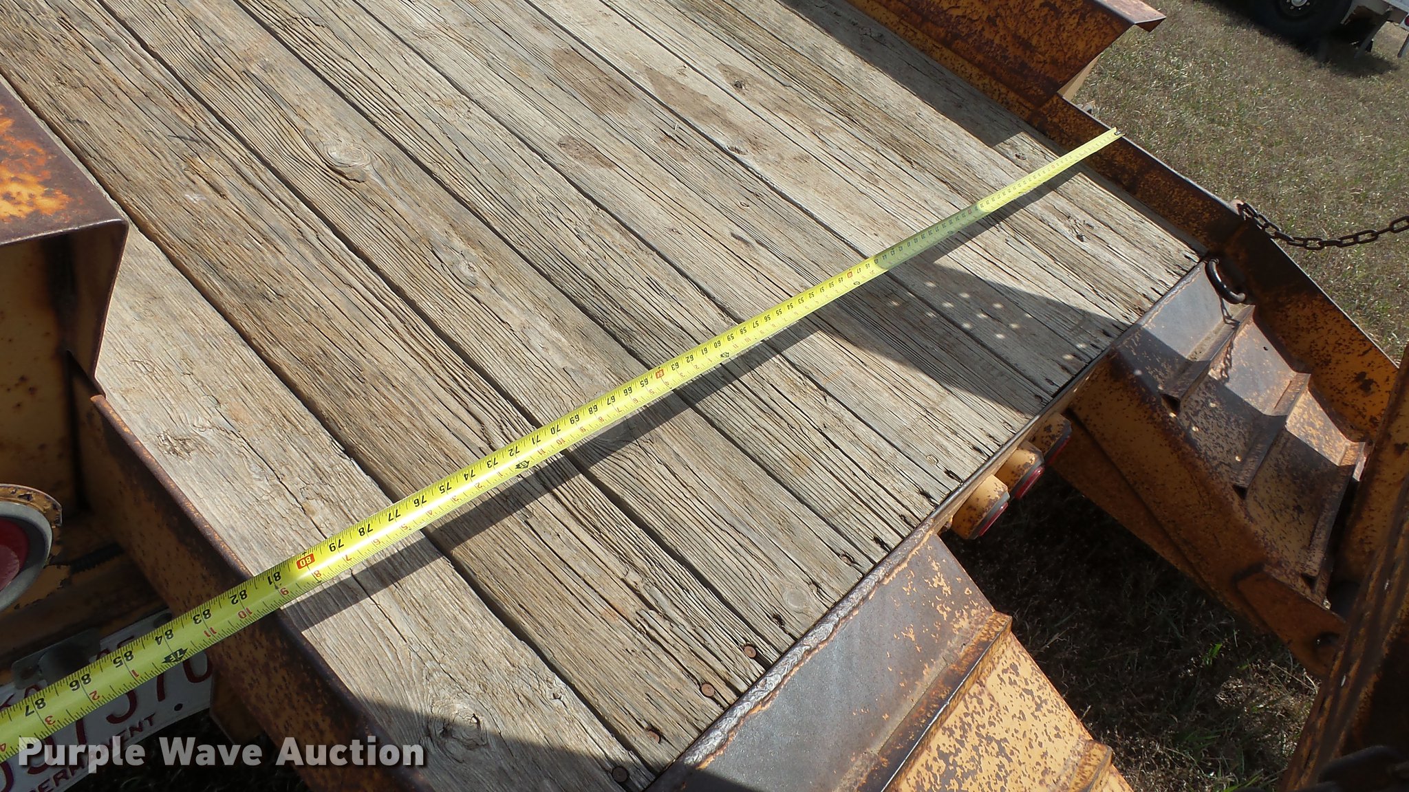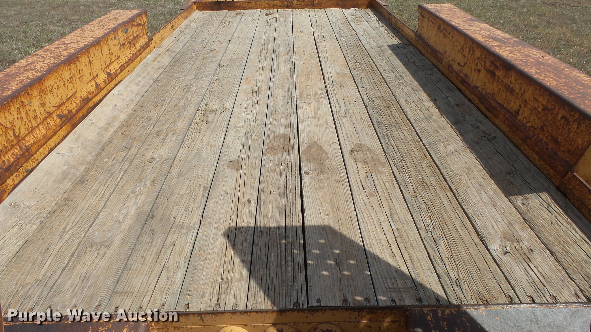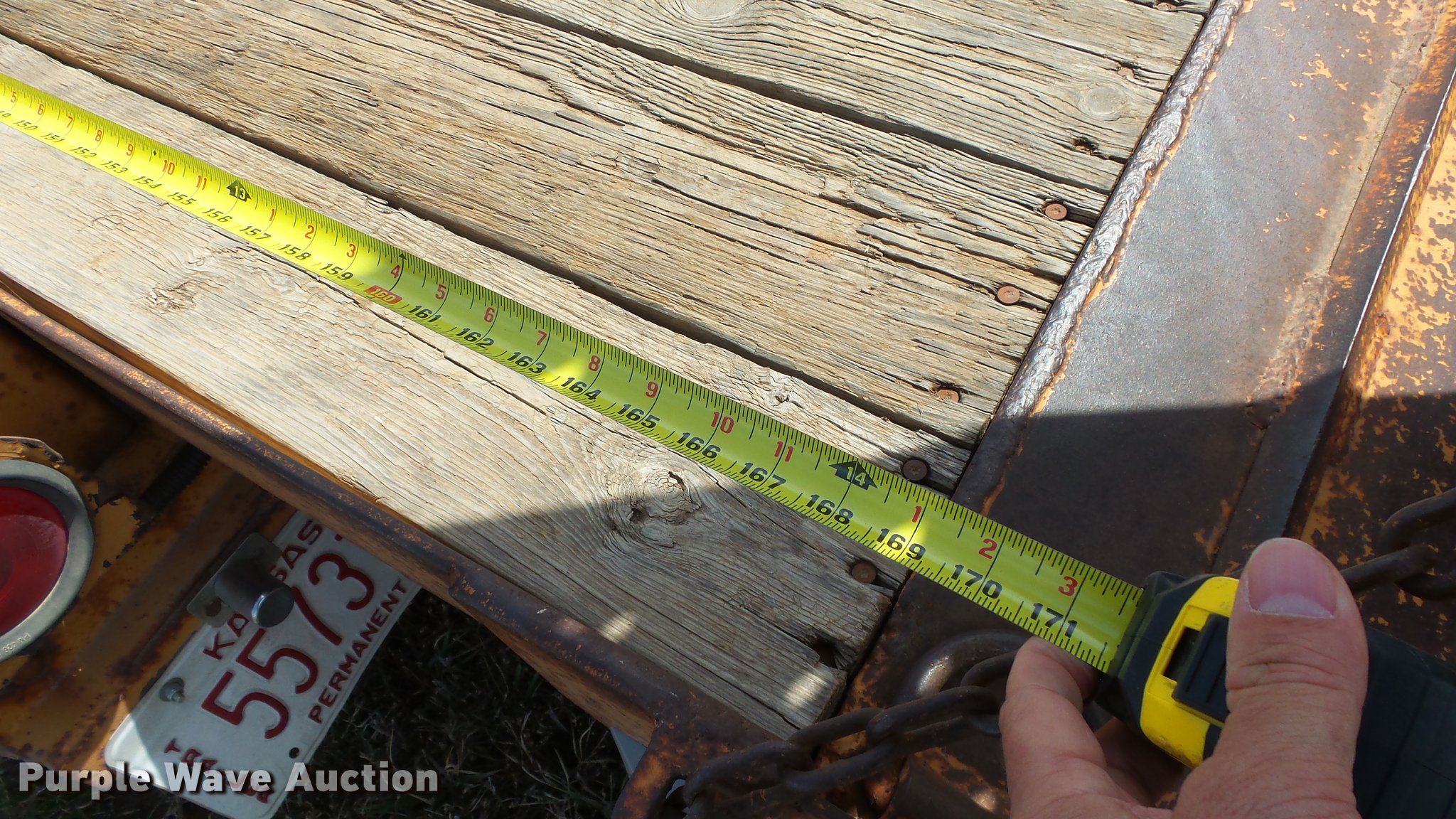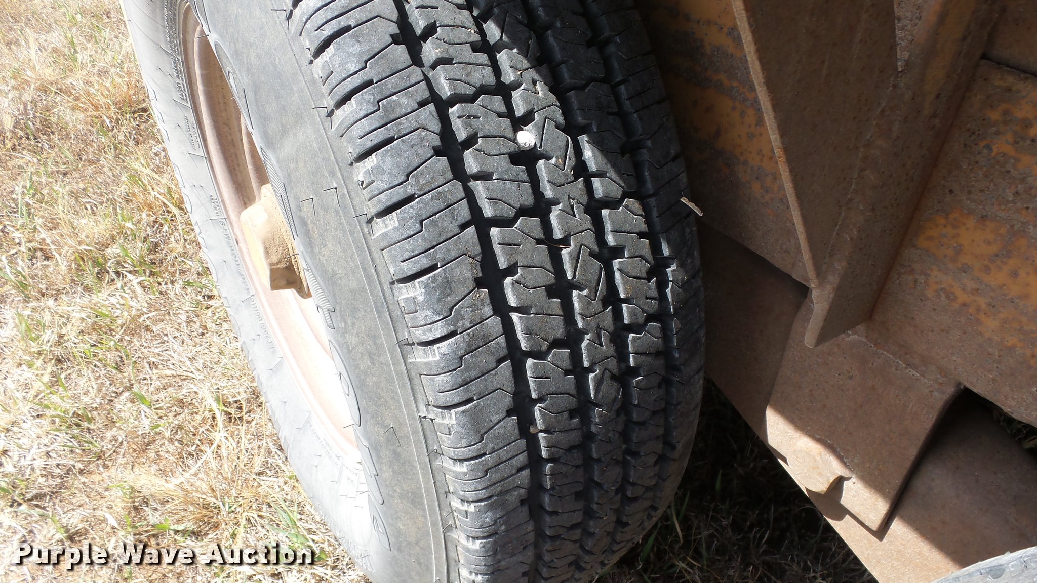 Purple Wave is selling a used Equip. Trailer in Kansas. This item is a 1999 Belshe T-1 equipment trailer with the following: 16'L x 81"W overall, 14'L wood deck, 2'L dovetail, 5'L x 13"W ramps, D-ring tie downs, Pintle hitch, Single leg landing gear, Trailer wiring, Spring suspension, Electric brakes, Tandem axle, LT235/85R16 tires, GVWR 12,000 lbs
