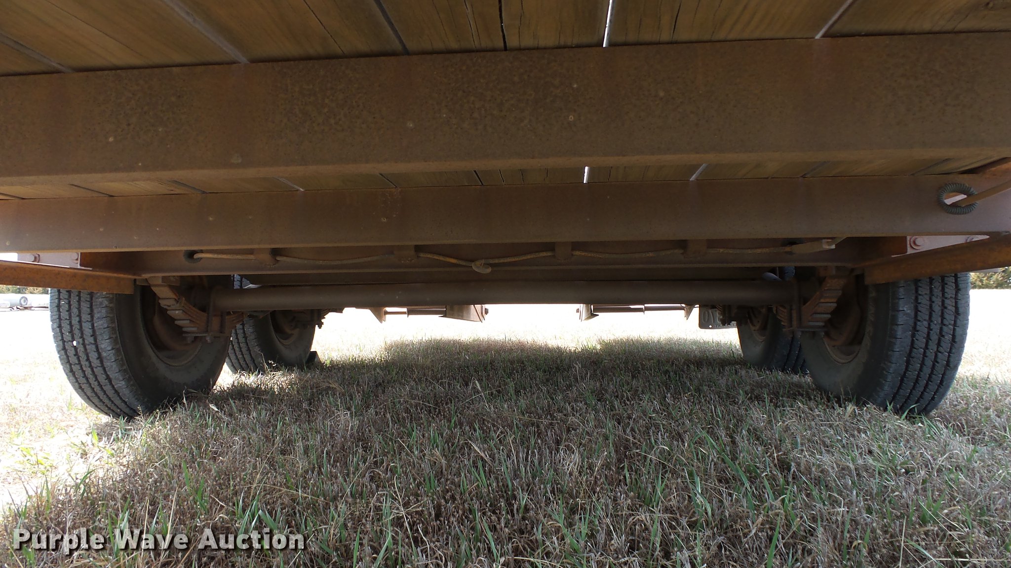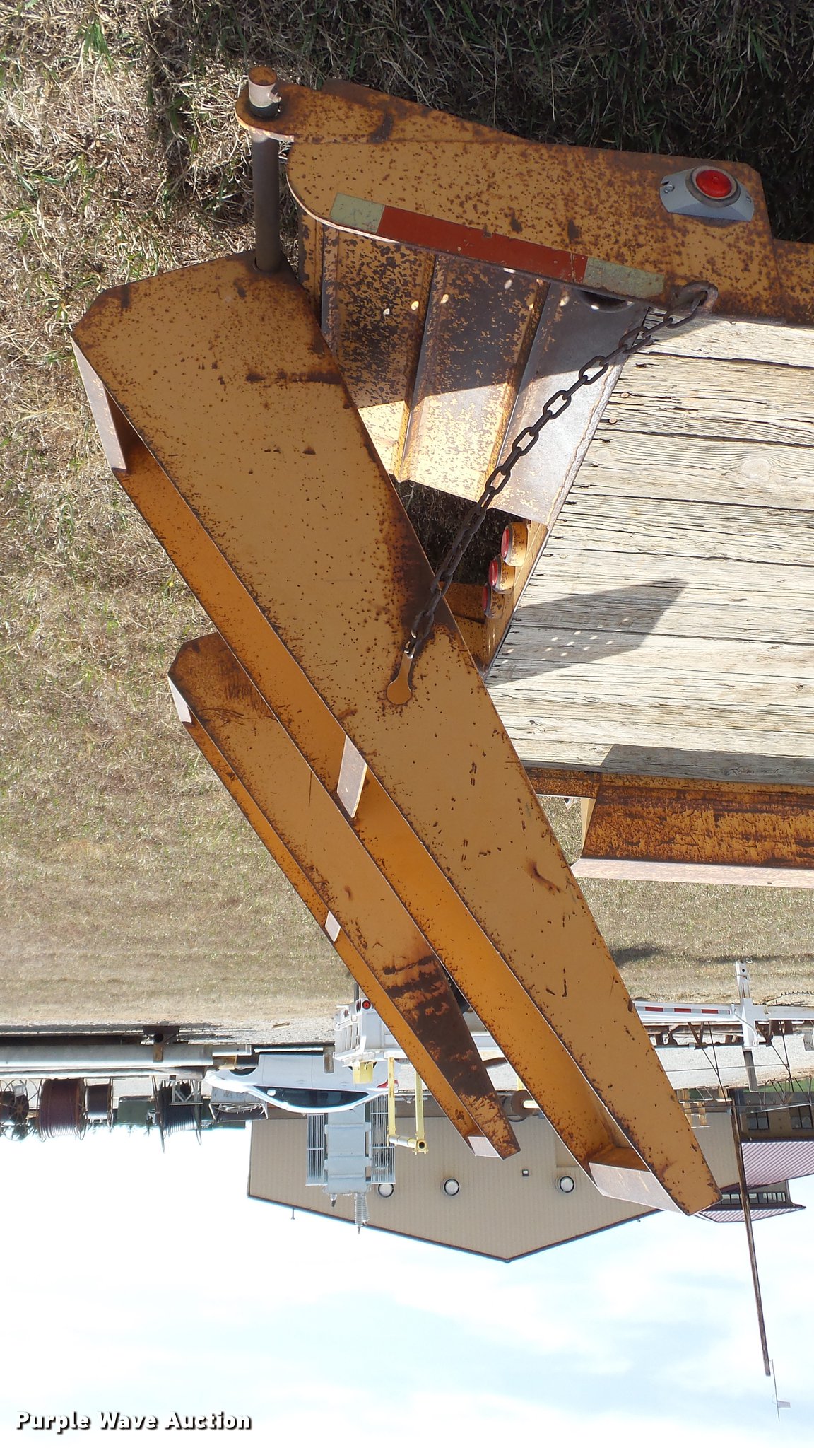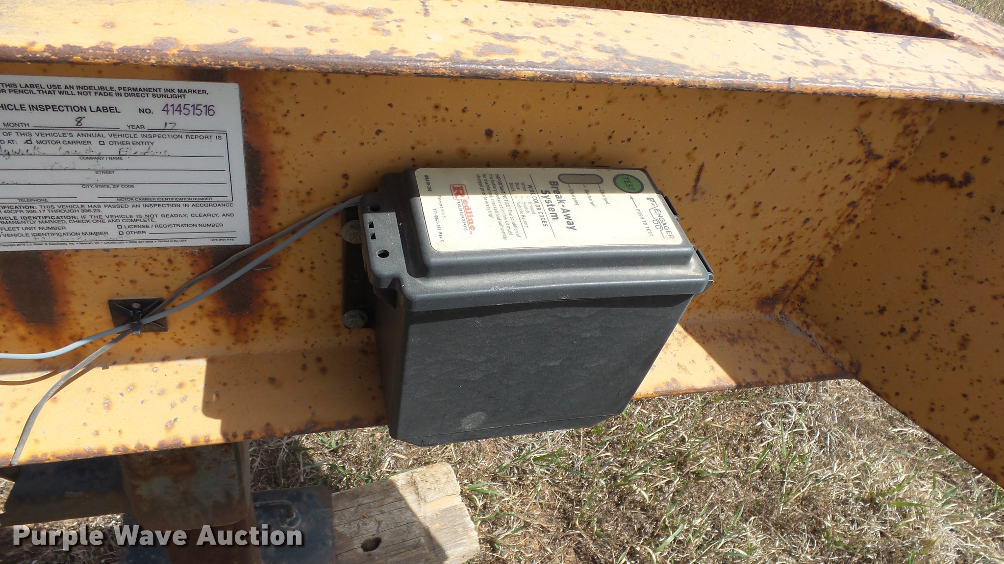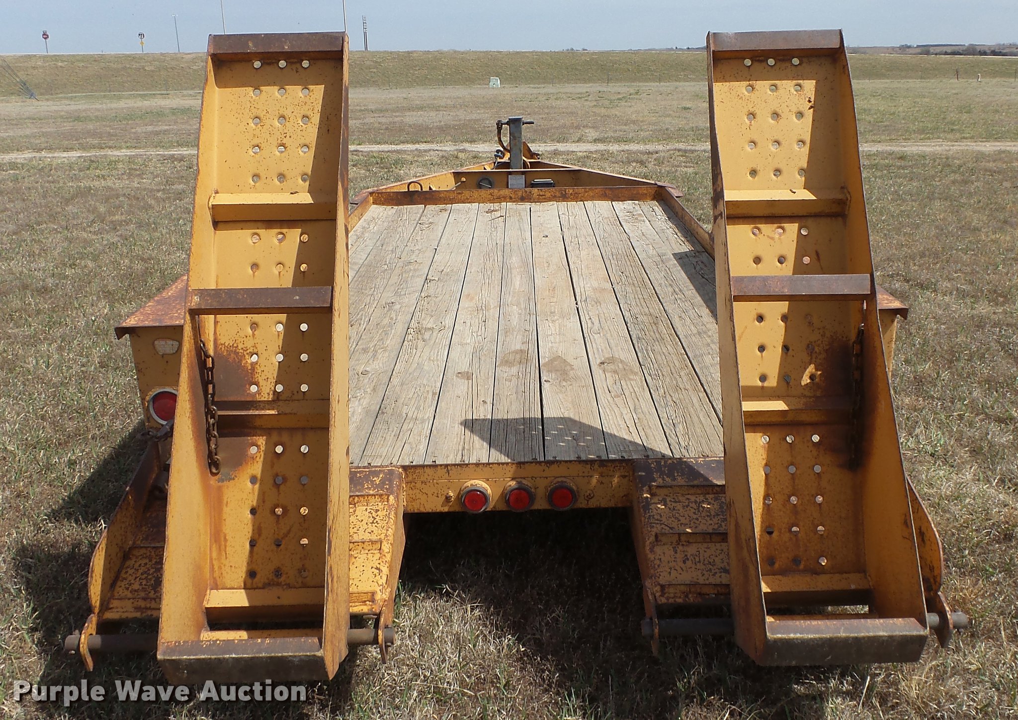 Purple Wave is selling a used Equip. Trailer in Kansas. This item is a 1999 Belshe T-1 equipment trailer with the following: 16'L x 81"W overall, 14'L wood deck, 2'L dovetail, 5'L x 13"W ramps, D-ring tie downs, Pintle hitch, Single leg landing gear, Trailer wiring, Spring suspension, Electric brakes, Tandem axle, LT235/85R16 tires, GVWR 12,000 lbs