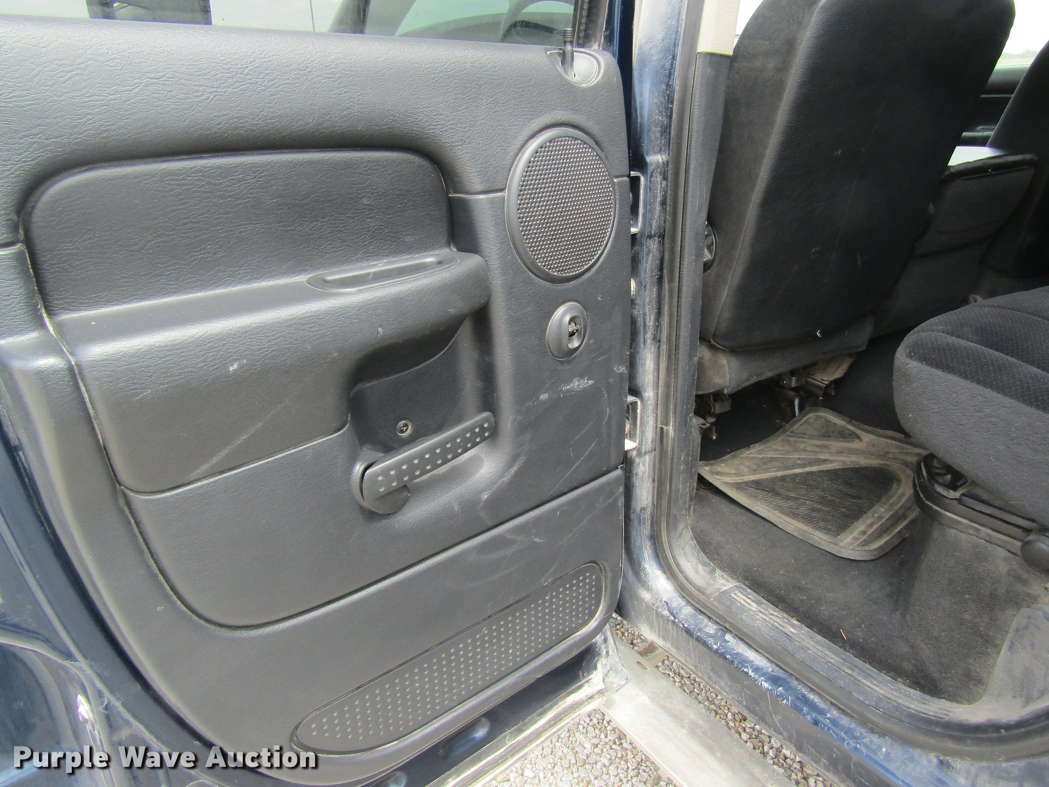 Purple Wave is selling a used 3/4 or 1 Ton Pickup or Van in Missouri. This item is a 2004 Dodge Ram 3500 Quad Cab flatbed pickup truck with the following: 243,309 miles on odometer, 5.9L L6 OHV 24V turbo diesel engine, Six speed manual transmission, Four wheel drive, AC and heat, Tilt, Cruise, AM/FM/CD, Power windows, locks, mirrors, and seat, Cloth interior, Front tow hooks, Running boards, 9'L x 8'W flatbed, Gooseneck ball, Receiver hitch, Trailer wiring, 235/80R17 tires