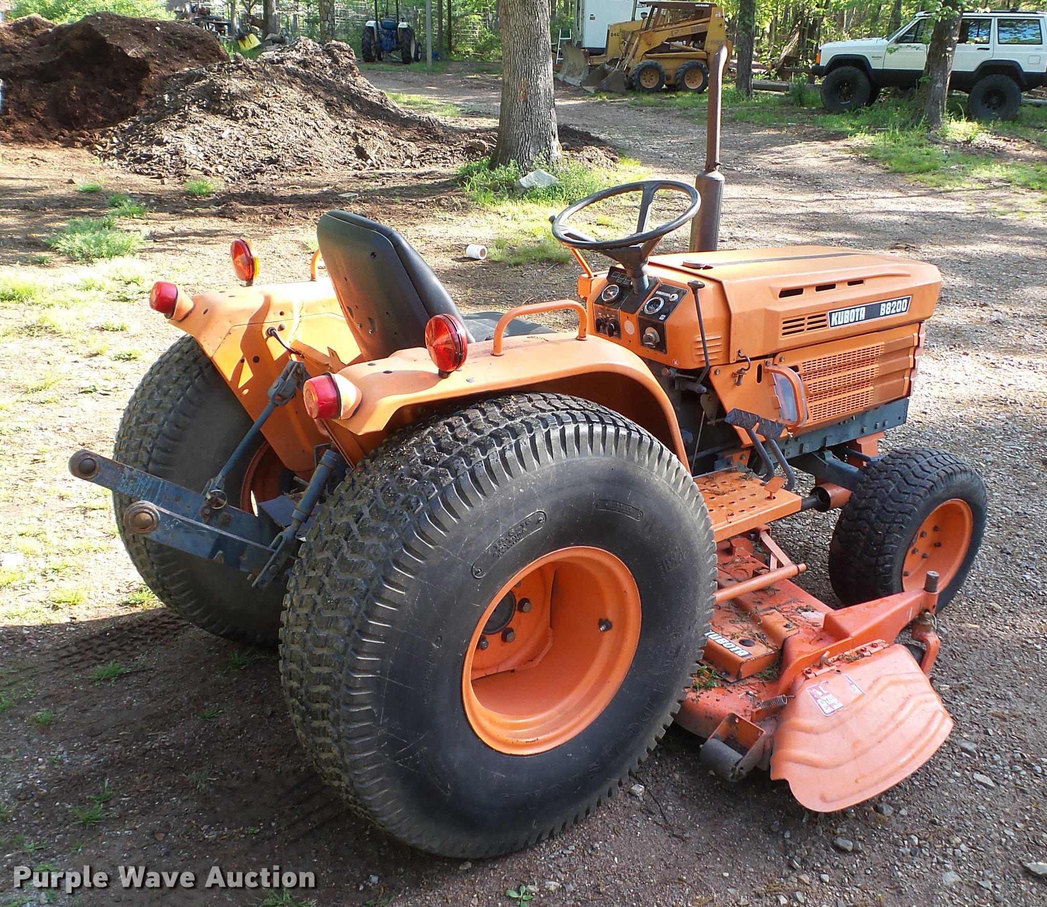 Purple Wave is selling a used Tractor in Arkansas. This item is a Kubota B8200 tractor with the following: 39 hours on meter, Kubota D950 three cylinder diesel engine, 18 HP, Manual transmission, 9F-3R gears, Three point, 540 PTO, 2" ball hitch, Belly mower, 60"W, PTO driven, 23x8.50-12 front tires, 13.6-16 rear tires
