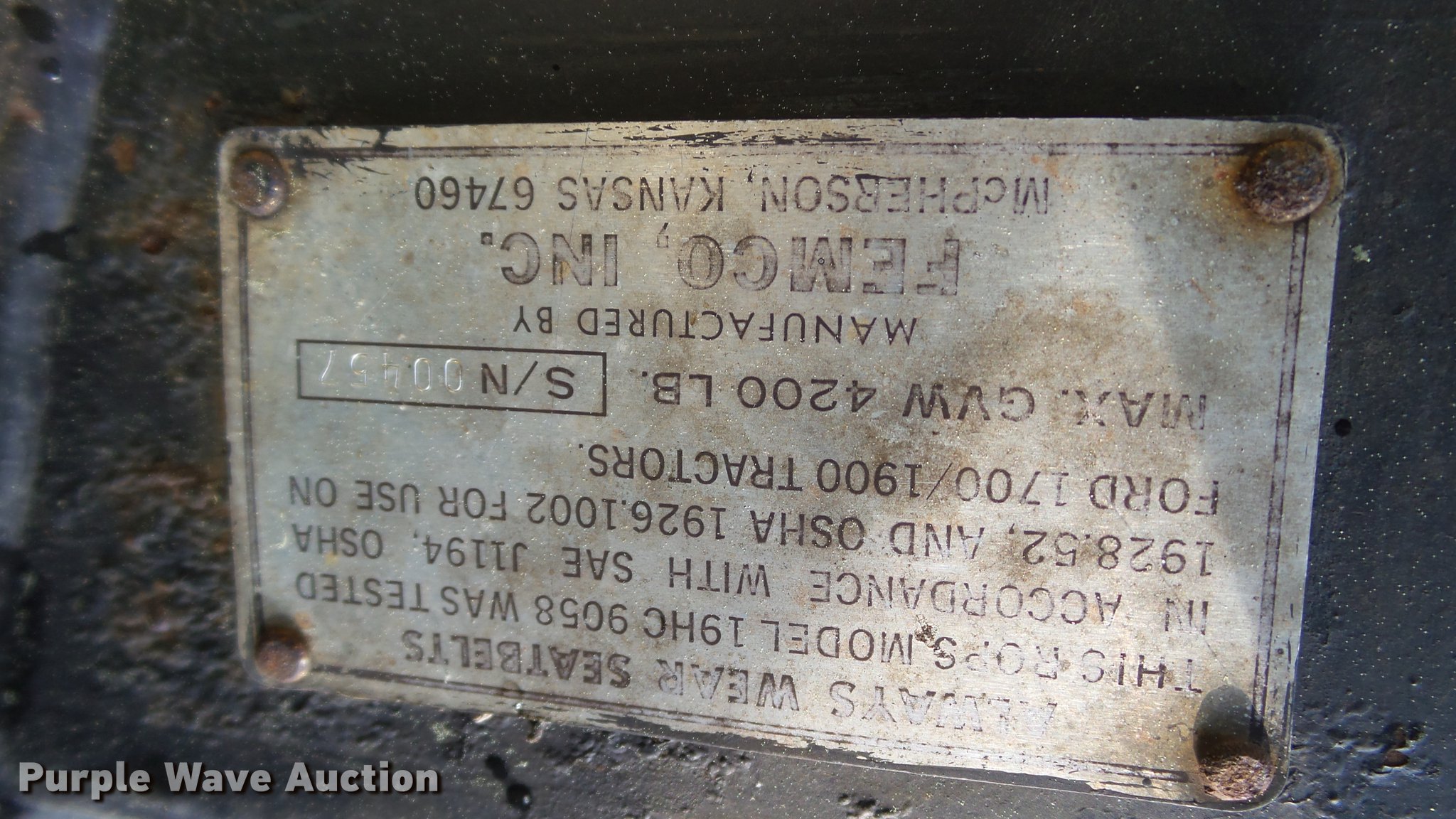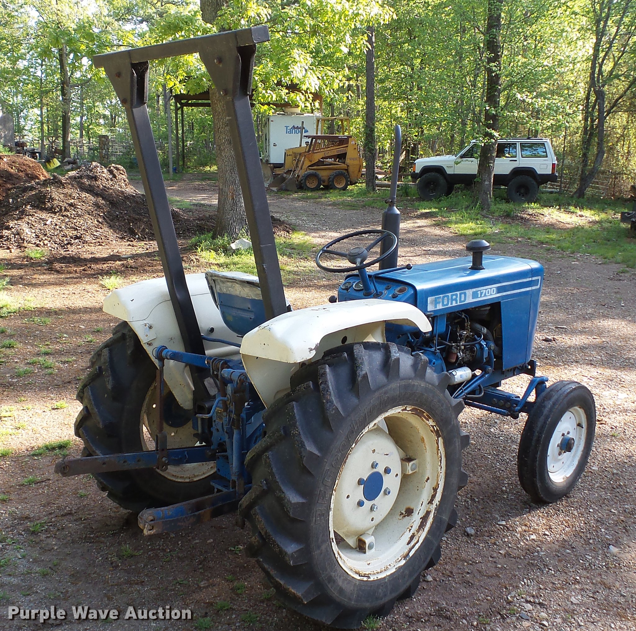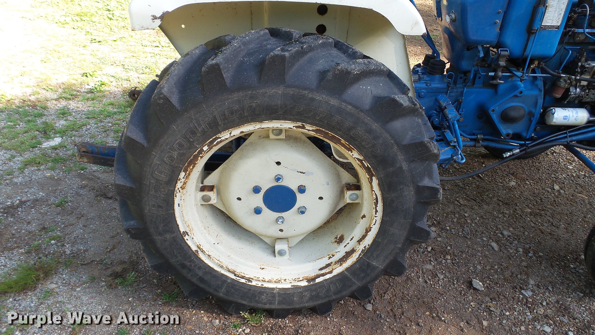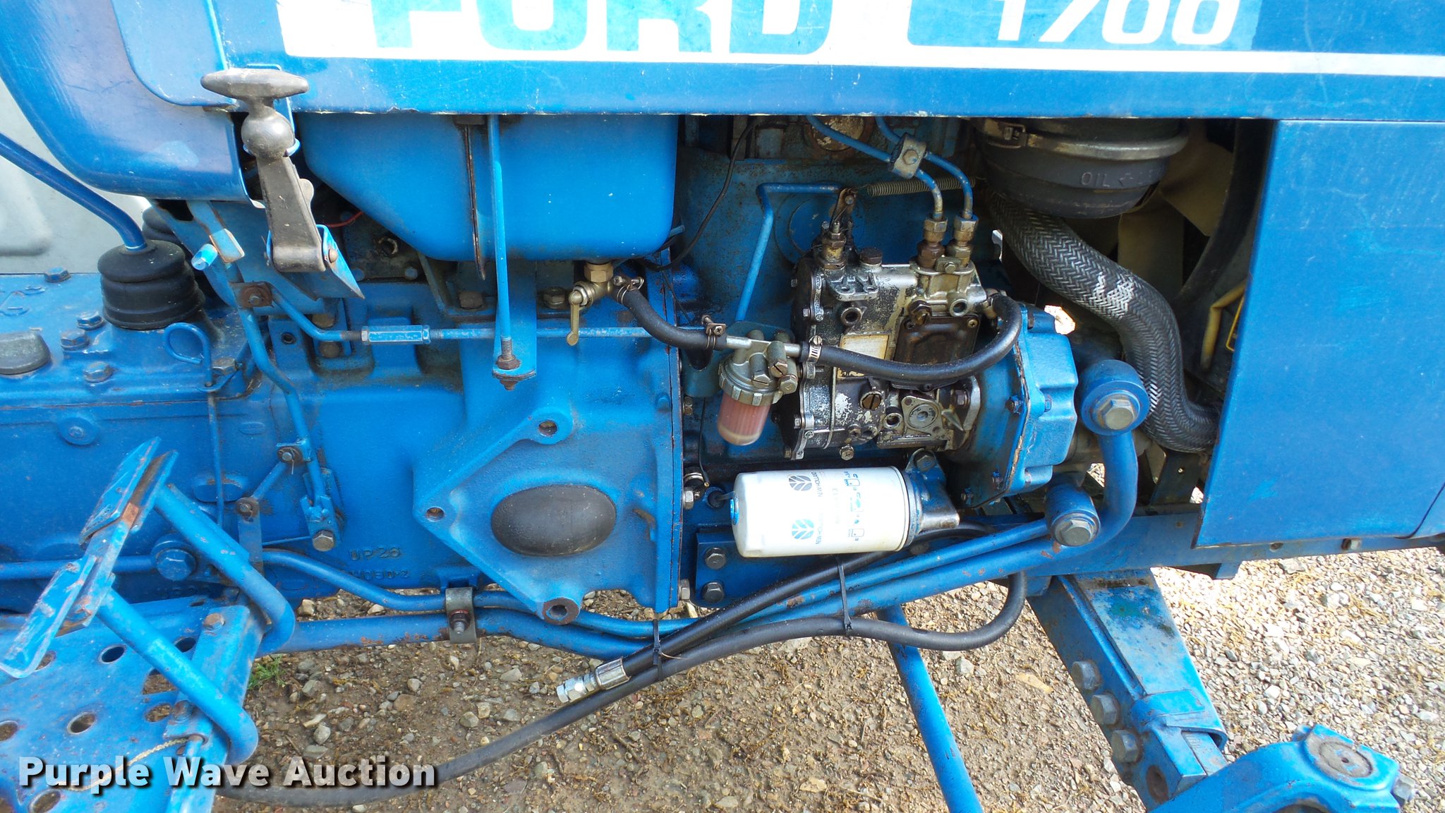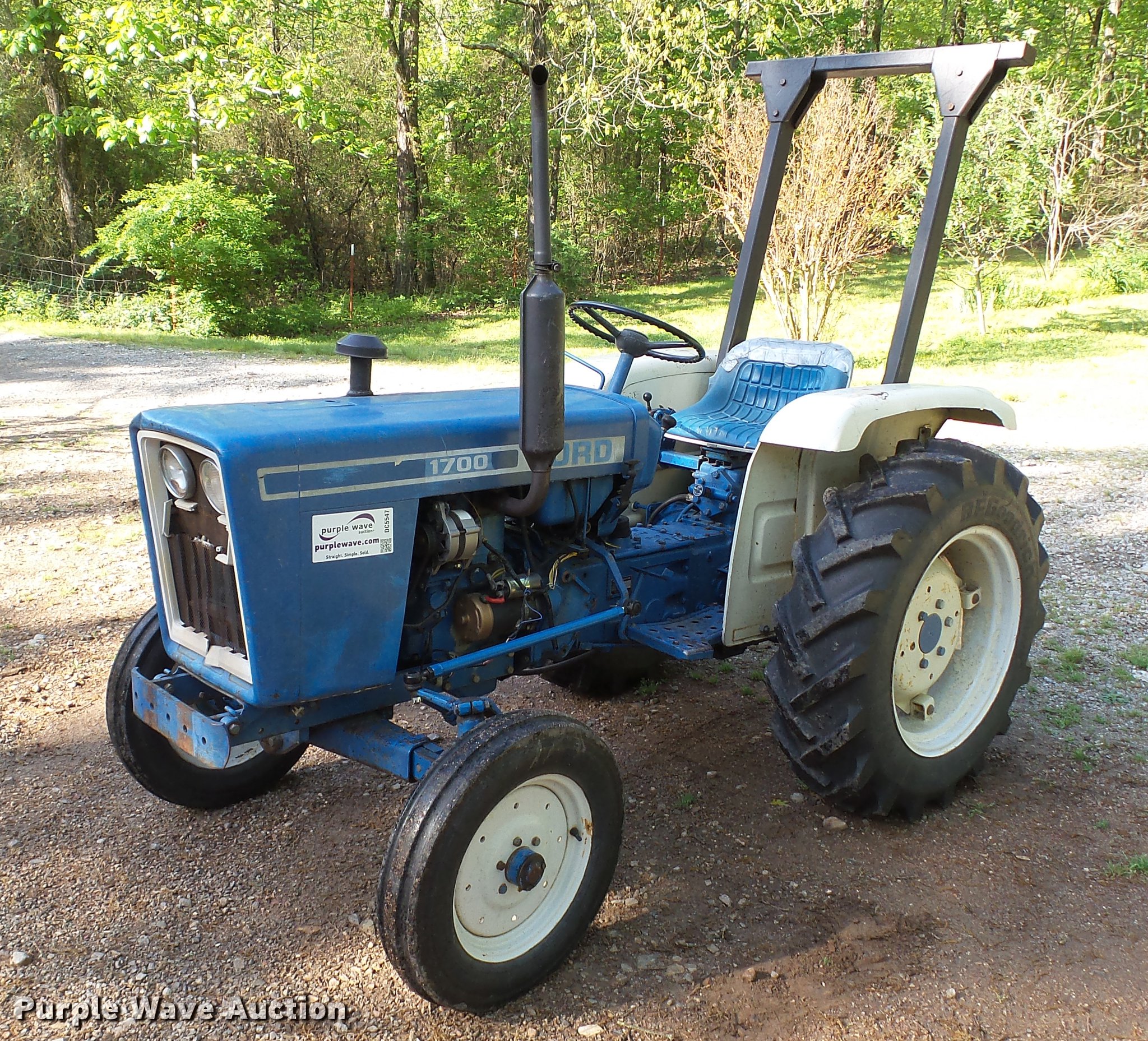 Purple Wave is selling a used Tractor in Arkansas. This item is a Ford 1700 tractor with the following: 1,133 hours on meter, Two cylinder diesel engine, Serial 50448, Manual transmission, 12F-4R gears, ROPS bar, Serial 00457, Three point, 540 PTO, 5.00-15 front tires, 11.2-24 rear tires, Serial U-712724