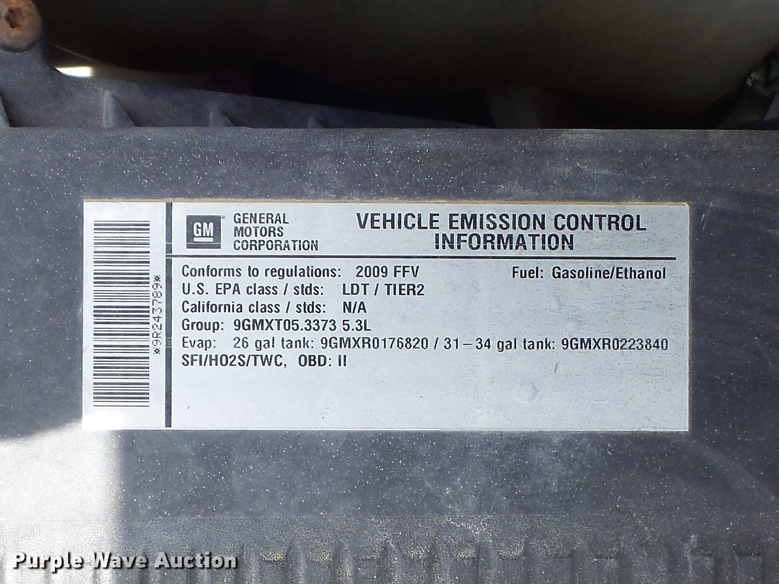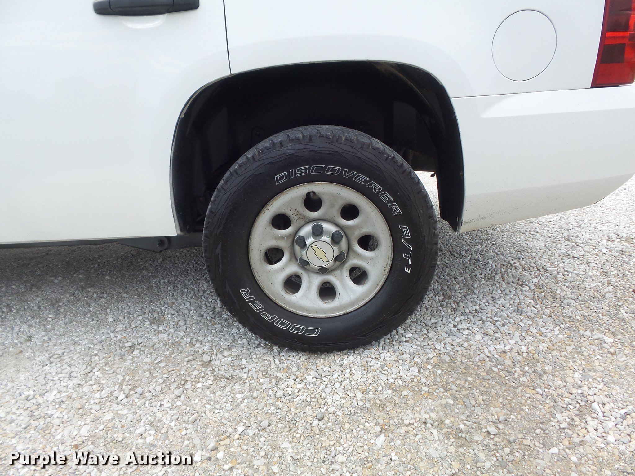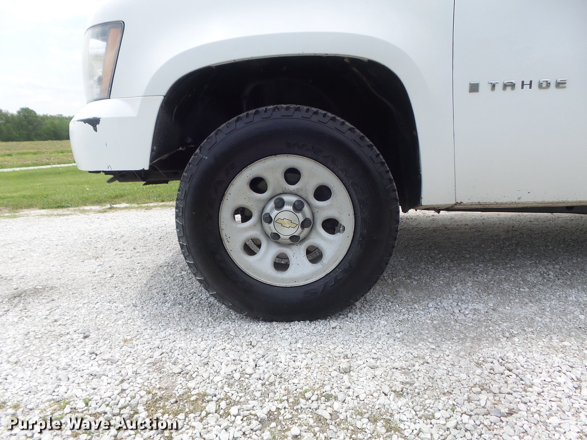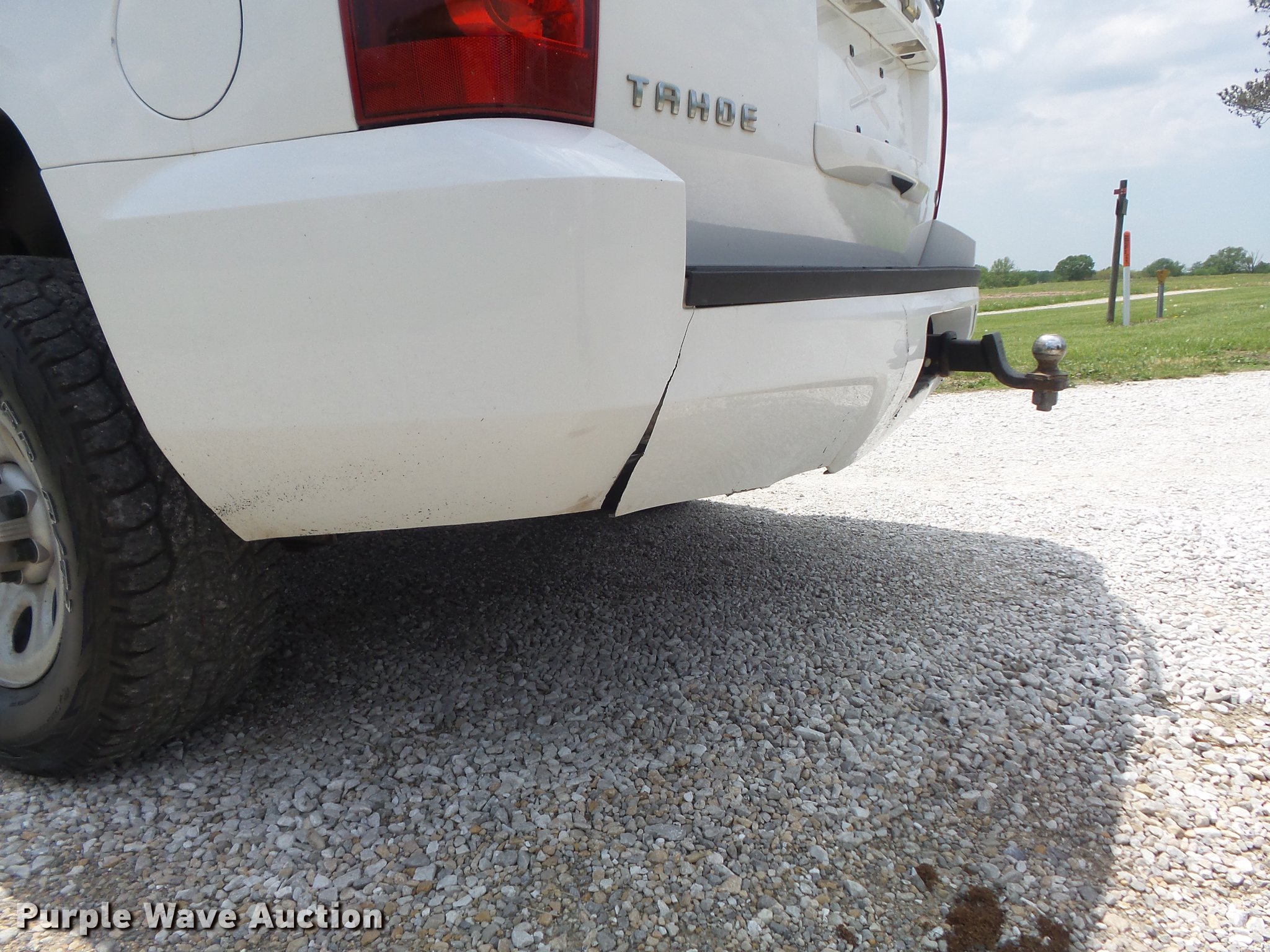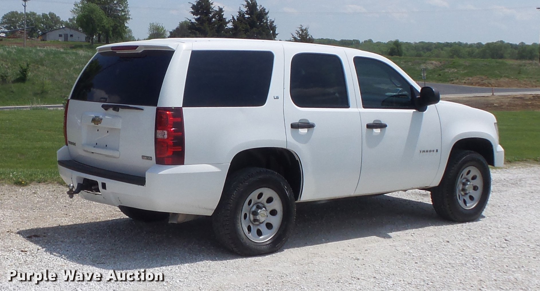 Purple Wave is selling a used Passenger Vehicle in Missouri. This item is a 2009 Chevrolet Tahoe LS SUV with the following: 102,515 miles on odometer, 5.3L V8 OHV 16V FFV gas engine, Automatic transmission, Four wheel drive, AC and heat, Tilt, Cruise, AM/FM/CD, Power windows, locks, mirrors, and seat, Cloth front interior, Vinyl rear interior, Receiver hitch, Trailer wiring, P265/70R17 tires, TPMS light on