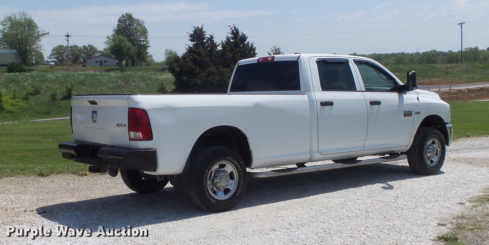 Purple Wave is selling a used 3/4 or 1 Ton Pickup or Van in Missouri. This item is a 2012 Dodge Ram 2500HD Quad Cab pickup truck with the following: 107,056 miles on odometer, 5.7L V8 OHV 16V gas engine, Automatic transmission, Four wheel drive, AC and heat, Tilt, Cruise, AM/FM/CD, Power windows, locks, and mirrors, Cloth interior, Front tow hooks, Running boards, Long bed, Receiver hitch, Trailer wiring, LT265/70R17 tires, Check engine light on, Hail damage, Left running board mount damaged