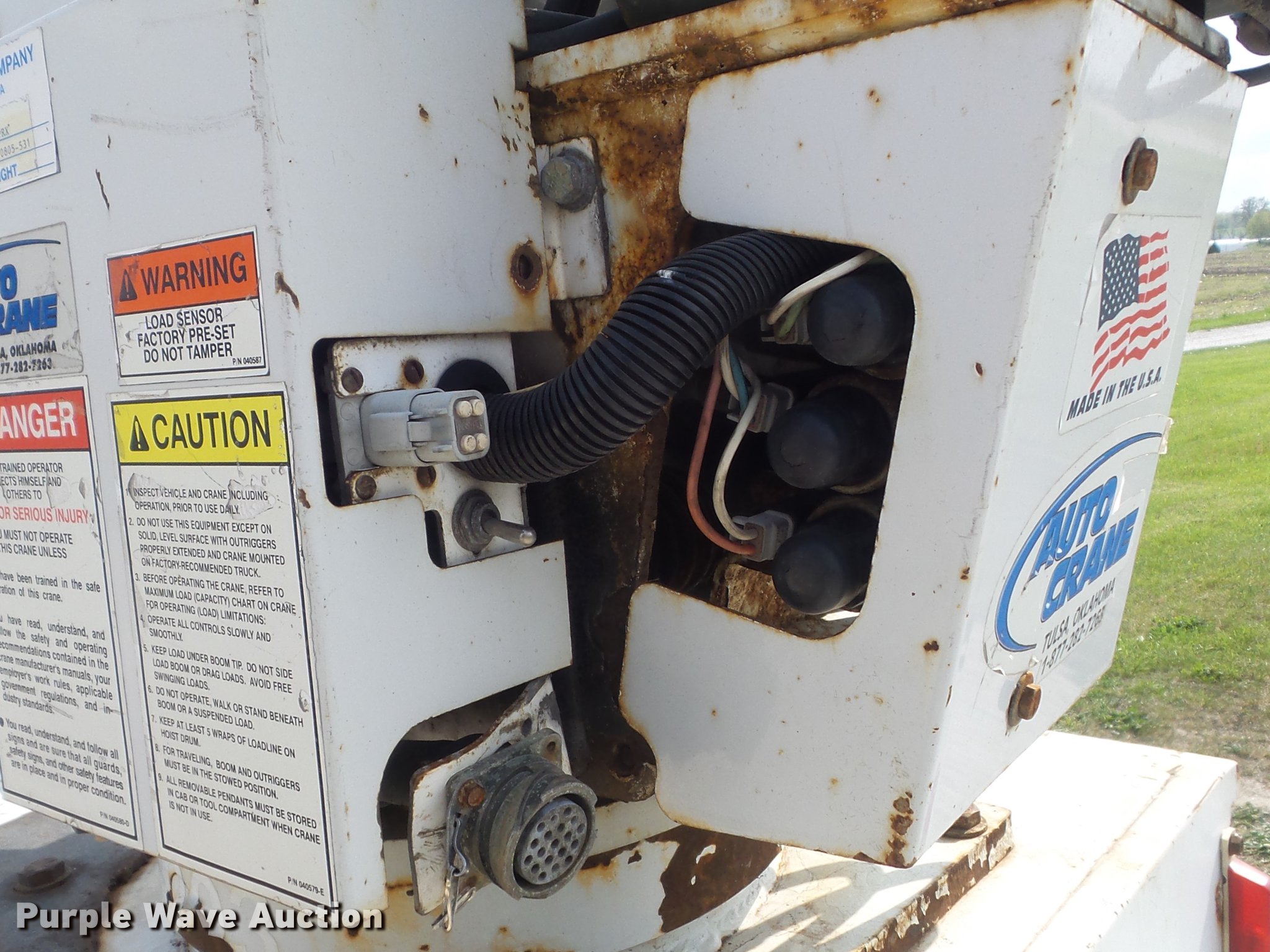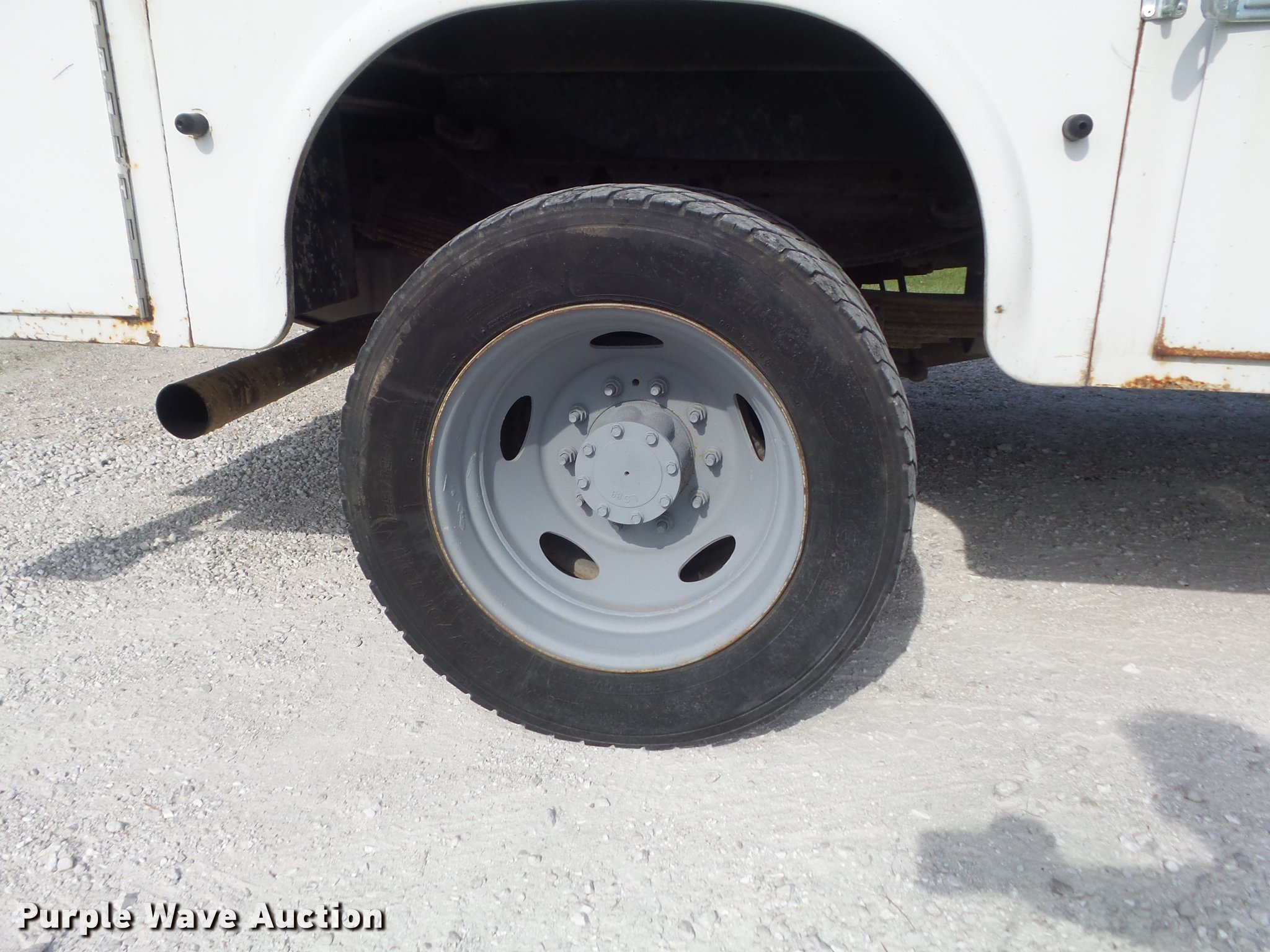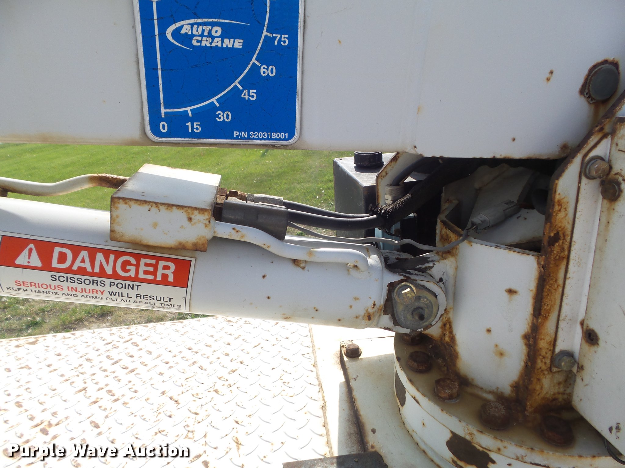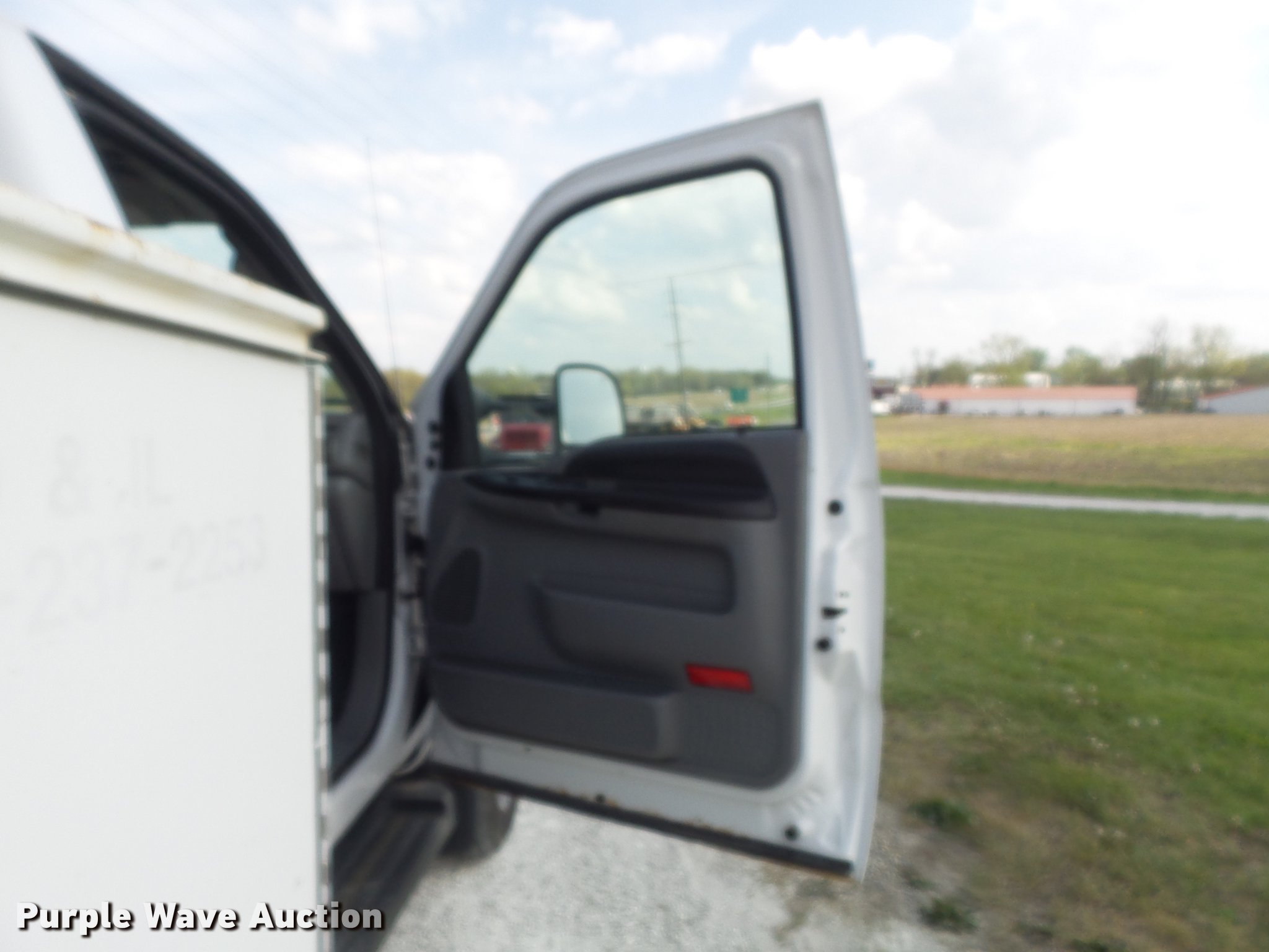 Purple Wave is selling a used Service Truck in Missouri. This item is a 2006 Ford F450 Super Duty XL utility truck with crane with the following: 308,254 miles on odometer, 5,495 hours on meter, 6.0L V8 OHV 32V turbo diesel engine, Automatic transmission, Single axle, AC and heat, AM/CD/cassette, Power windows, locks, and mirrors, Auxiliary controls, Front tow hooks, Knapheide 6108D54J utility bed, 9'L, Shelving, Auto Crane 3203PRX crane, 15' boom length, 3,200 lbs max lift capacity, (2) outriggers, Remote control cable missing, Unknown operating condition, Single fuel tank, Receiver hitch, Trailer wiring, 141" wheelbase, 225/70R19.5 tires, GVWR 16,000 lbs