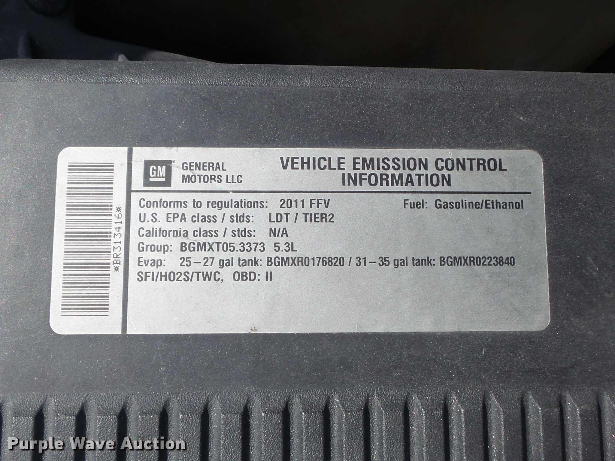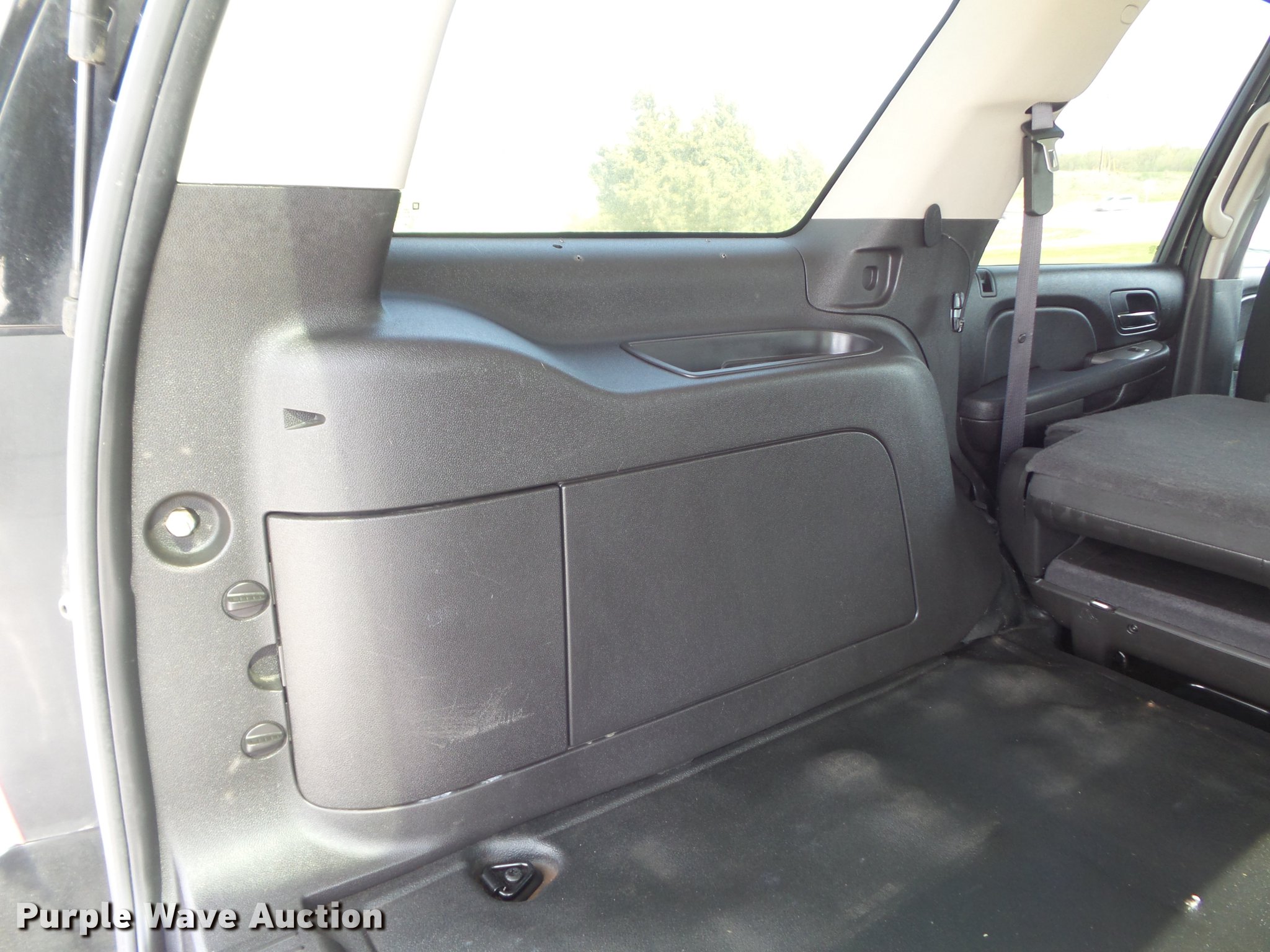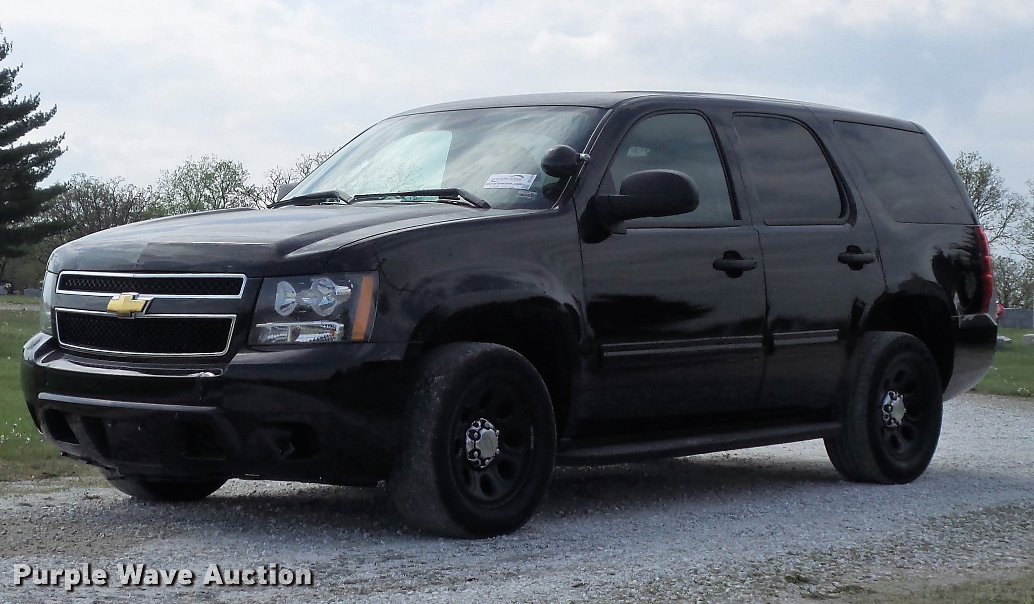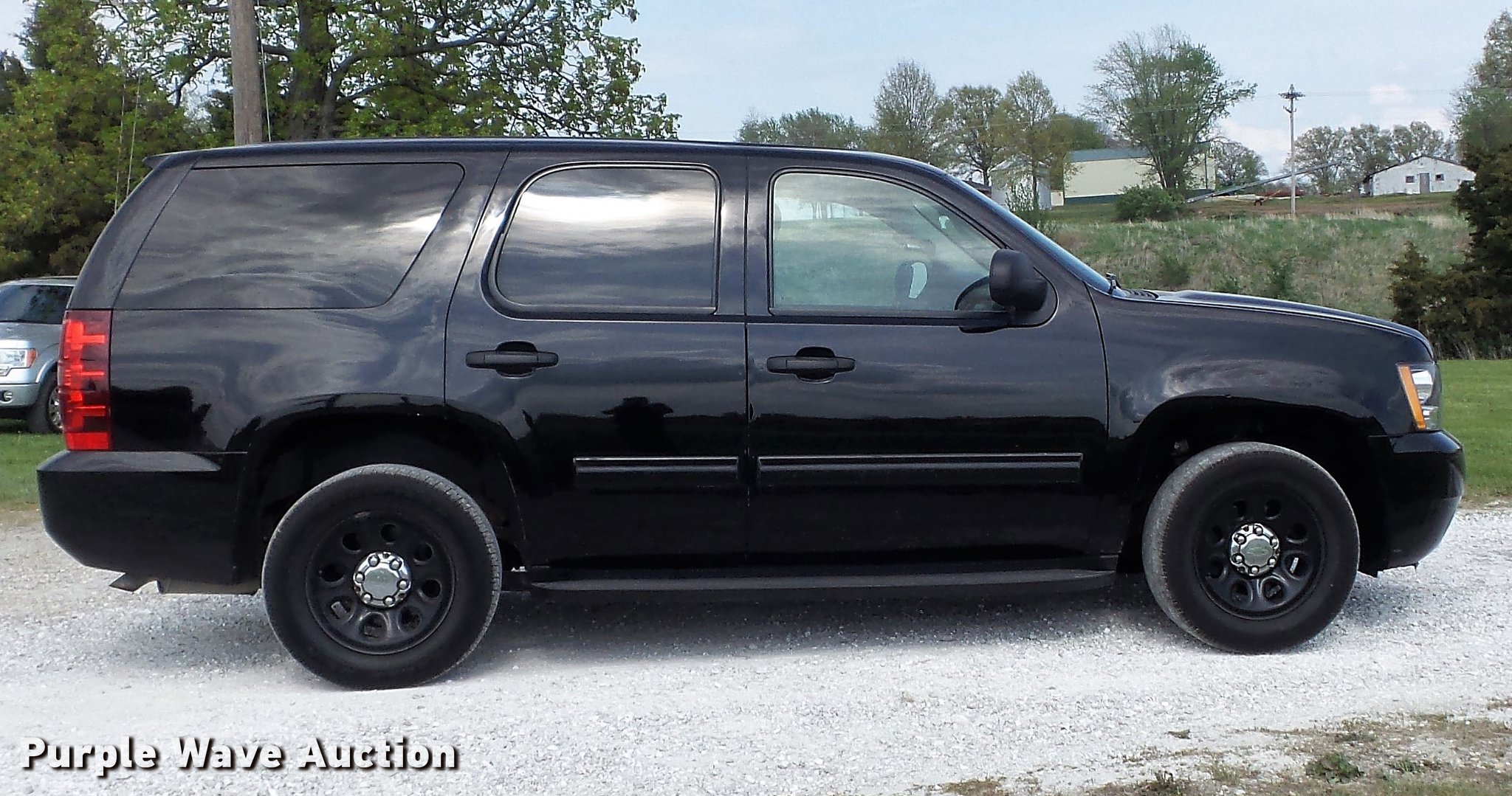 Purple Wave is selling a used Passenger Vehicle in Missouri. This item is a 2011 Chevrolet Tahoe Police SUV with the following: 116,017 miles on odometer, 5.3L V8 OHV 16V FFV gas engine, Automatic transmission, AC and heat, Tilt, Cruise, AM/FM/CD, Power windows, locks, mirrors, and seat, Cloth interior, Front tow hooks, Running boards, P265/60R17 tires
