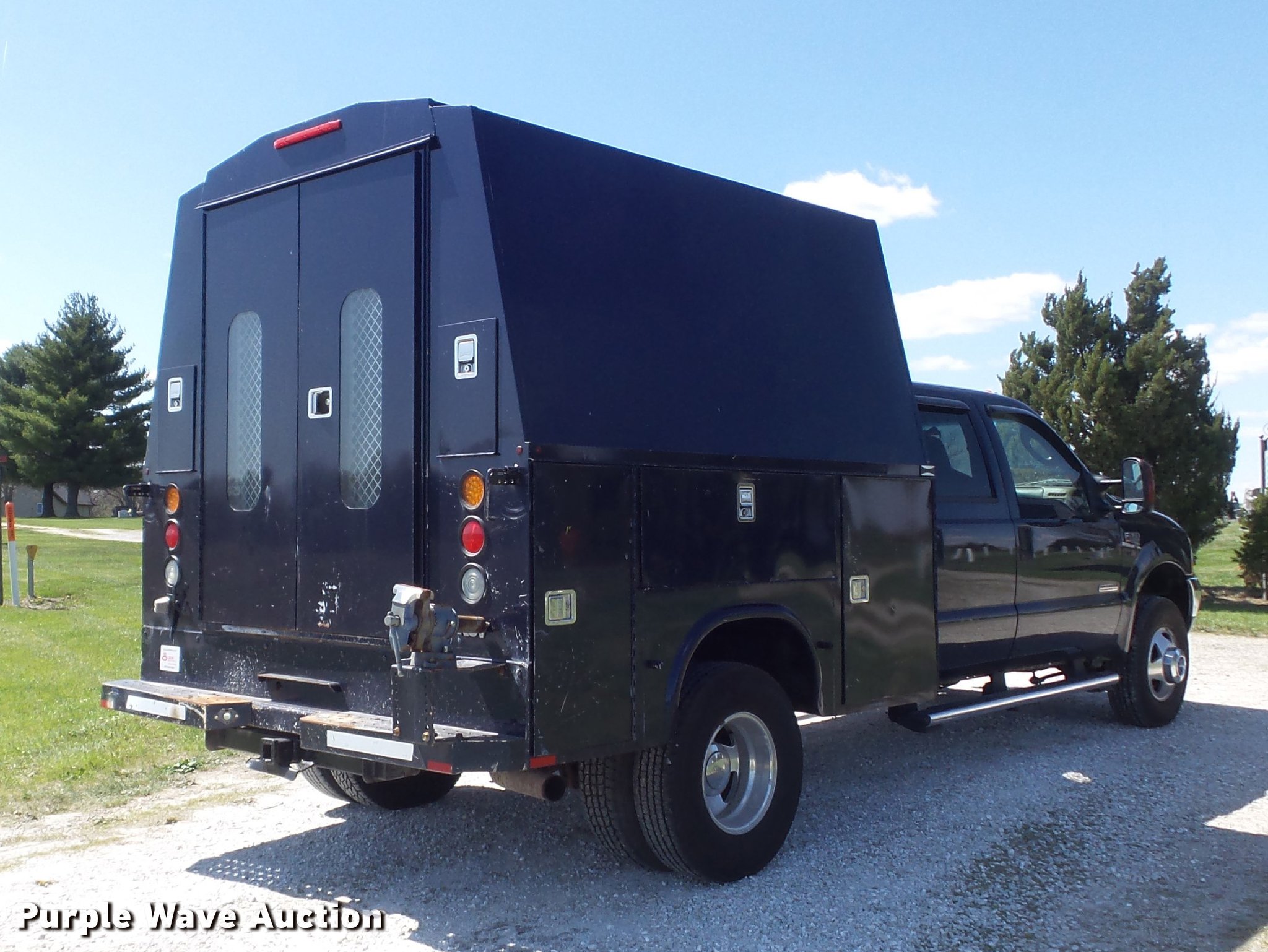 Purple Wave is selling a used 3/4 or 1 Ton Pickup or Van in Missouri. This item is a 2004 Ford F350 Super Duty Lariat Crew Cab utility bed pickup truck with the following: 146,515 miles on odometer, 6.0L V8 OHV 32V turbo diesel engine, Automatic transmission, Four wheel drive, AC and heat, Tilt, Cruise, AM/FM/CD, Power windows, locks, mirrors, and seats, Heated seats, Leather interior, Power sunroof, Brake controller, Fog lights, Front tow hooks, Running boards, Block heater, Knapheide KC96H2094J Kuvcc body, 8'L, Mounted vise, Interior shelving, Double panel rear doors, (2) cargo dome lights, Walk-in enclosed storage, Receiver hitch, Trailer wiring, LT235/85R16 tires