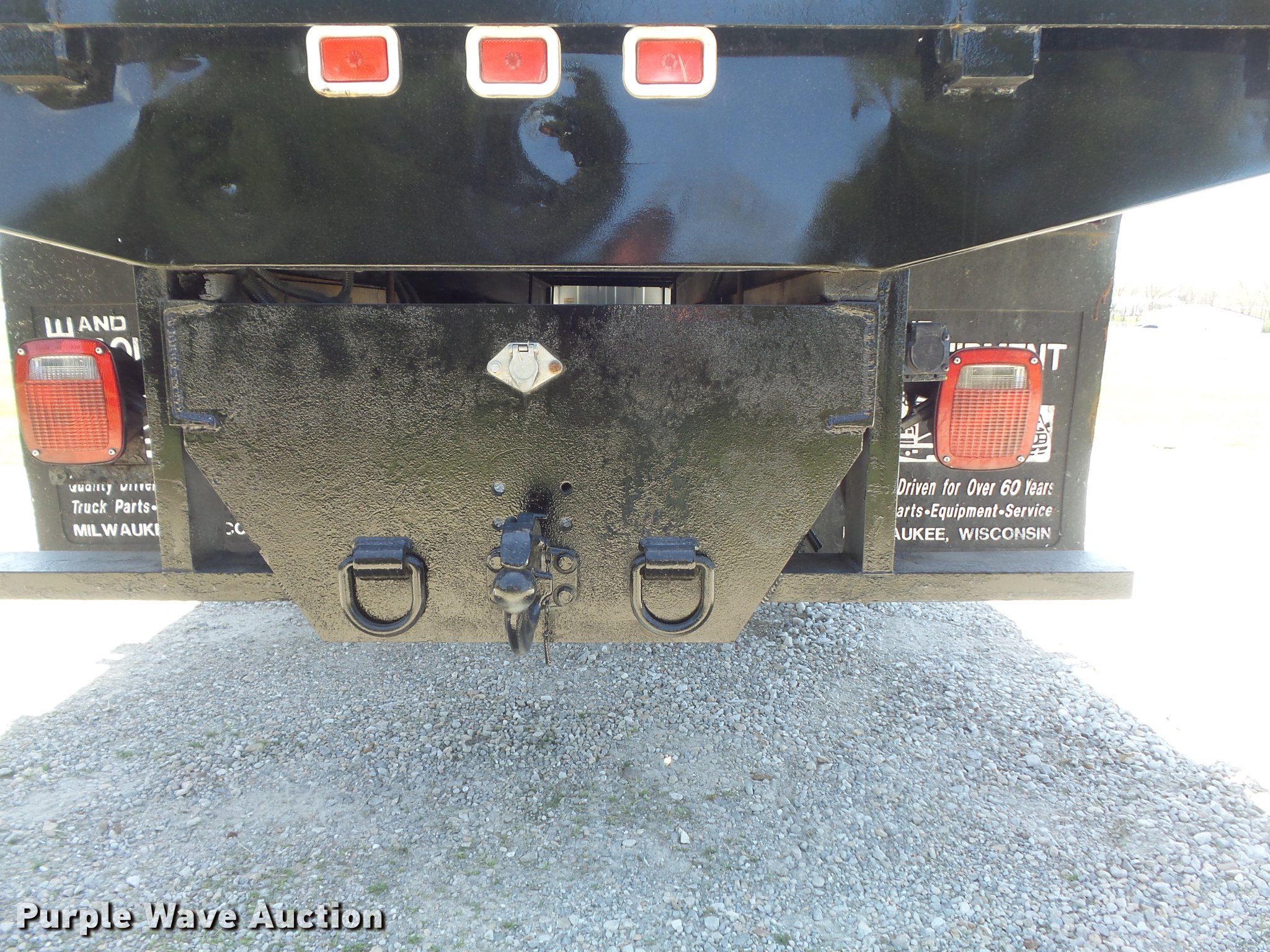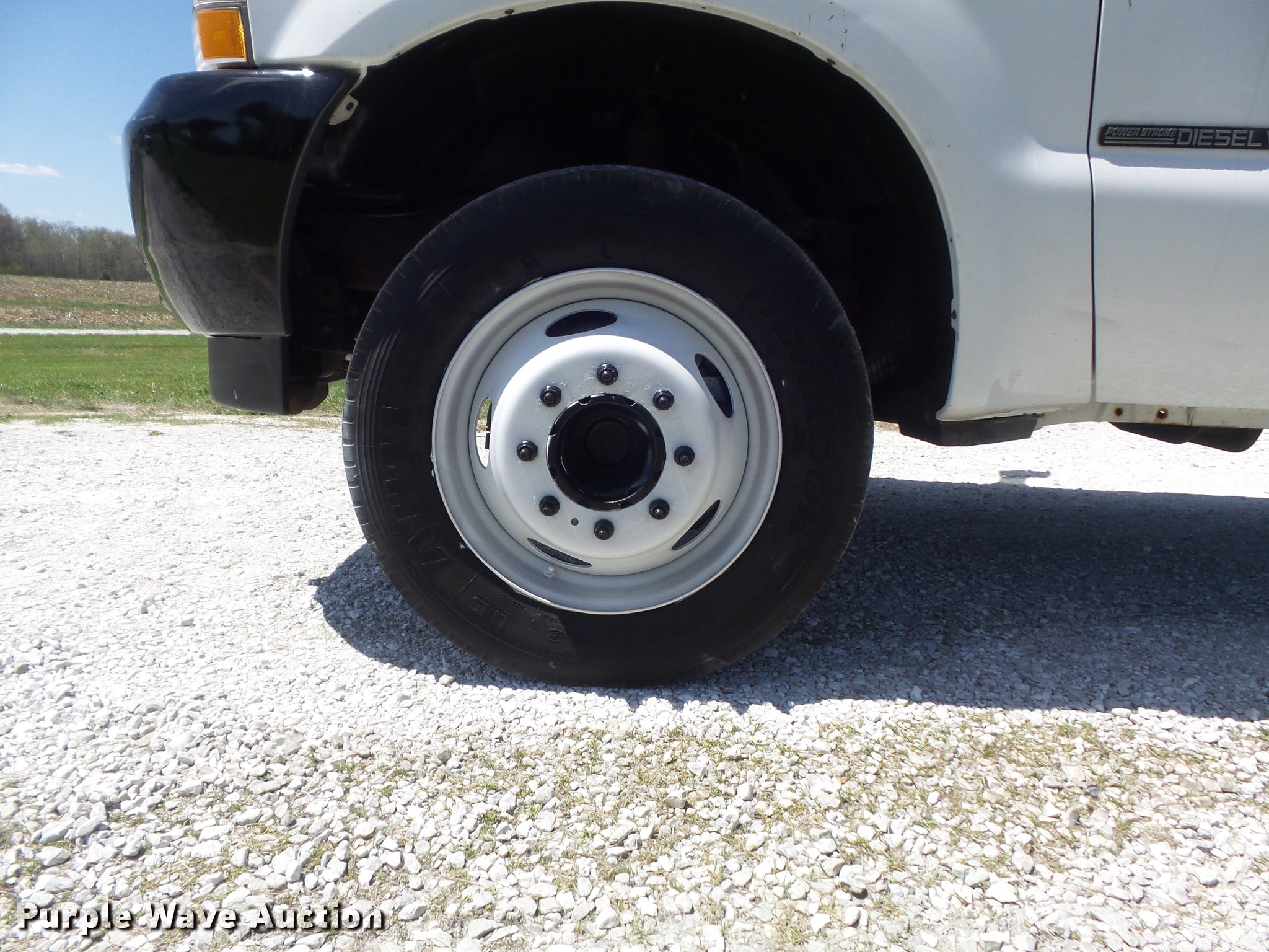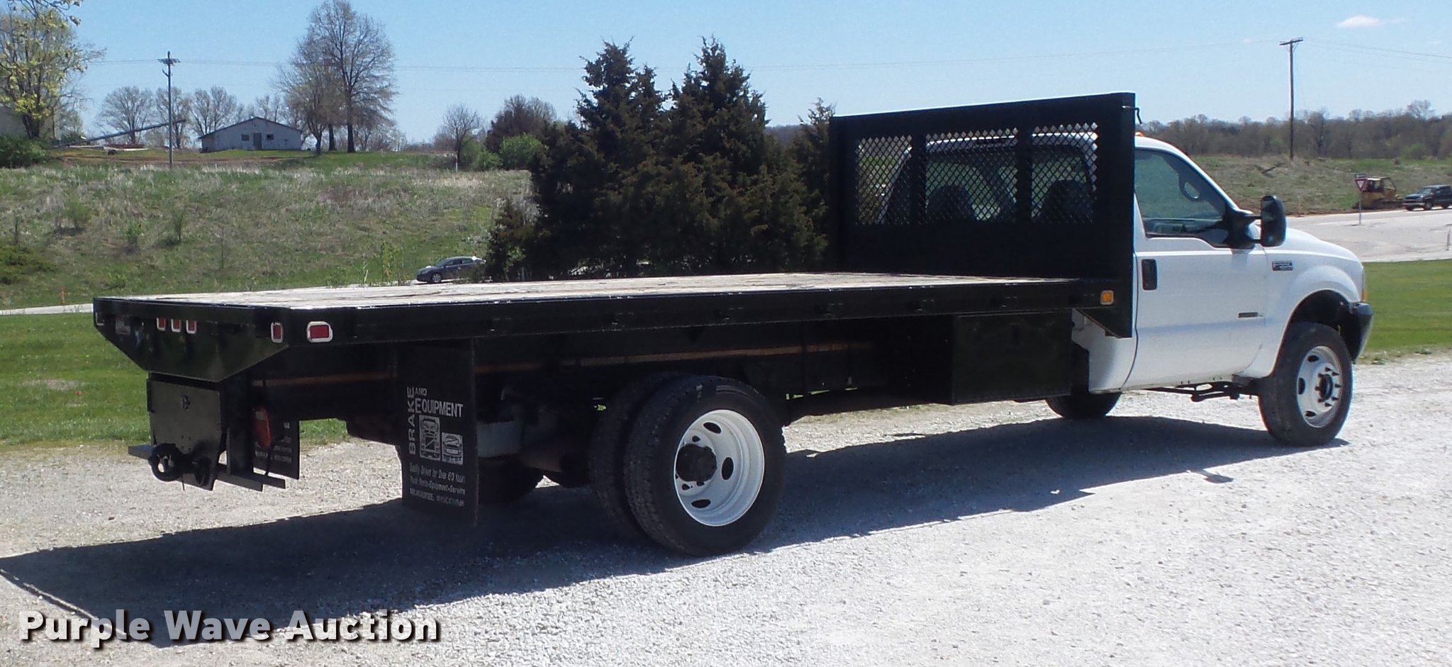 Purple Wave is selling a used Flat Bed Truck in Missouri. This item is a 2002 Ford F550 Super Duty XL flatbed truck with the following: 142,341 miles on odometer, 7.3L V8 OHV 16V turbo diesel engine, Five speed manual transmission, AC and heat, AM/FM, Vinyl interior, Brake controller, Knapheide PHHJ-163A flatbed, 16'3"L x 96"W, Wood floor, Stake pockets, Rub rail, Toolbox, Pintle/ball hitch, Trailer wiring, 225/70R19.5 tires, Toolbox door will not open