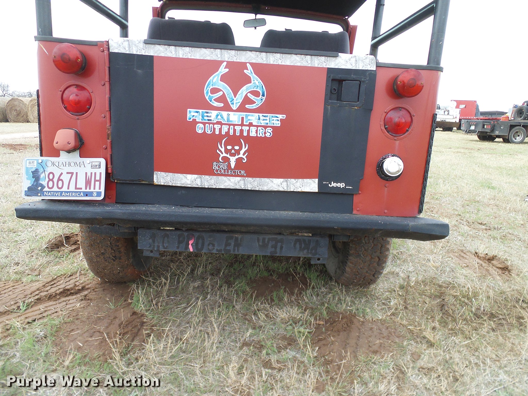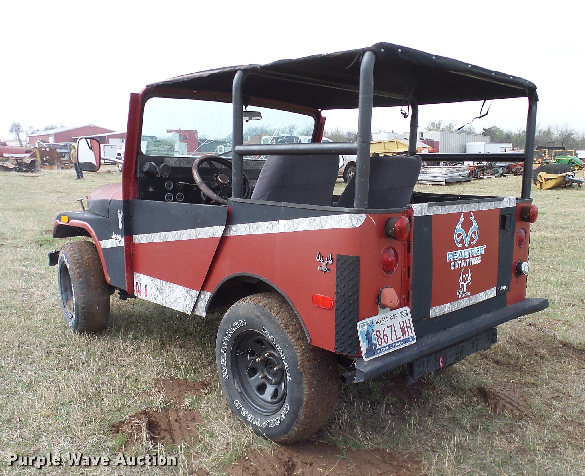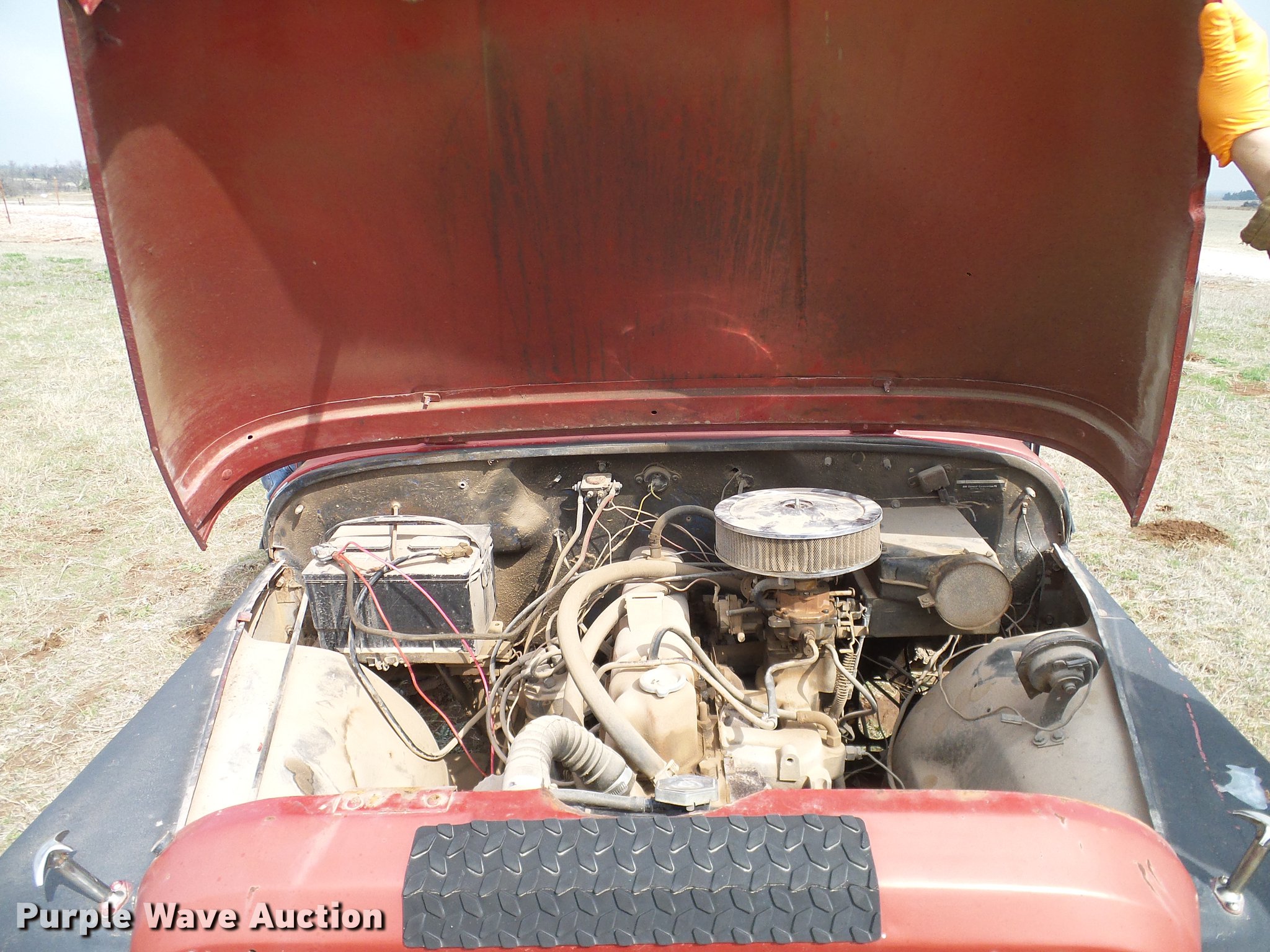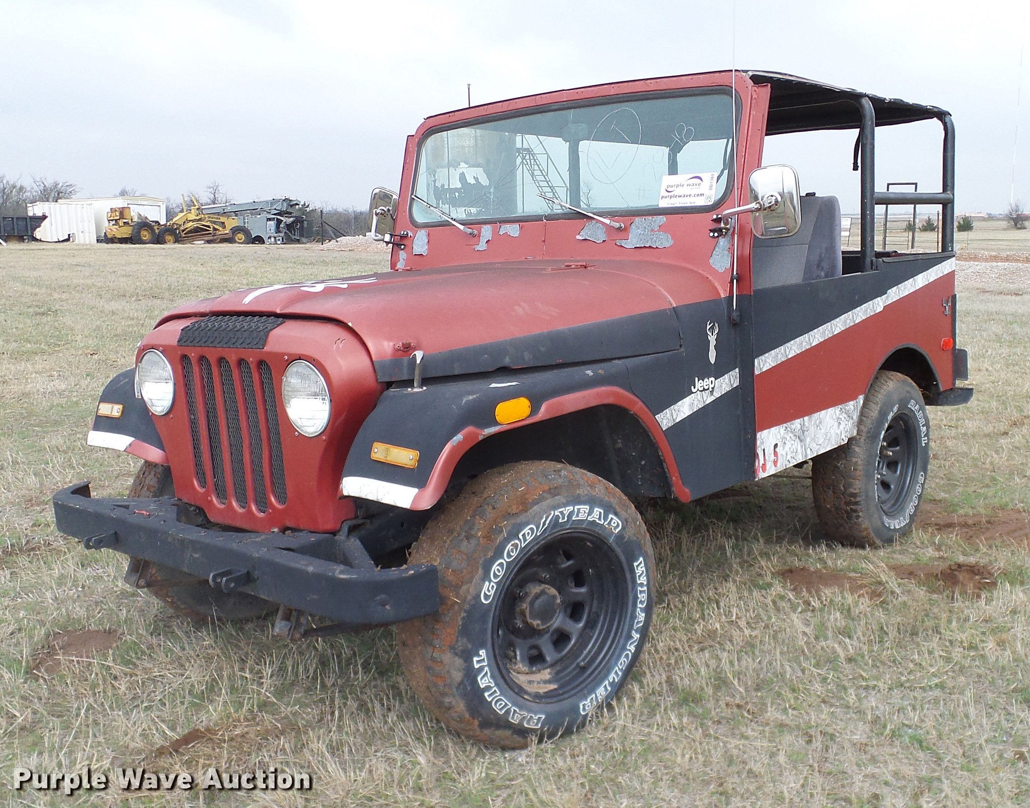 Purple Wave is selling a used Passenger Vehicle in Oklahoma. This item is a 1975 Jeep DJ5 SUV with the following: 94,182 miles on odometer, 4.0L six cylinder gas engine, Automatic transmission, Cloth interior, Roll bar, Canvas top, Goodyear 235/75R15 tires, Transmission leaks oil, Heater core needs to be replaced, Cracked windshield, No power steering