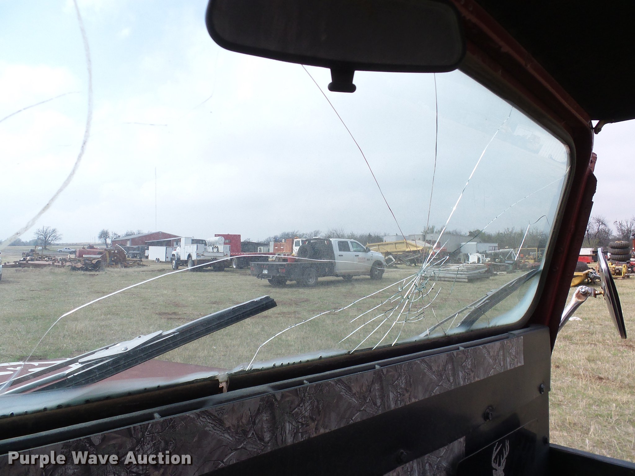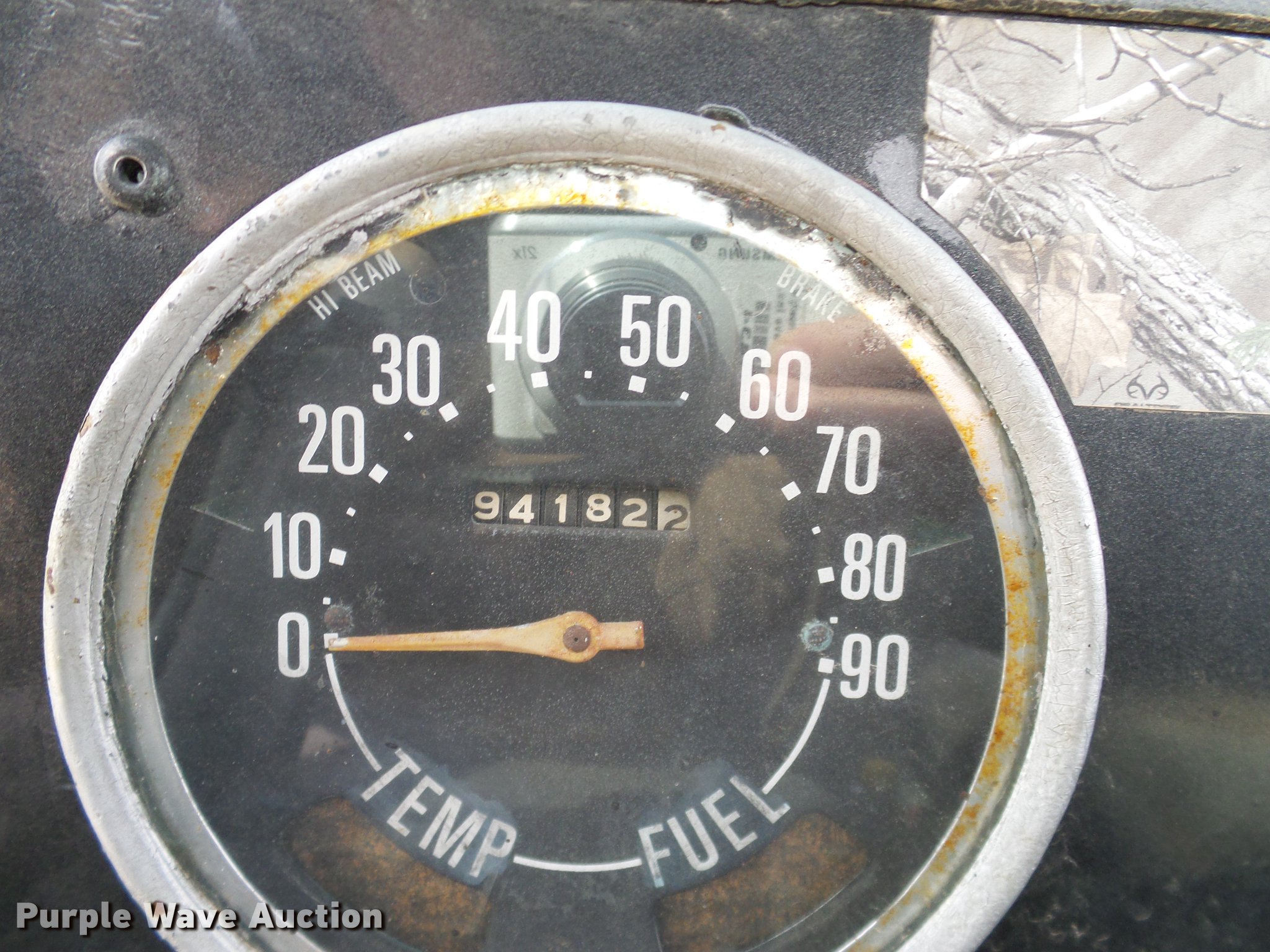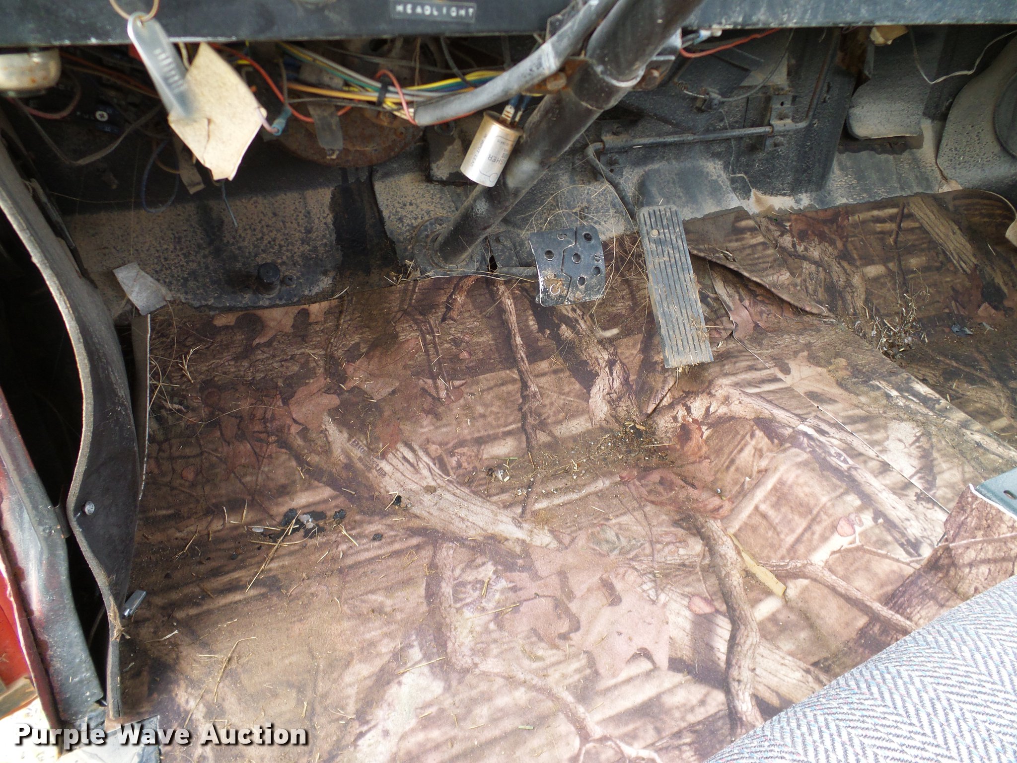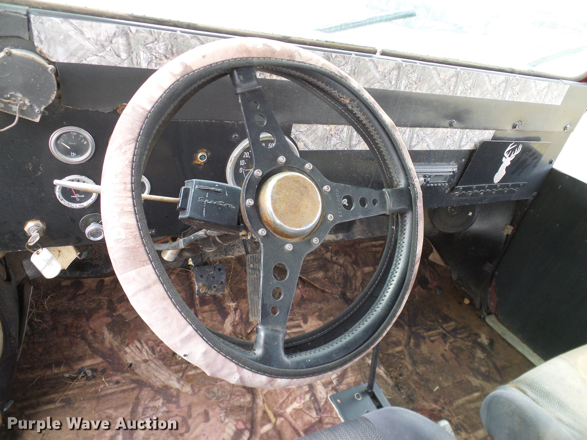 Purple Wave is selling a used Passenger Vehicle in Oklahoma. This item is a 1975 Jeep DJ5 SUV with the following: 94,182 miles on odometer, 4.0L six cylinder gas engine, Automatic transmission, Cloth interior, Roll bar, Canvas top, Goodyear 235/75R15 tires, Transmission leaks oil, Heater core needs to be replaced, Cracked windshield, No power steering