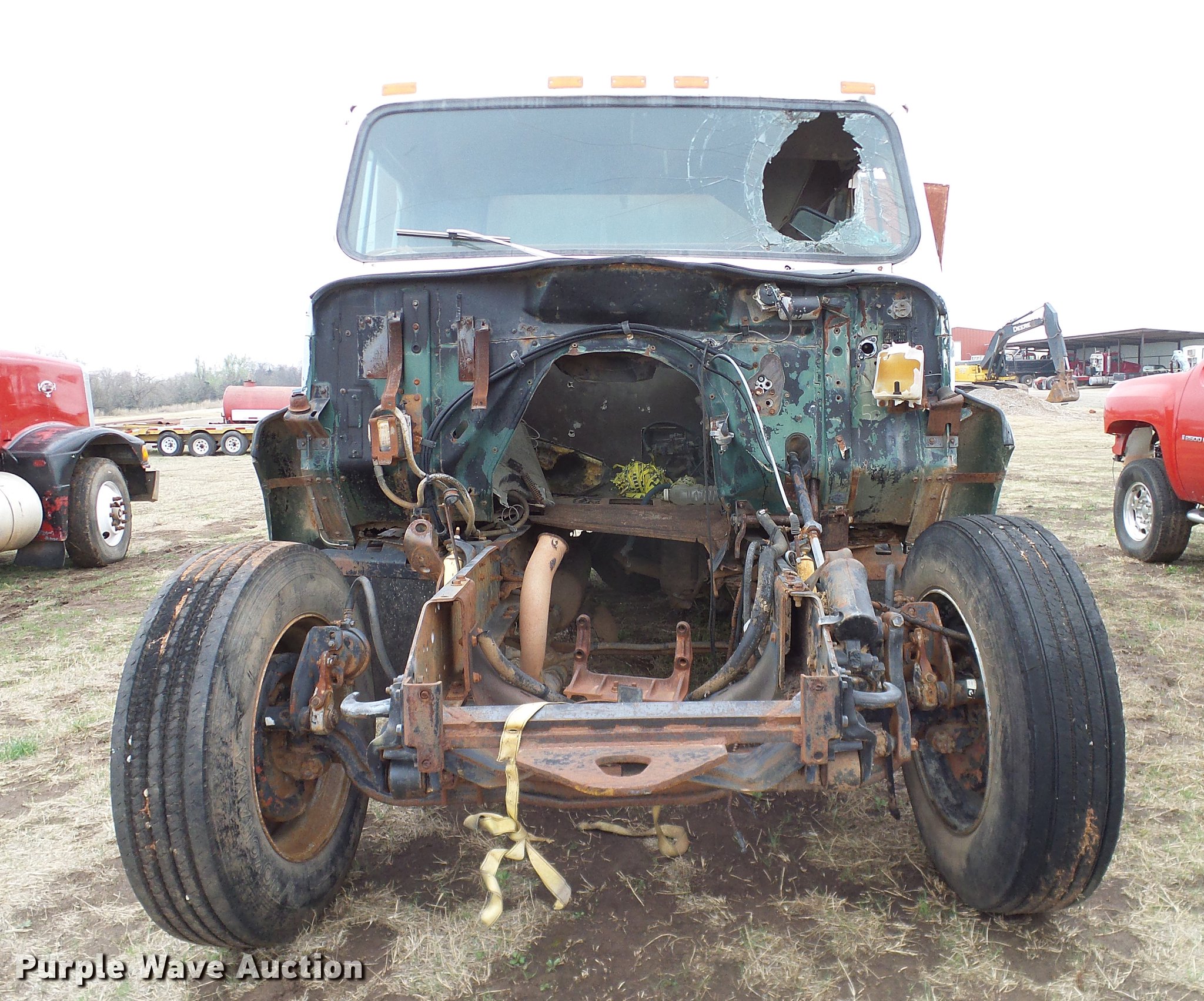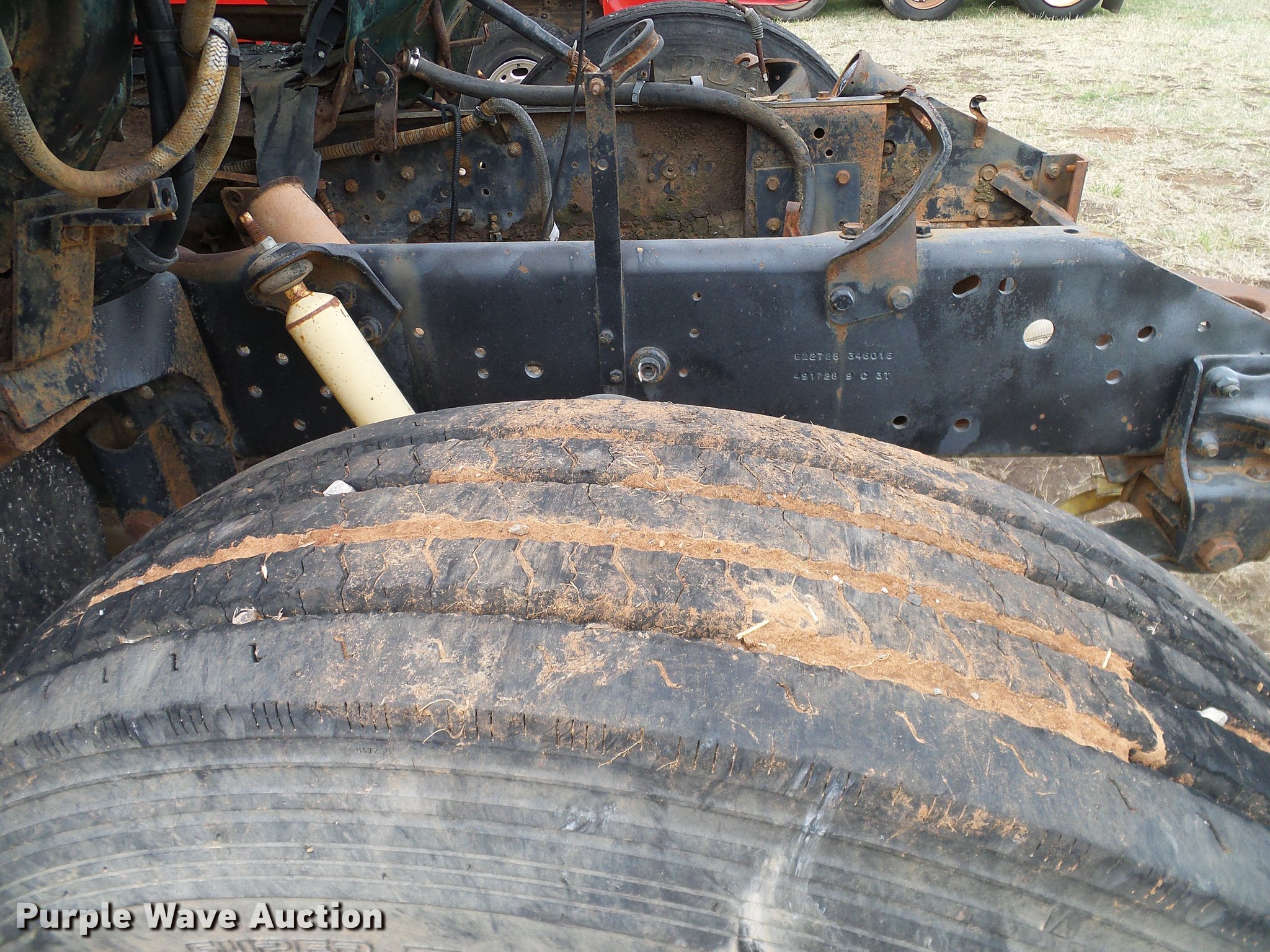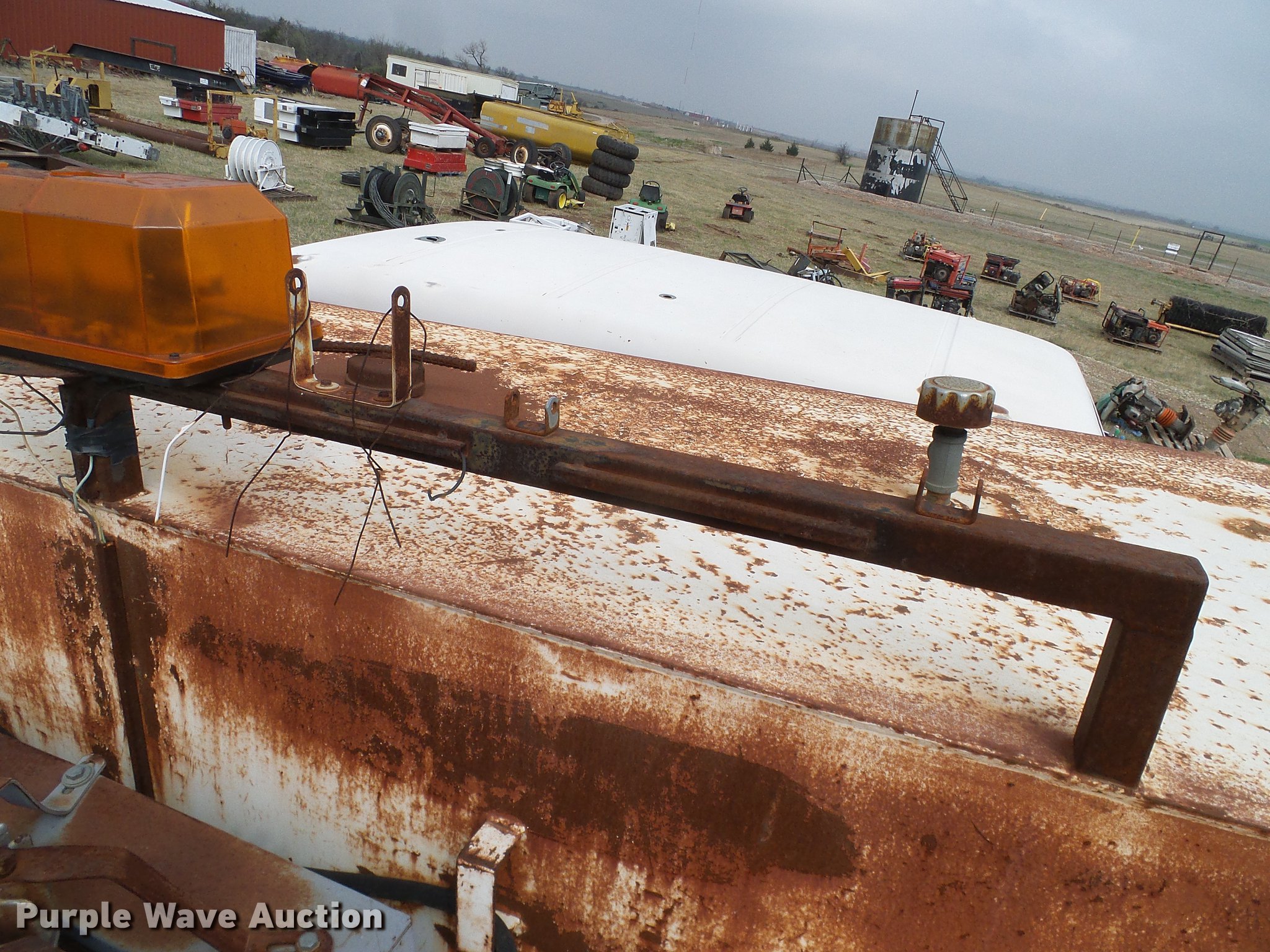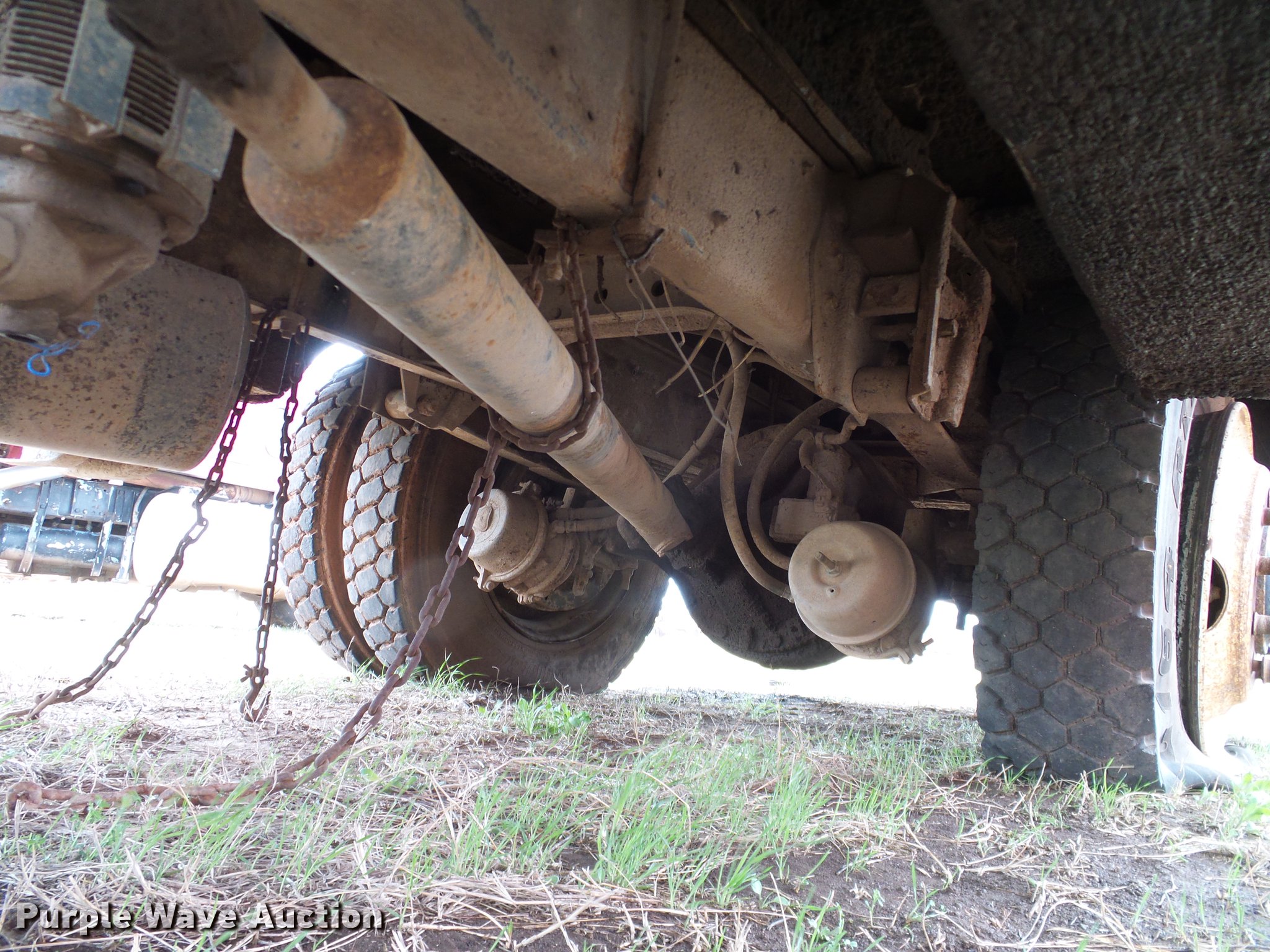 Purple Wave is selling a used Service Truck in Oklahoma. This item is a 1986 International 1955 service truck with the following: Unknown miles on odometer, No engine, No transmission, Single axle, Front tow hooks, Single exhaust stack, 12'L service bed, Industrial Air air compressor, Non-operational, Oil/lube system, Hose reels, Nozzles, Hydraulic fluid reservoir, Motor oil reservoir, Used oil reservoir, Dual fuel tanks, Spring suspension, Air brakes, 139" wheelbase, 285/75R24.5 front tires, 11R24.5 rear tires, GVWR 26,500 lbs, Cab glass missing, Interior components missing, Rear tire and wheel missing, Non-operational unit