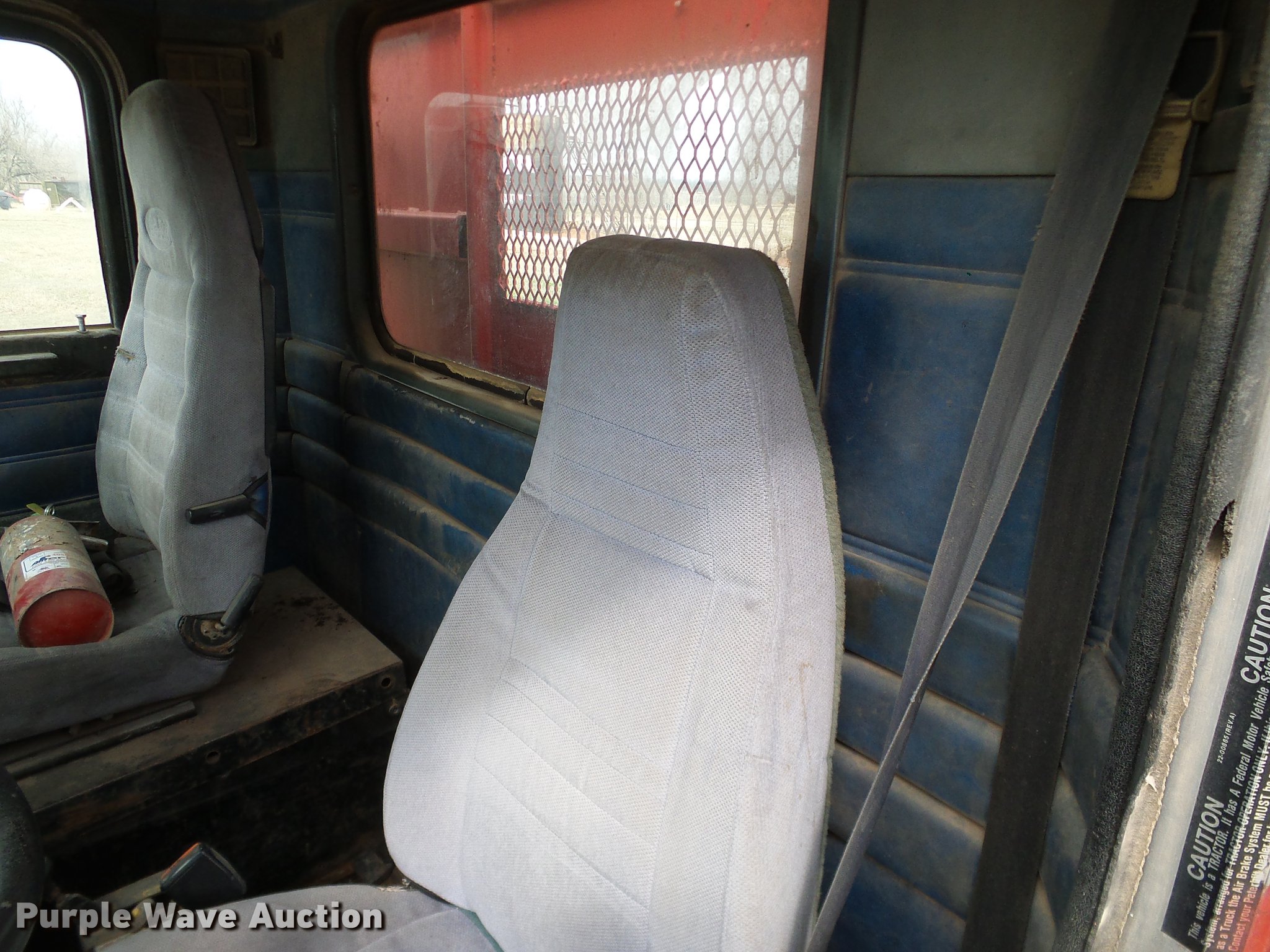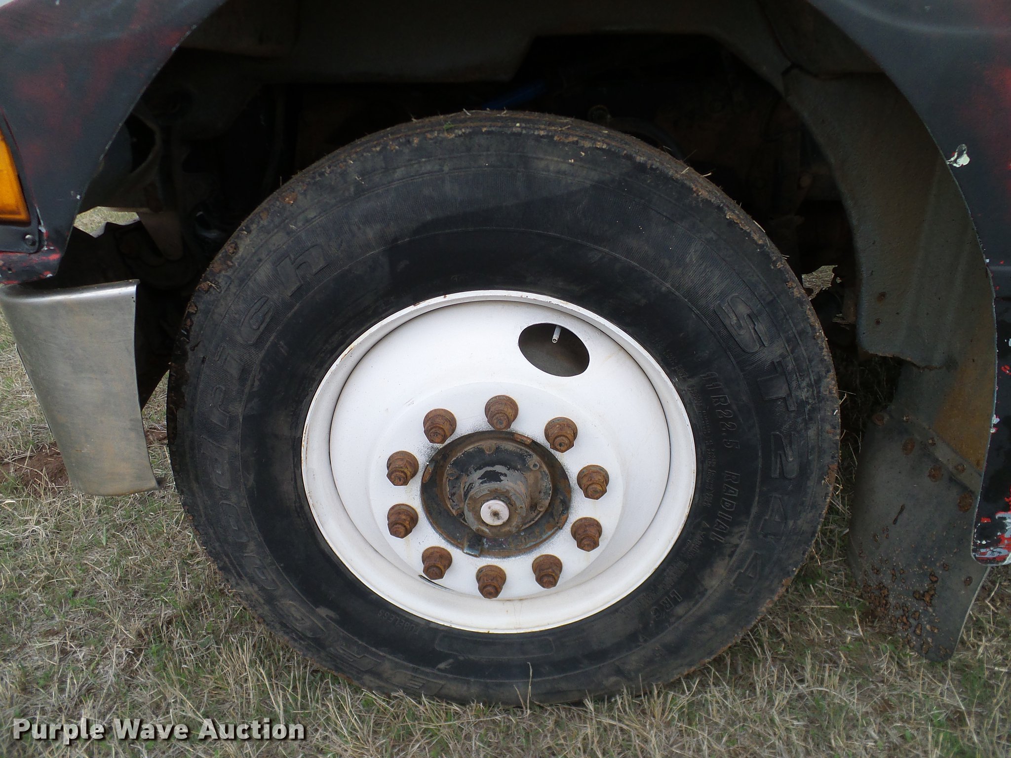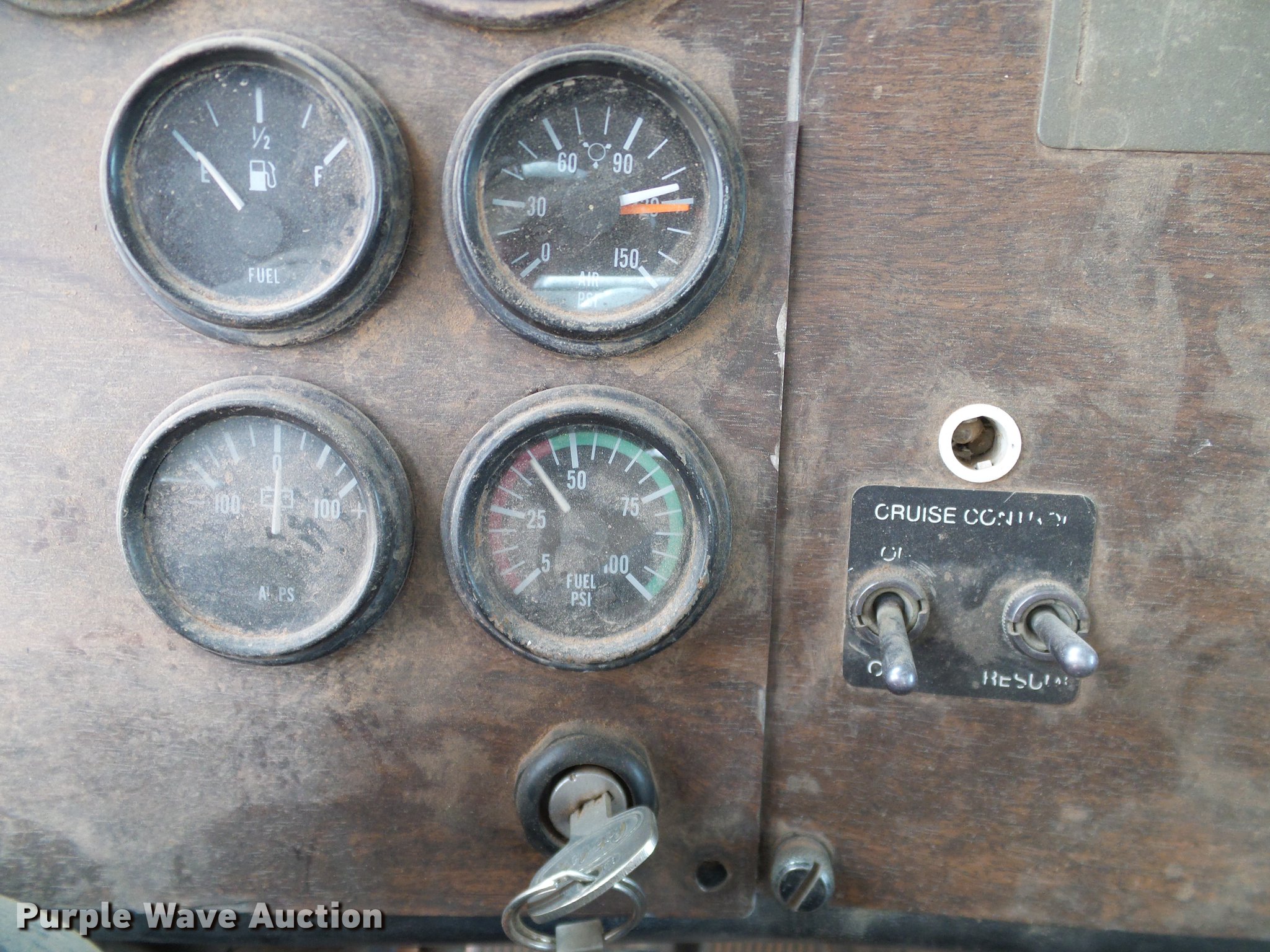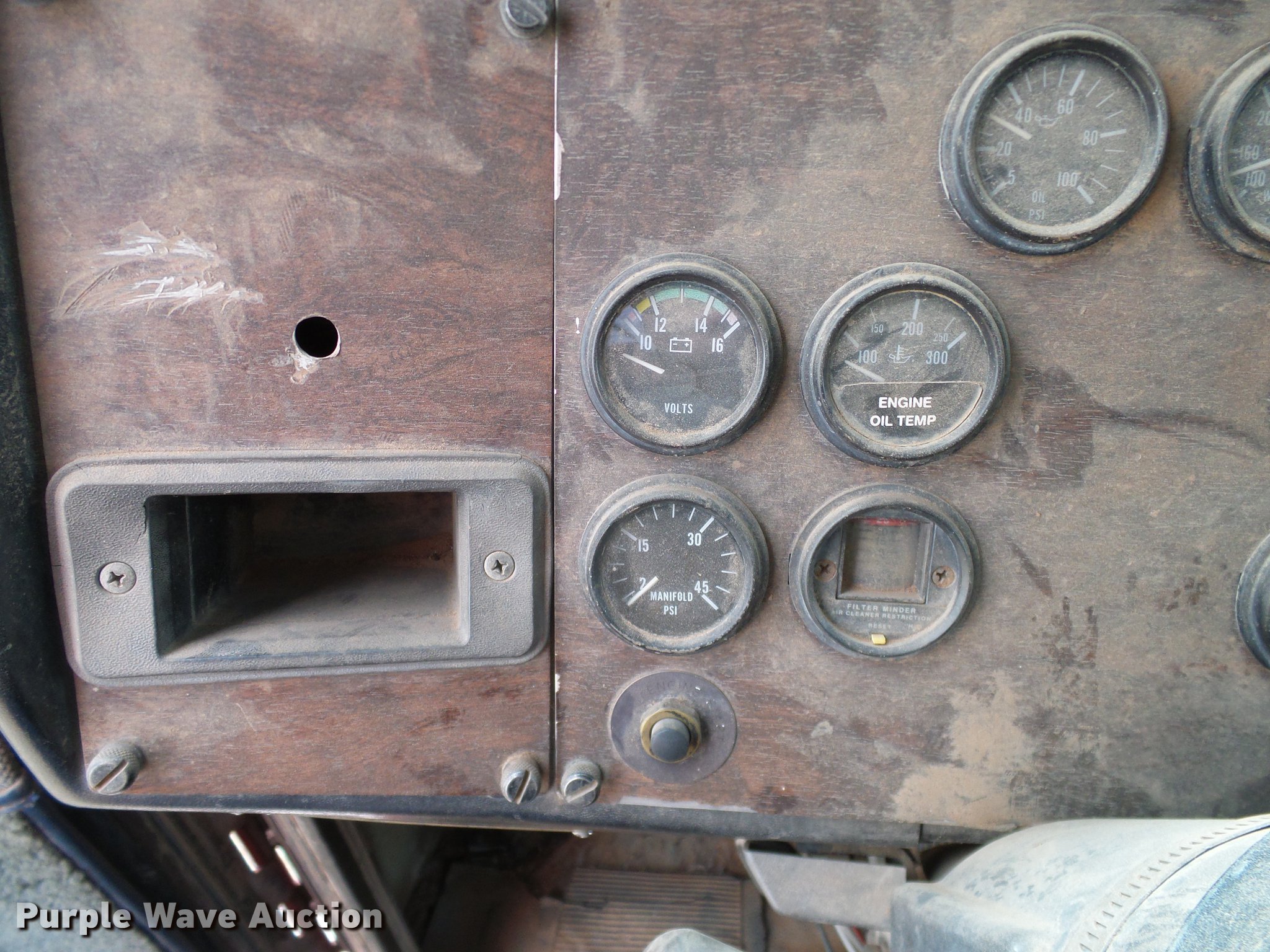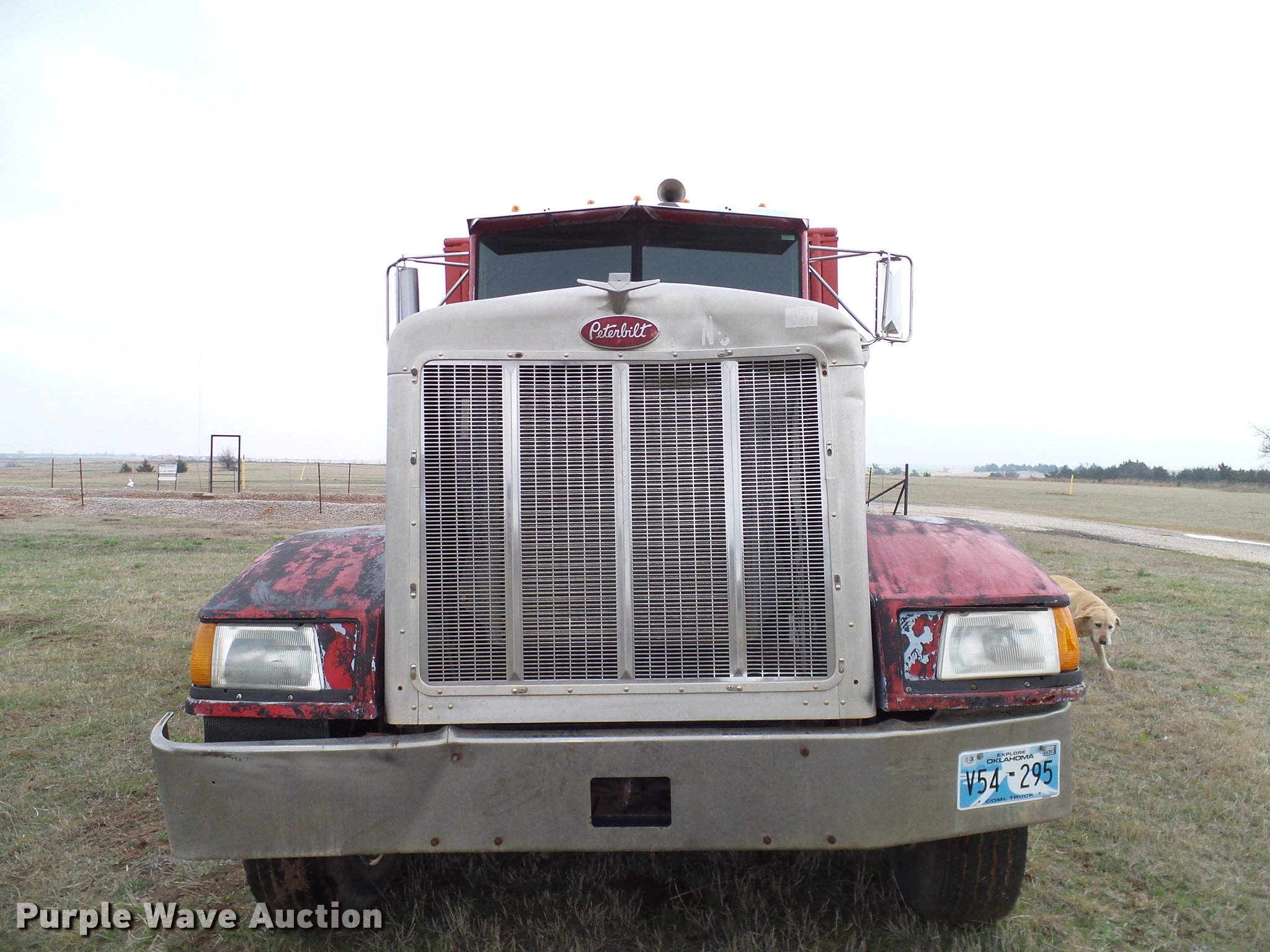 Purple Wave is selling a used Flat Bed Truck in Oklahoma. This item is a 1991 Peterbilt 377 flatbed truck with the following: 262,217 miles on odometer, Caterpillar 3176 10.3L L6 turbo diesel engine, Rockwell nine speed manual transmission, Single axle, Inter-axle differential lock, AC and heat, Cruise, AM/FM/CD, Power and heated mirrors, Suspension seat, Front tow hooks, Single exhaust stack, PTO, 20'L x 96"W flatbed, Steel floor, Stake pockets, Dual fuel tanks, Air suspension, Air brakes, 11R22.5 front tires, 295/75R22.5 rear tires, GVWR 50,000 lbs, Cracked windshield