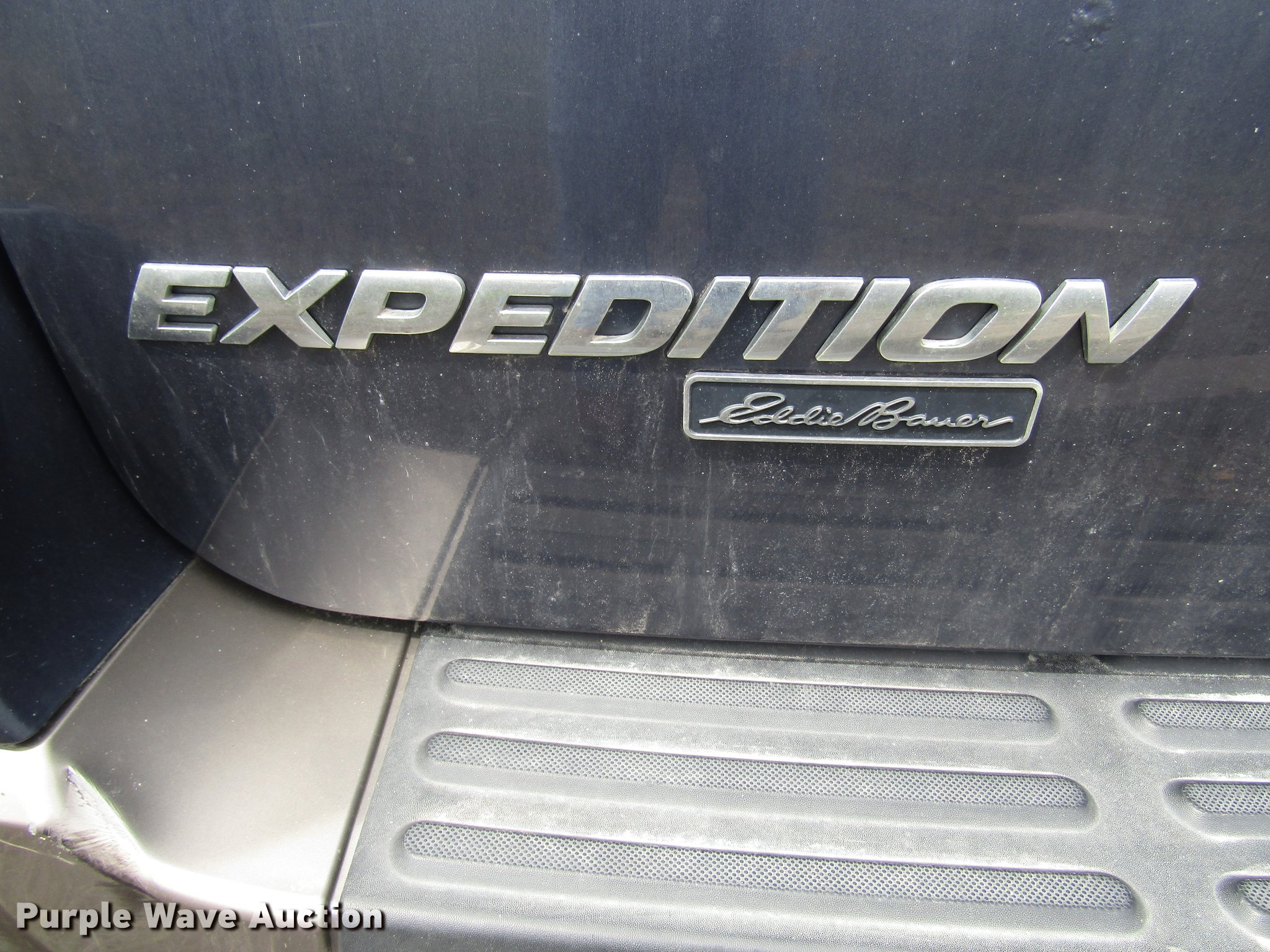 Purple Wave is selling a used Passenger Vehicle in Missouri. This item is a 2003 Ford Expedition Eddie Bauer SUV with the following: 210,033 miles on odometer, 5.4L V8 SOHC 16V gas engine, Automatic transmission, Four wheel drive, AC and heat, Tilt, Cruise, AM/FM/CD, Power windows, locks, and seat, Leather interior, Fog lights, Front tow hooks, Running boards, Receiver hitch, P265/70R17 tires