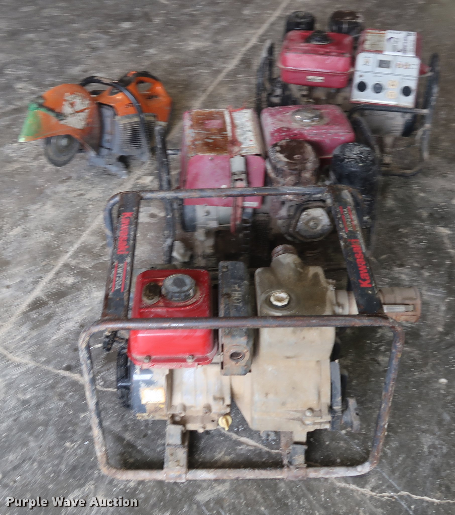 Purple Wave is selling a used Tools in Missouri. This item is a Tools with the following: (2) generators, Gas engine, 120/240V, Kawasaki water pump, 2" inlet/outlet, Stihl TS420 cut off saw